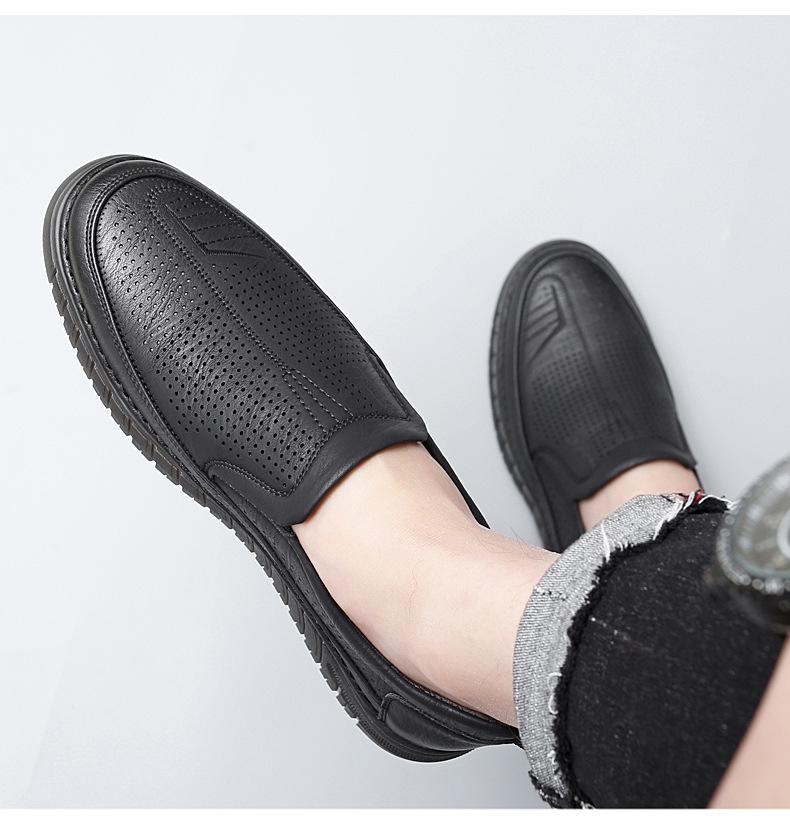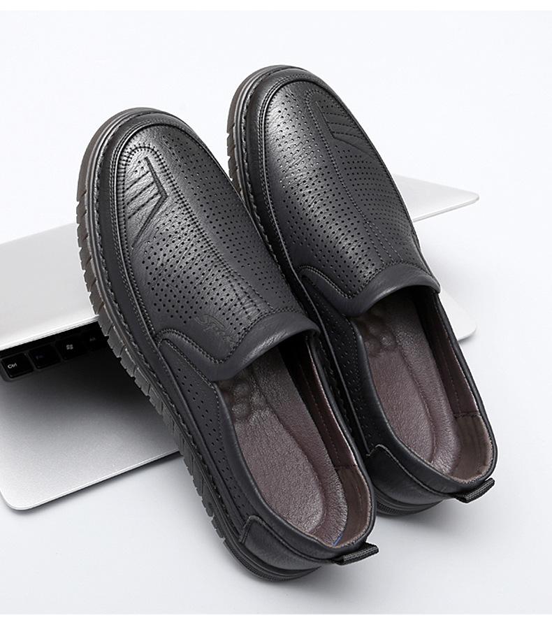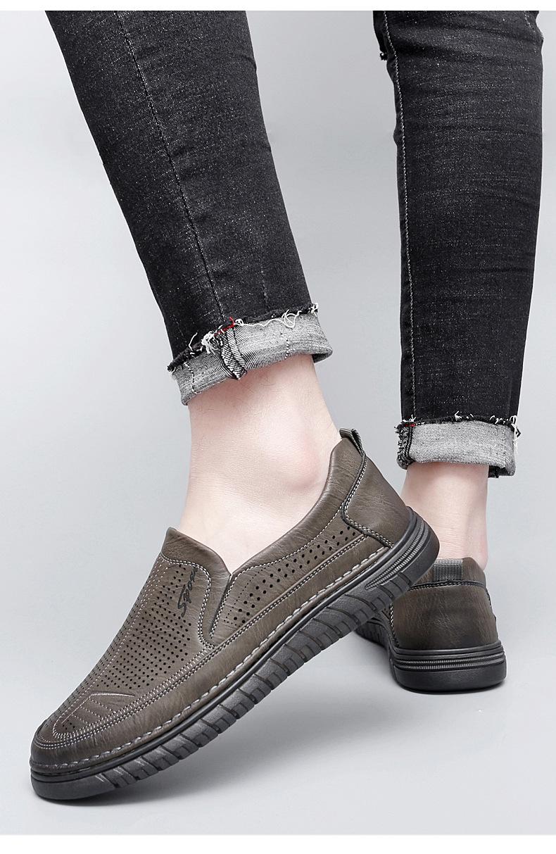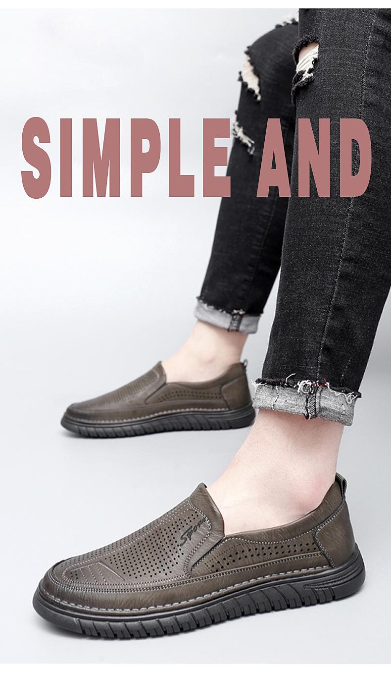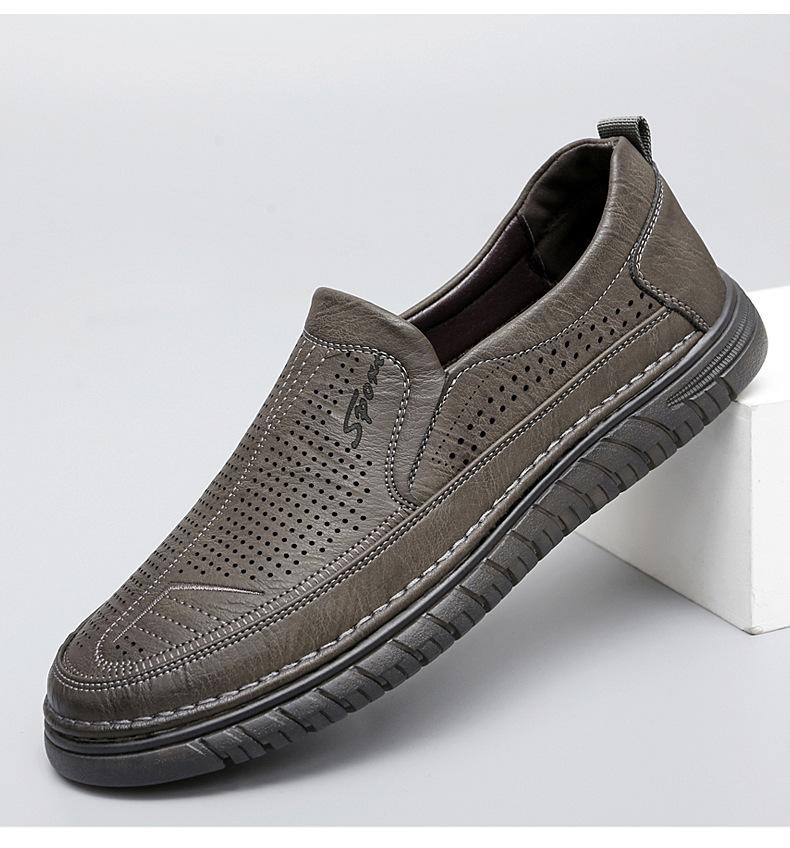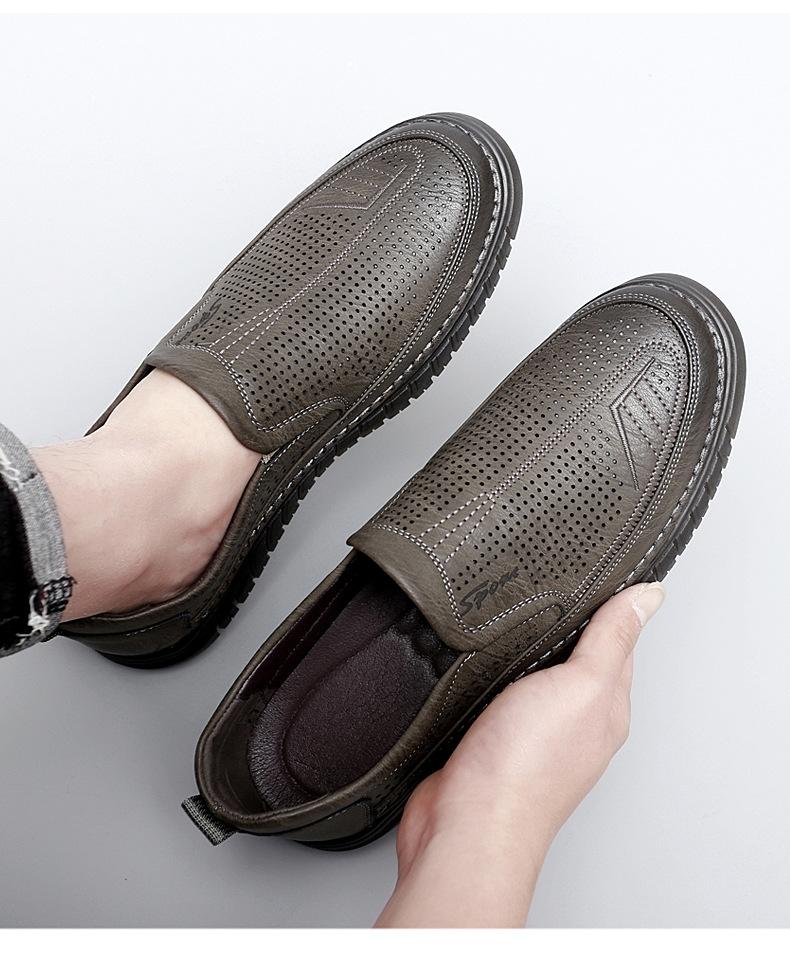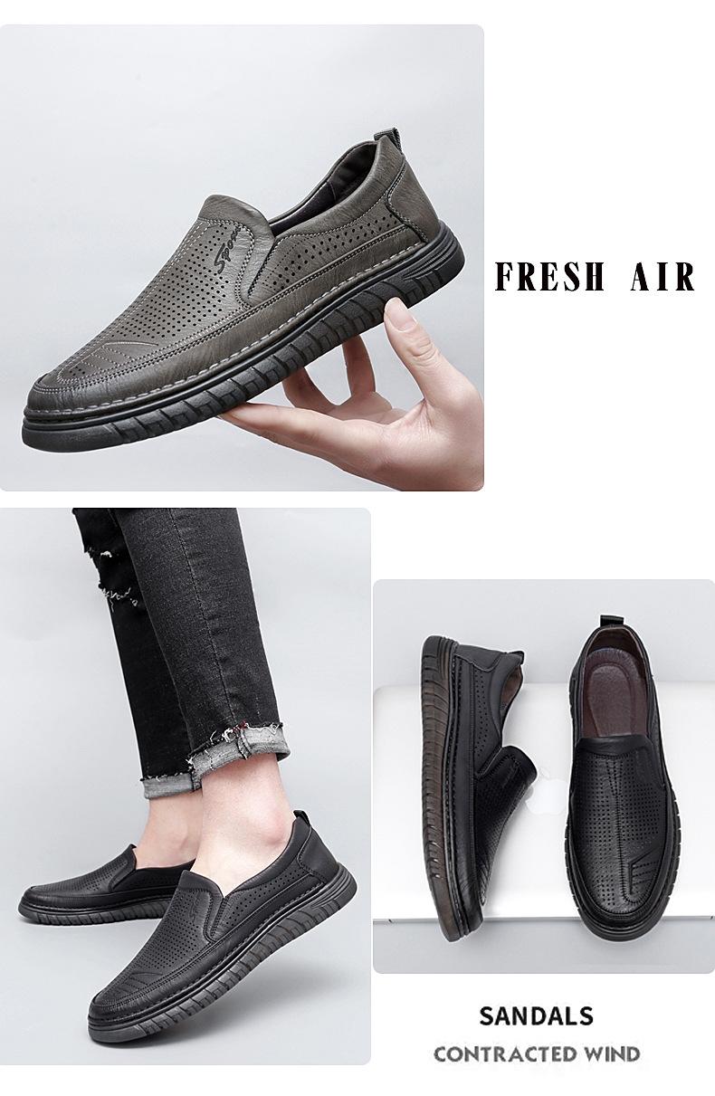 Sapatos de Couro Masculinos Populares de Verão, Sapatos de Pai Casuais de Negócios, Sapatos Masculinos Perfurados Respiráveis, Sandálias de Couro Macio com Sola de Tendão