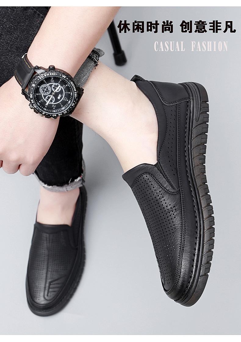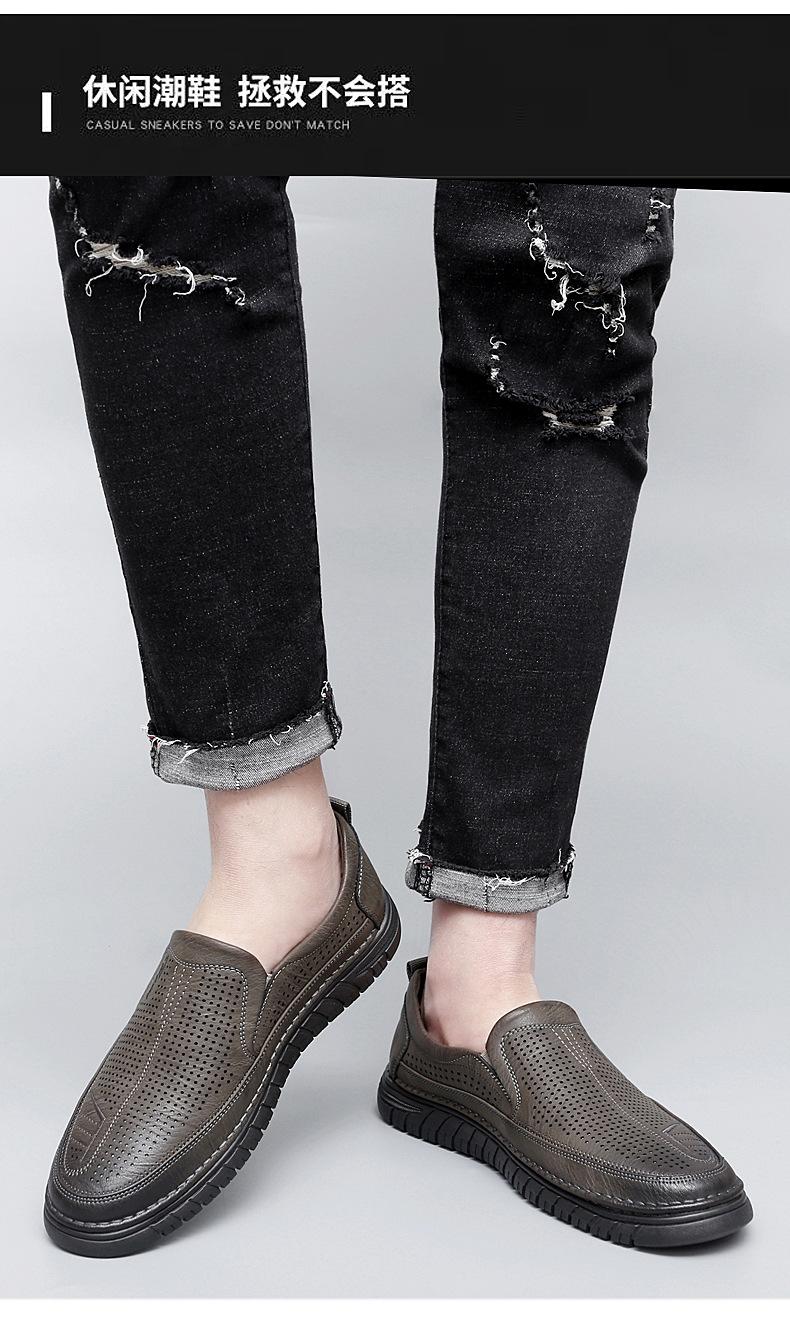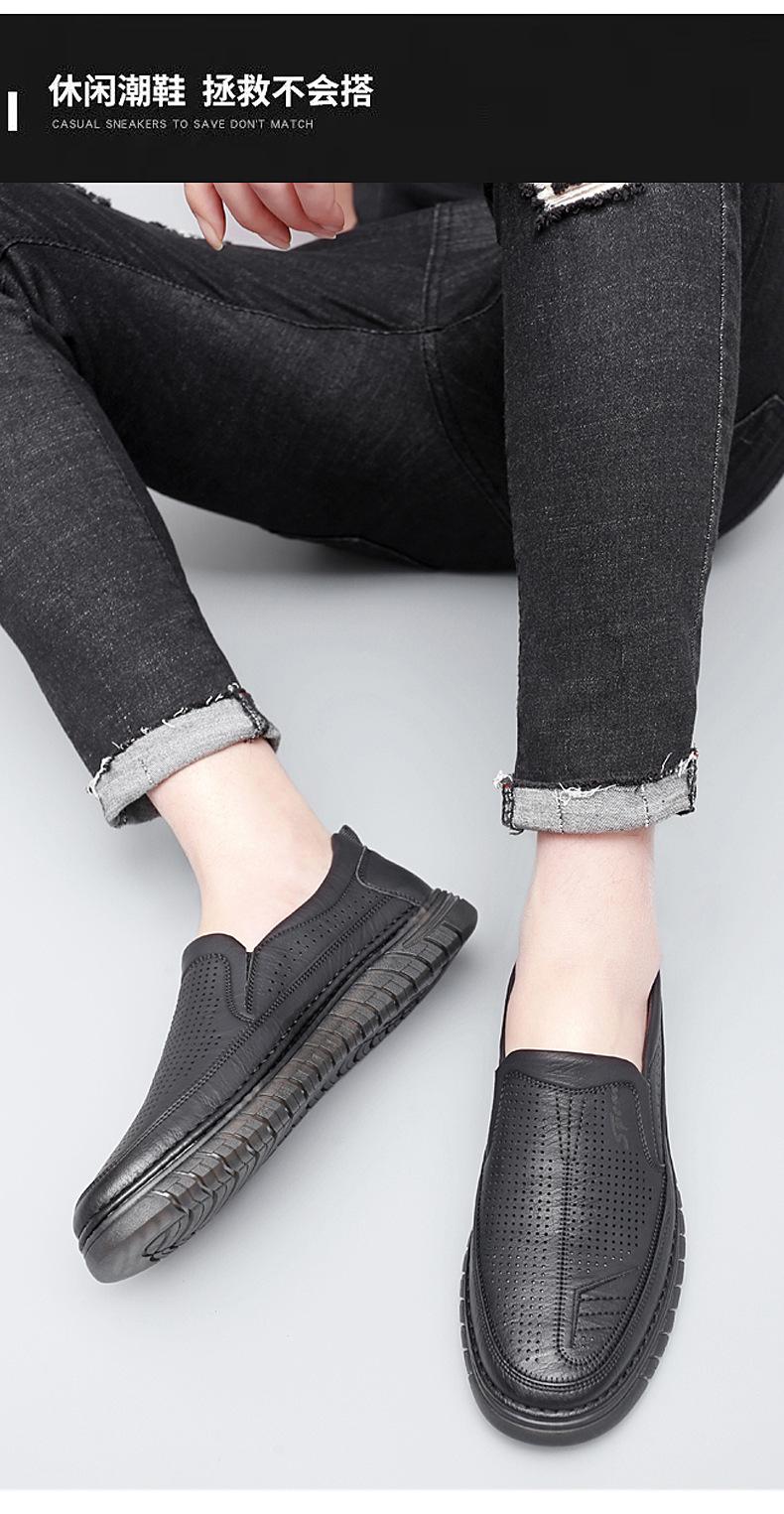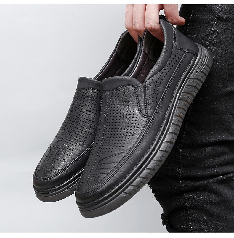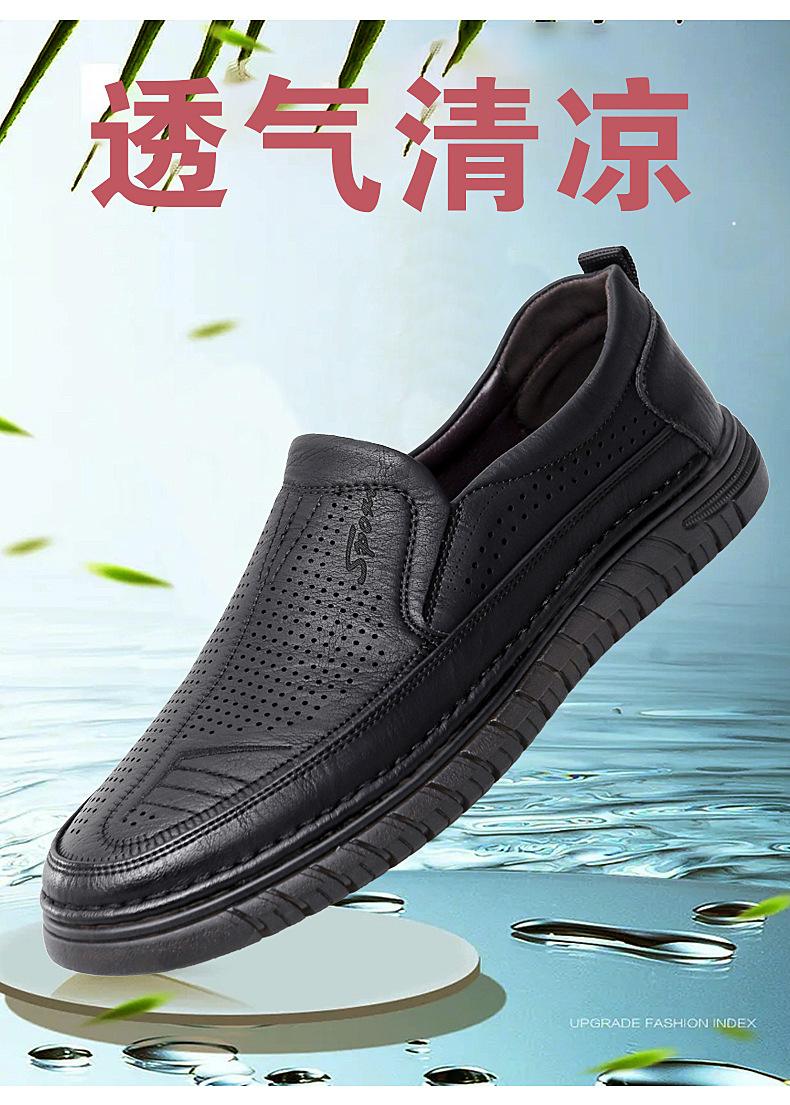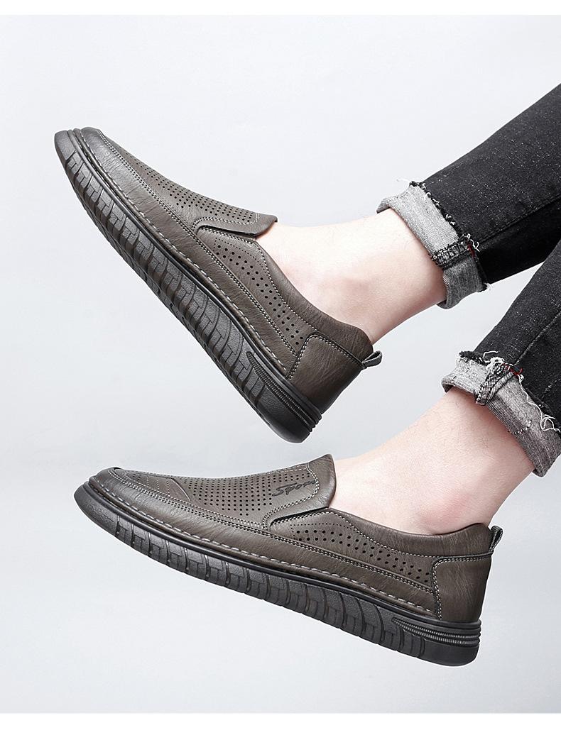 Sapatos de Couro Masculinos Populares de Verão, Sapatos de Pai Casuais de Negócios, Sapatos Masculinos Perfurados Respiráveis, Sandálias de Couro Macio com Sola de Tendão