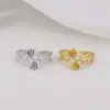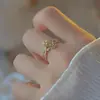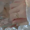 Anel Flor de Diamante para Mulheres Novo Estilo Transfronteiriço Estilo Francês Personalizado Camada Dupla Ajustável Anel Gêmeo Rosa
