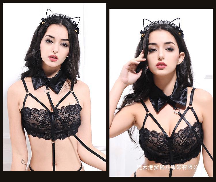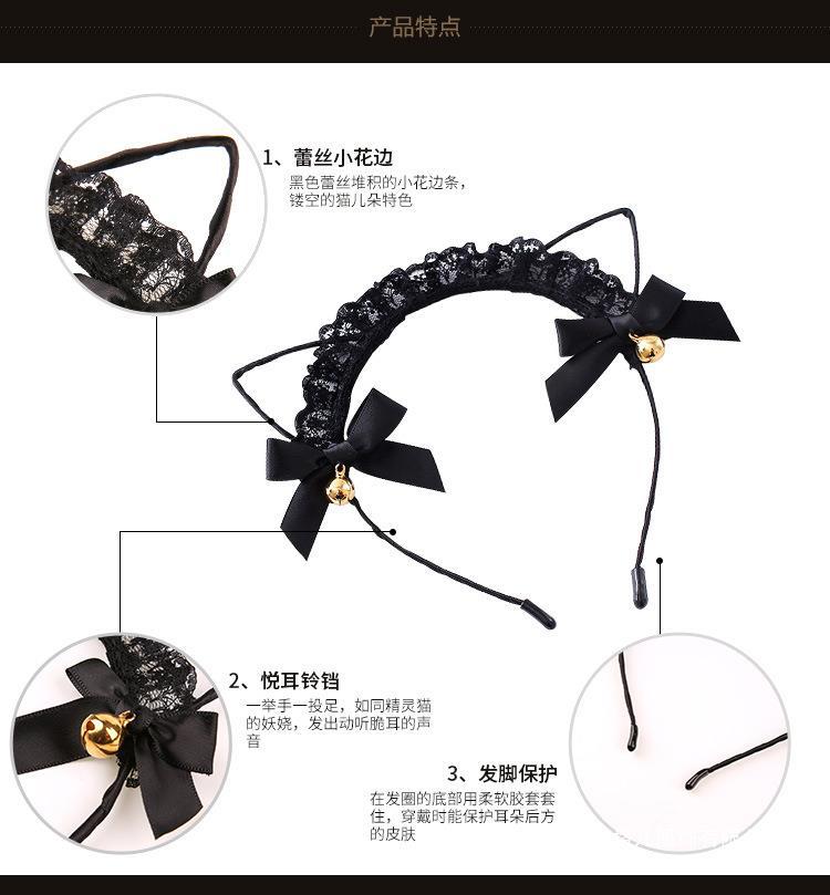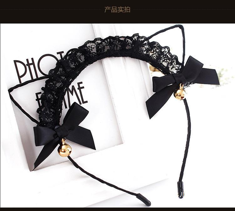 Acessório de Cabeça Sexy Estilo Europeu e Americano Renda Recortada Orelhas de Gato Tiara Joias de Sino 5081 Formato de Laço