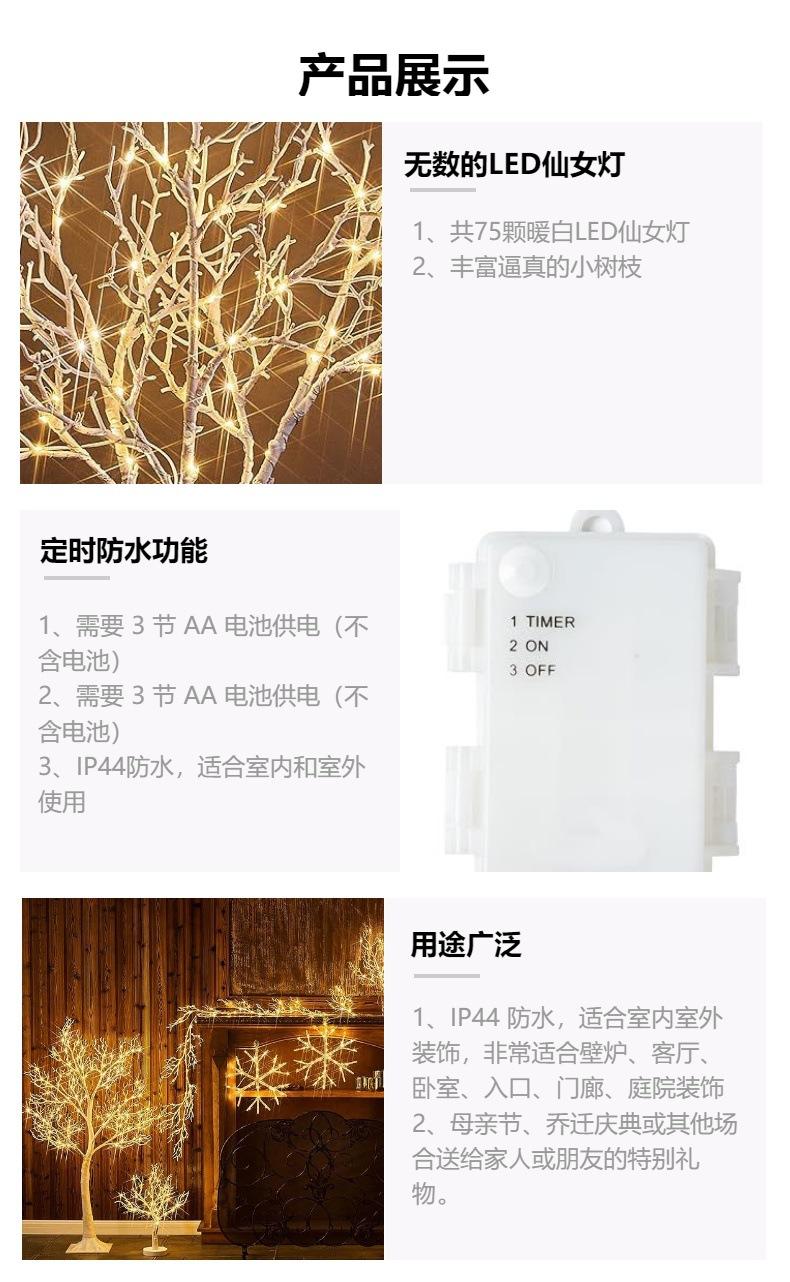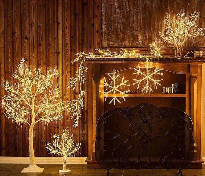 Cultive uma floresta de inverno com galhos iluminados, trazendo um brilho mágico para ambientes internos e externos. Os galhos são adornados com luzes de fada branco quente, ficando elegantes quando exibidos sozinhos ou decorados com enfeites. Nossos galhos brancos pré-iluminados, meticulosamente trabalhados com textura de casca vívida, cintilam com lembranças da alegria e maravilha do Natal, criando uma atmosfera aconchegante para sua celebração festiva.。