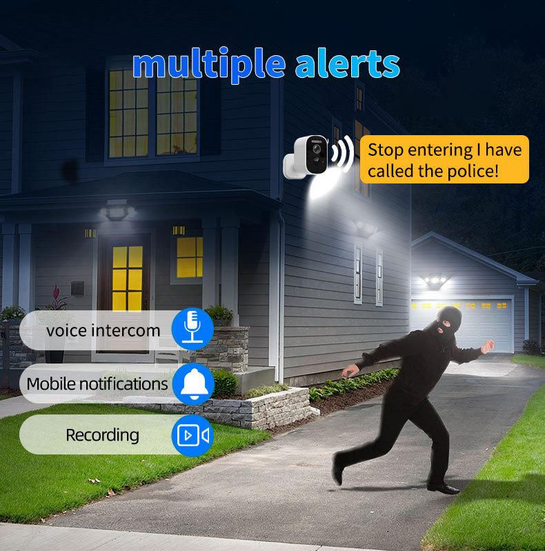 Câmera de Vigilância a Bateria Wifi Interna e Externa Monitor Sem Fio Alta Definição Visão Noturna Função Alarme Inteligente