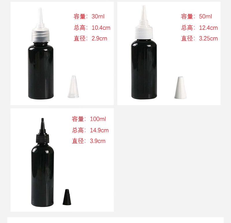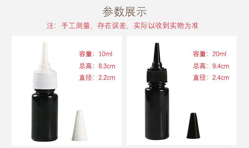 Frasco conta-gotas de plástico com bico pontiagudo à prova de luz, frasco espremedor, pequeno frasco vazio, frasco de cola de plástico macio, frasco de emulsão, frasco de pigmento