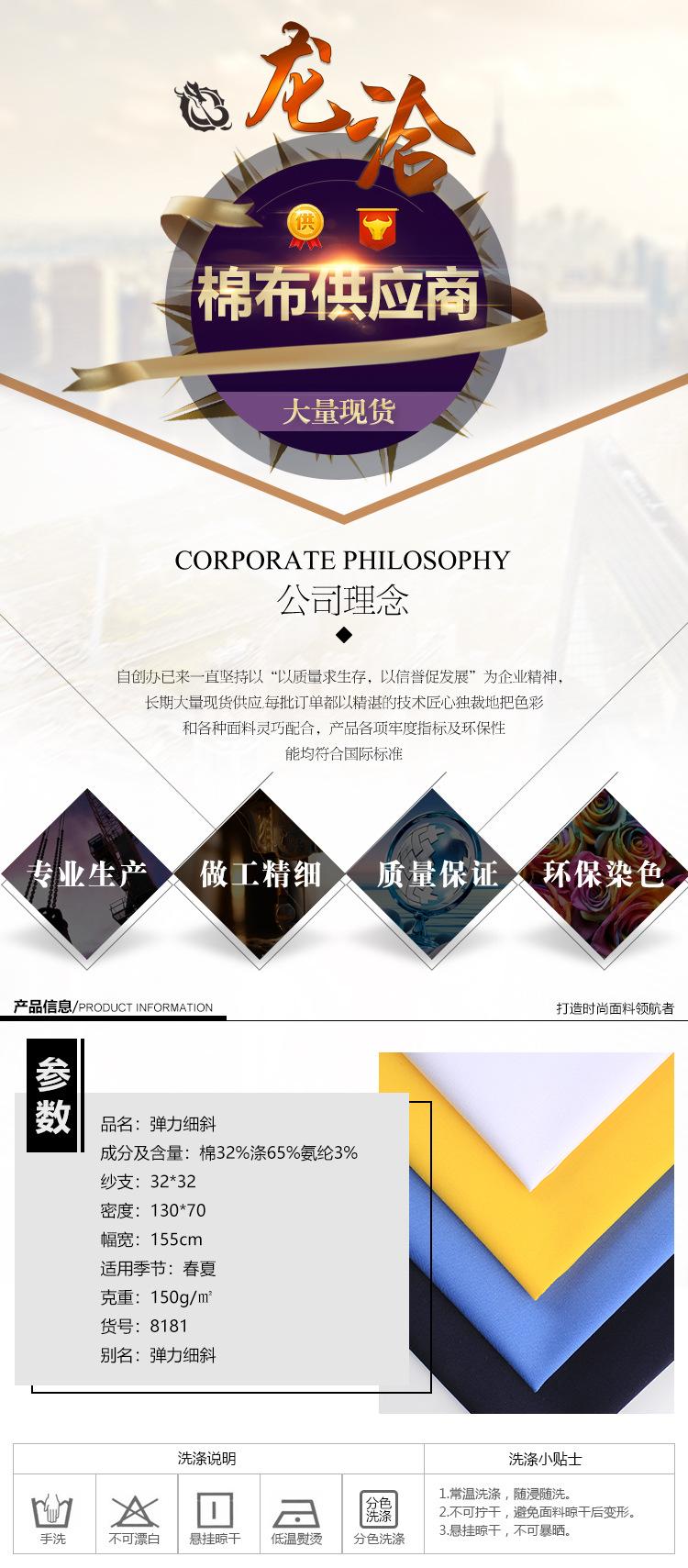 Tecido de Camisa Elástico de Poliéster-Algodão 32*32 Sarja Fina Elástico Misturado com Lycra Primavera e Verão Moda Masculina e Feminina Tecido para Calças