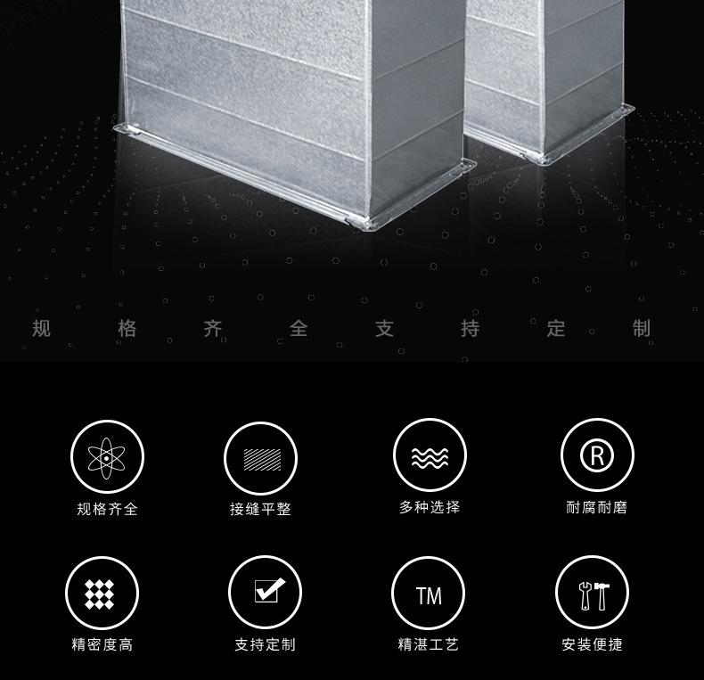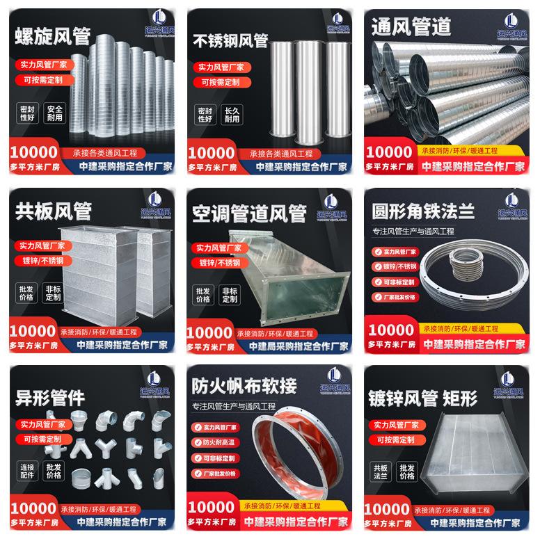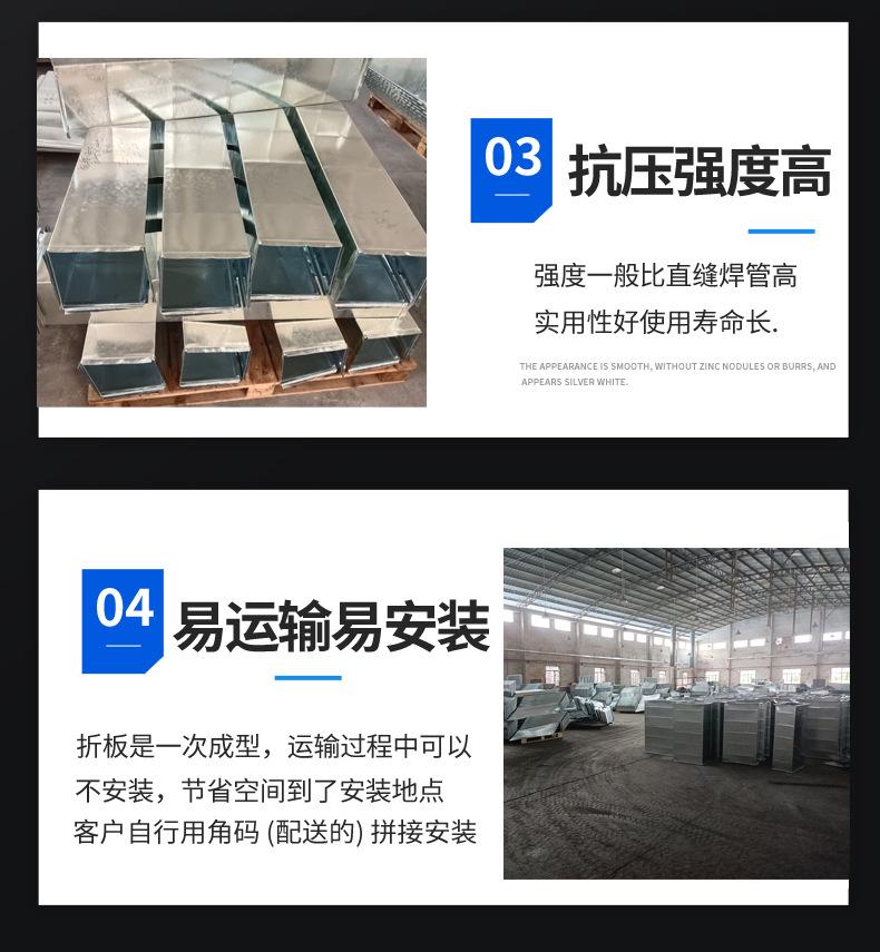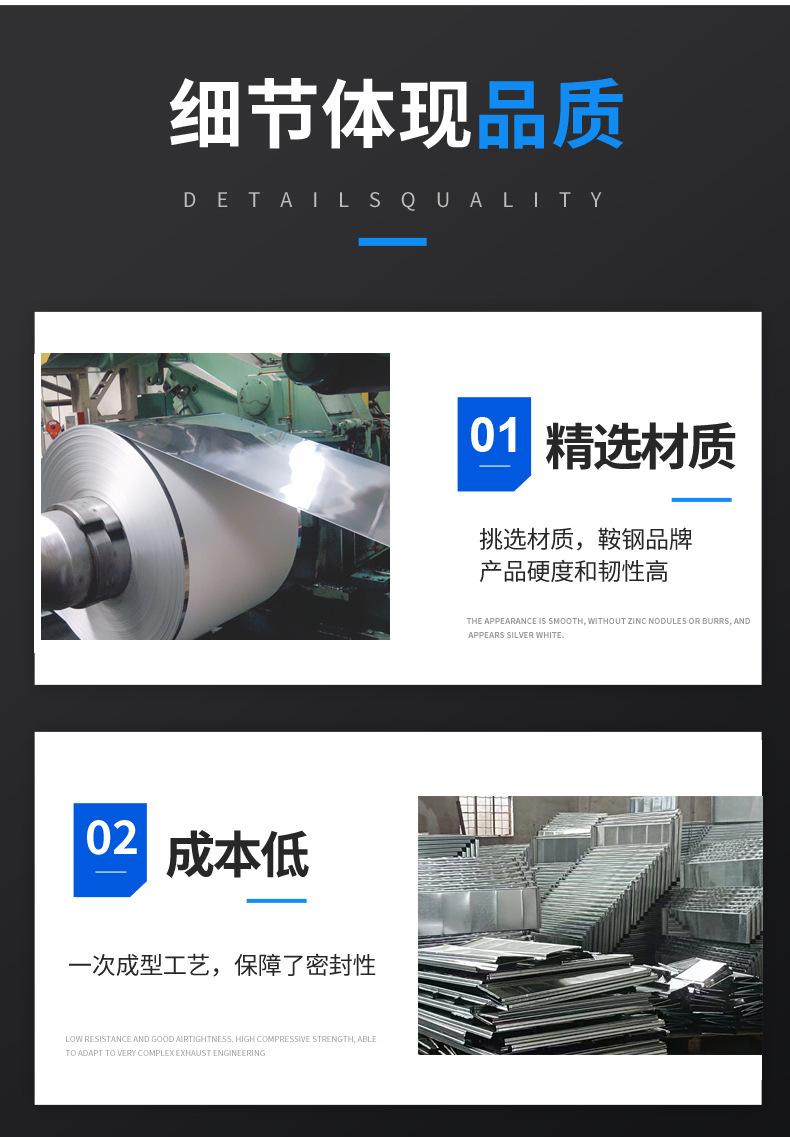 Flange de Placa Comum Galvanizada Duto de Ar Condicionado Duto de Ar Fresco Resistente a Alta Temperatura Industrial Ventilação de Incêndio e Exaustão de Fumaça Instalação Personalização