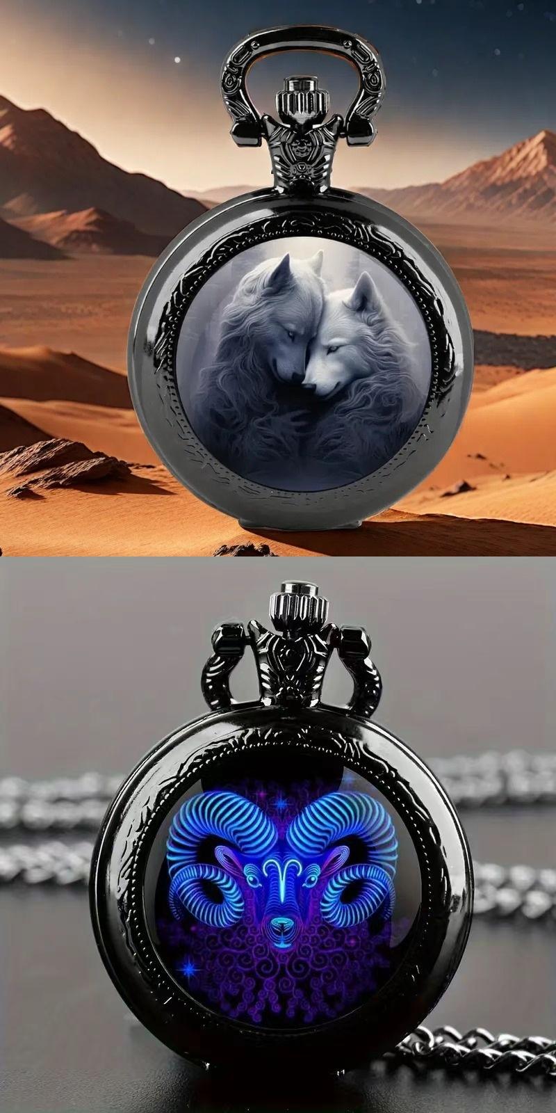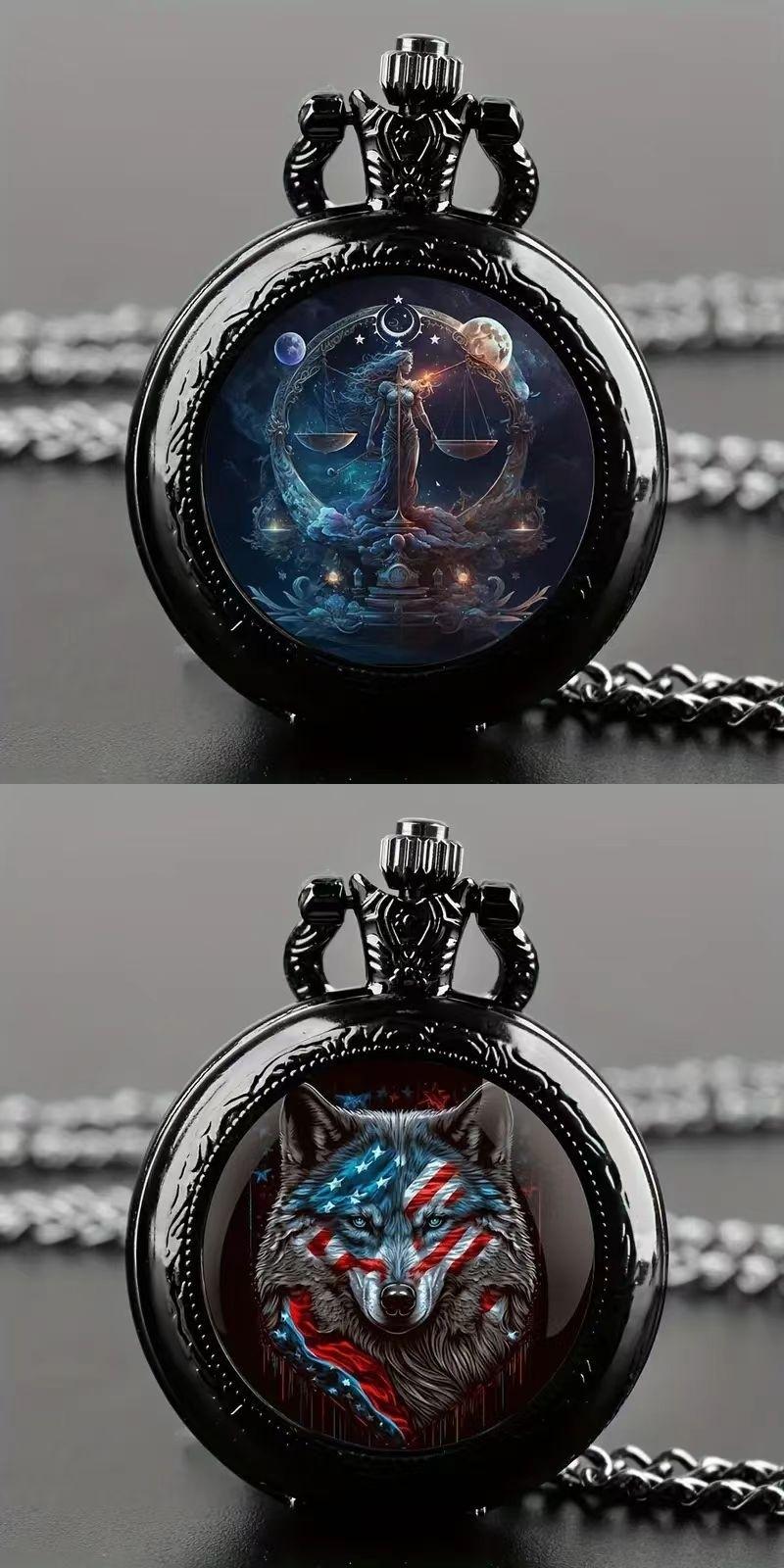 Relógio de Bolso Médio com Padrão Colorido Mais Vendido Transfronteiriço Retrô Flip Colar Decorativo Relógio Personalizado Moderno Estudante Masculino e Feminino Pedra