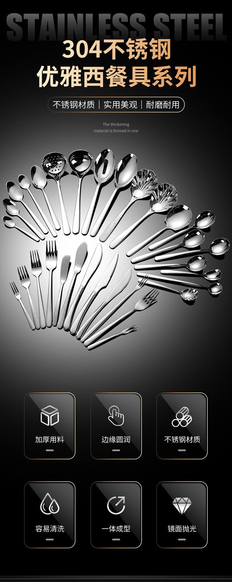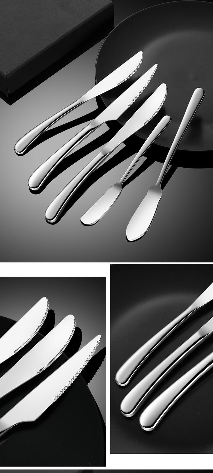 Talheres Elegantes de Aço Inoxidável 304 Faca Garfo Colher Espessos Hotel Comida Ocidental Colher de Café Sobremesa Conjunto de Facas para Bife