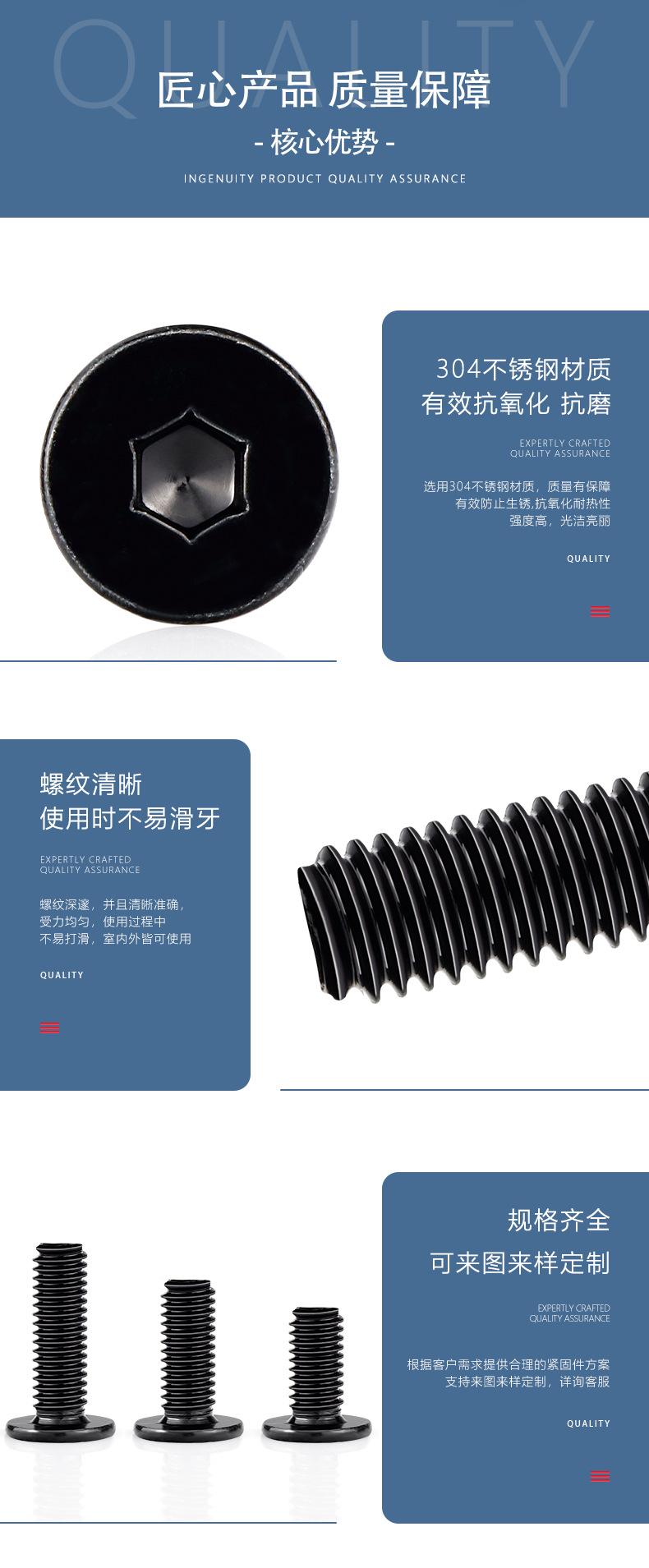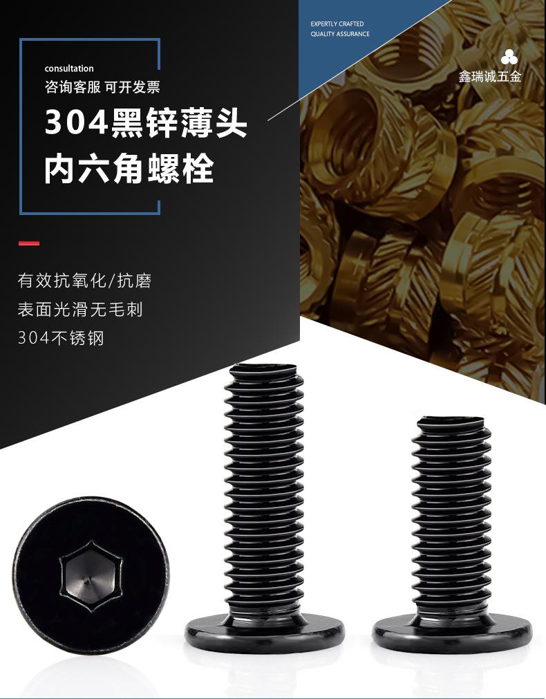 Parafusos de Soquete Hexagonal de Cabeça Fina em Aço Inoxidável 304 Zincado Preto M2-M8 Cabeça Chata Redonda cm Parafusos de Soquete Hexagonal Zincado Preto