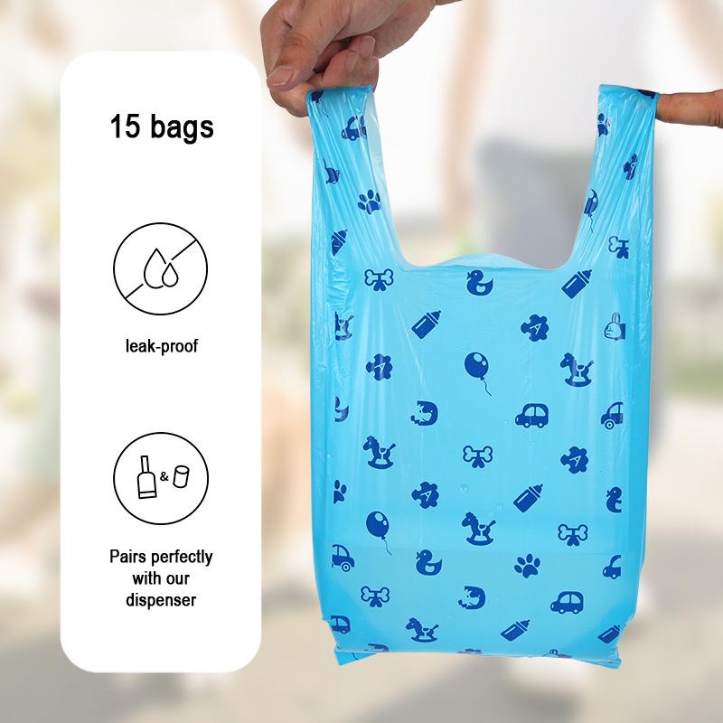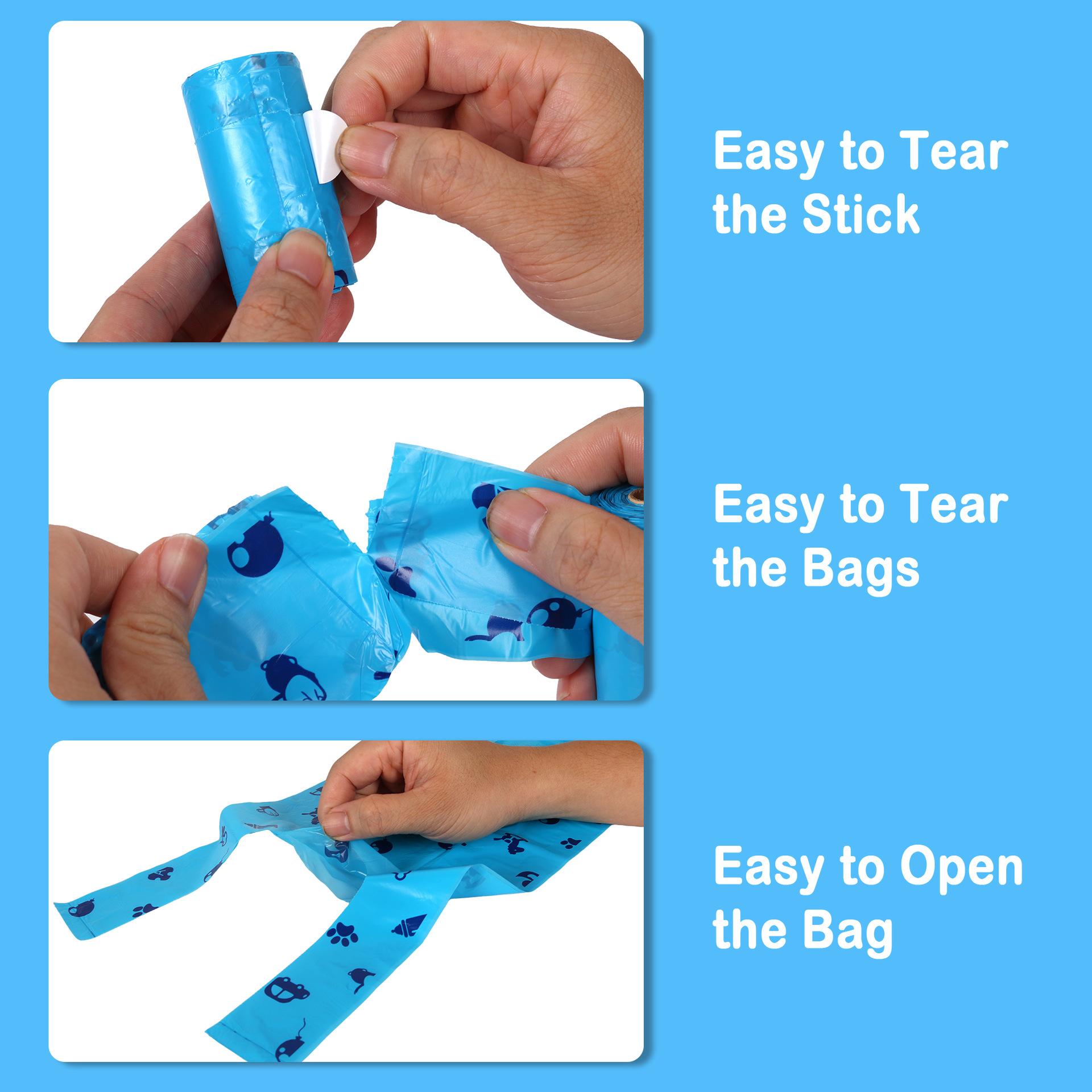 Cor: como a imagem principal Sacos Biodegradáveis para Resíduos de Animais de Estimação, Sacos para Cocô de Gato e Cachorro com Dispensador de Sacos para Cocô Sujeito ao estilo mostrado na imagem. Especificações do Saco de Lixo (Comprimento *Largura*Espessura) 170*370*0.013 mm 15 sacos por rolo, 16 rolos por caixa, 24 caixas por caixa 15 sacos por rolo, 16 rolos e 1 dispensador de sacos para cocô por caixa, 24 caixas por caixa de papelão Material: PEAD+D2W Aroma: azul: Lavanda, rosa sem aroma Mecanismo de biodegradação: Degradação fotoquímica dentro de 1-2 anos após o descarte