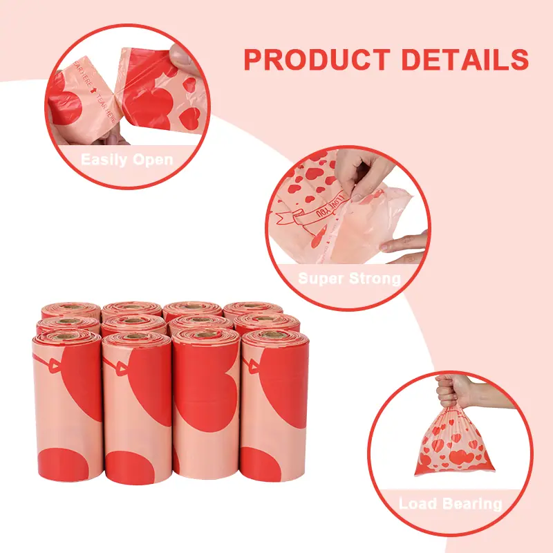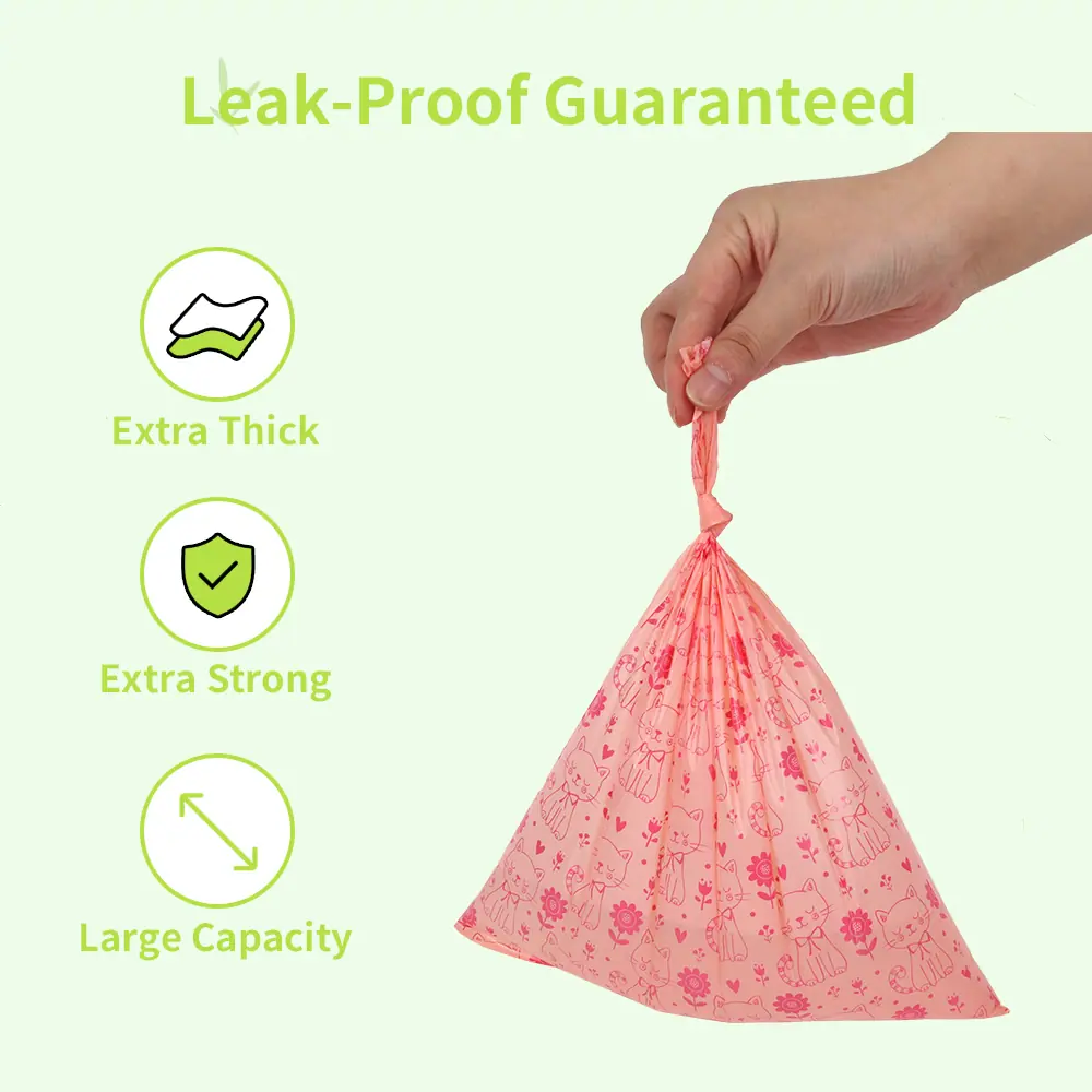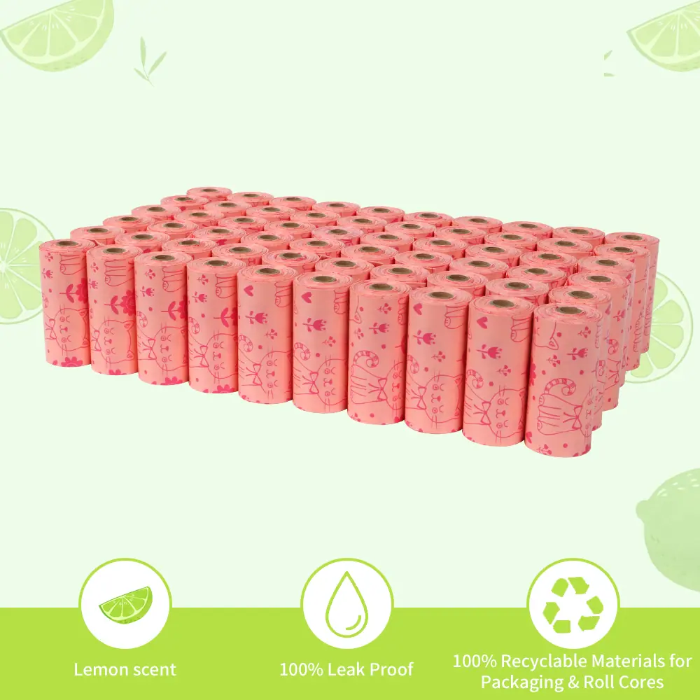 Cor: como a imagem principal Sacos Biodegradáveis para Resíduos de Animais de Estimação, Sacos para Resíduos de Gato e Cachorro Sujeito ao estilo mostrado na imagem. Especificações do Saco de Lixo (Comprimento *Largura*Espessura) #1~5: 220*320*0.008 mm #6~8: 230*330*0.012 mm # 9: 200*300*0.013 mm 15 sacos por rolo, 700 rolos por caixa Material: PEAD, PEAD+D2W Aroma: Nenhuma Mecanismo de biodegradação: Degradação fotoquímica dentro de 1-2 anos após o descarte