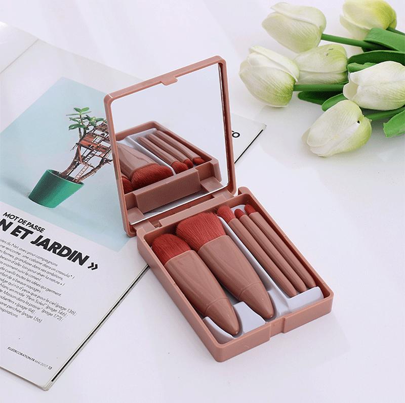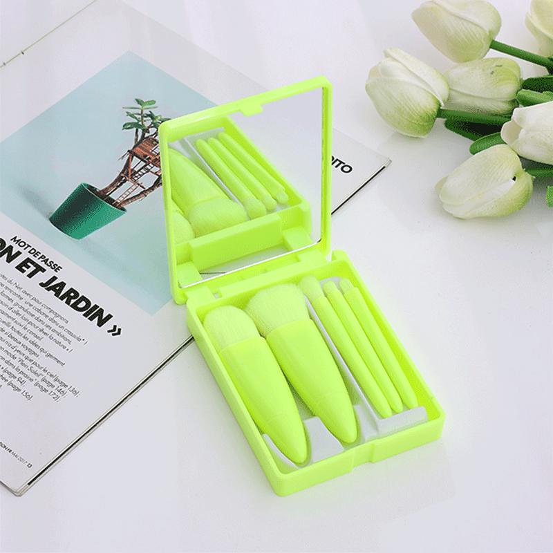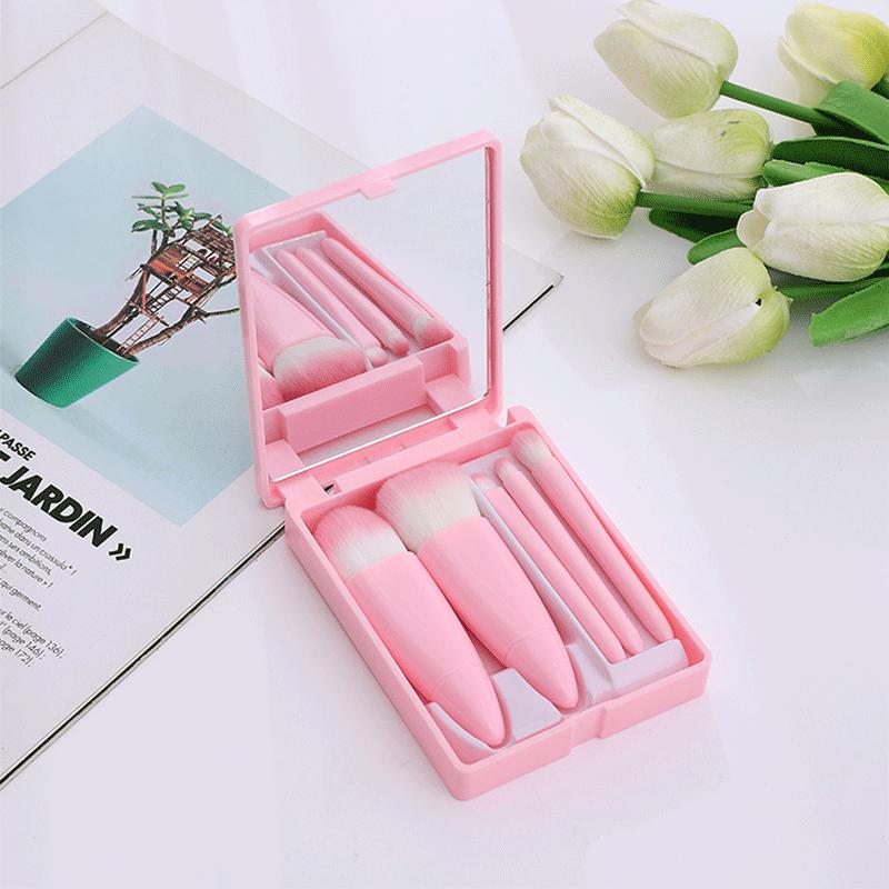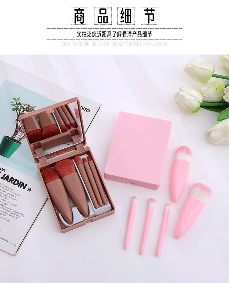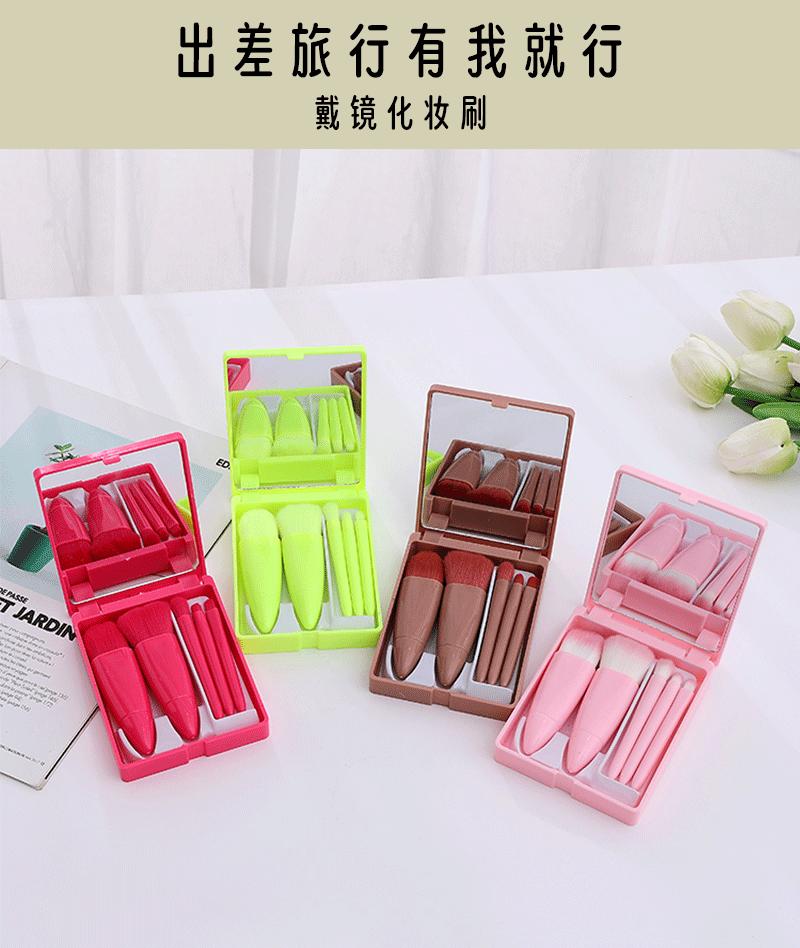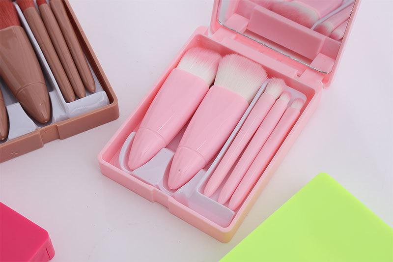 Conjunto de 5 pincéis de maquiagem para estudantes, atacado, portátil, multifuncional, pincel solto com espelho, pincel para blush, ferramentas de maquiagem