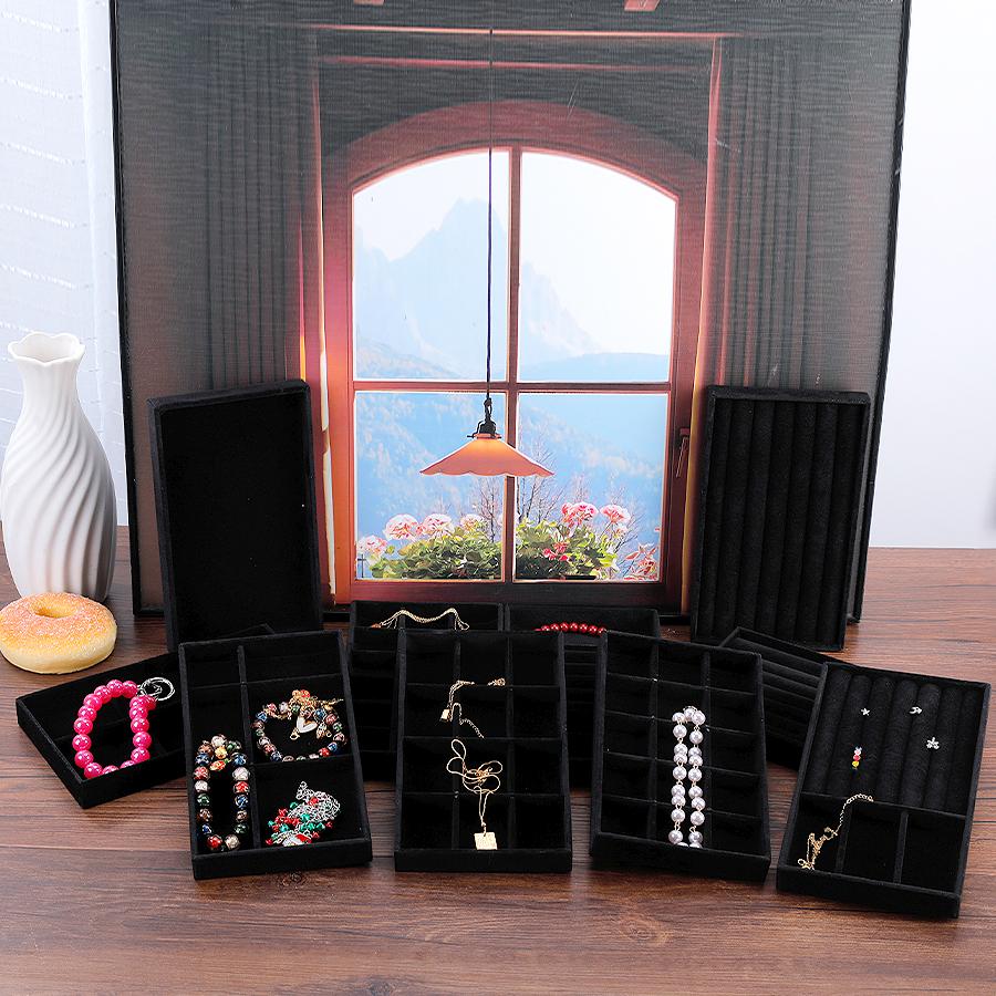1. Design requintado, caixa de joias flocado, bandeja para joias usando materiais de alta qualidade e conceitos de design únicos, para criar uma aparência bonita e generosa, tanto prática quanto artística.