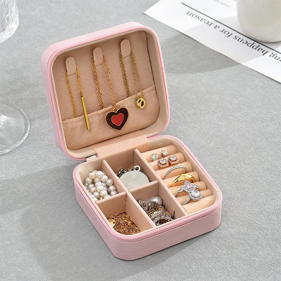 O design requintado da caixa de armazenamento de joias com zíper, feita de materiais de alta qualidade e apresentando um conceito de design único, cria uma aparência bonita e elegante, combinando praticidade e arte.