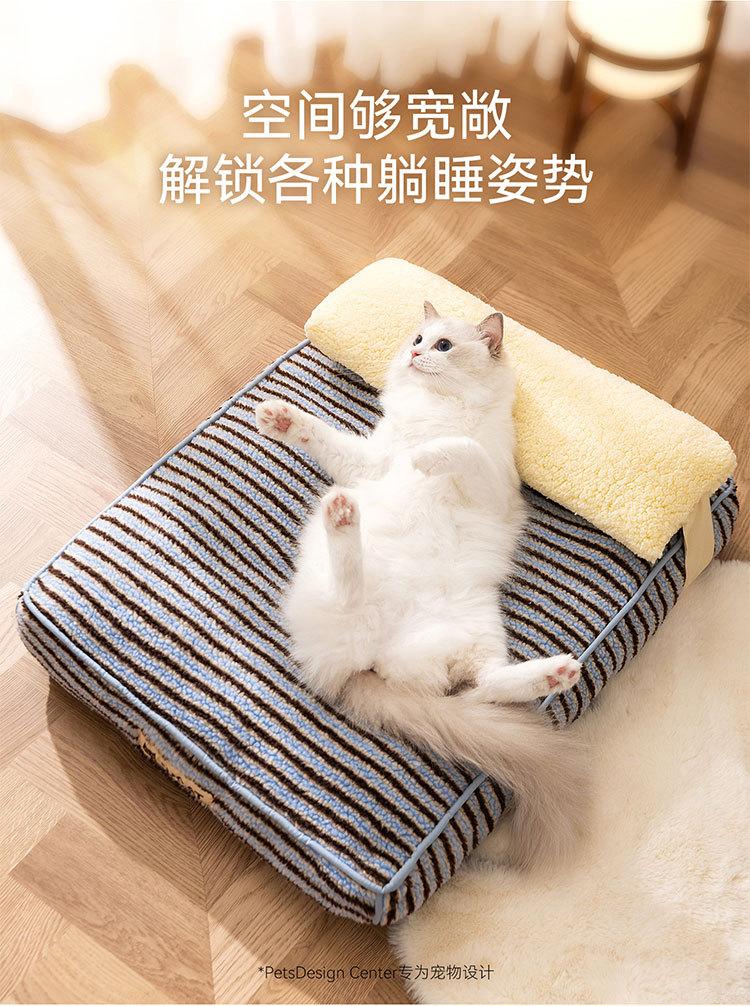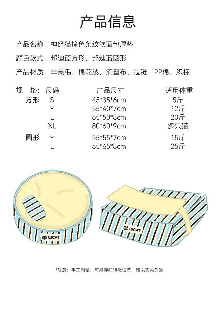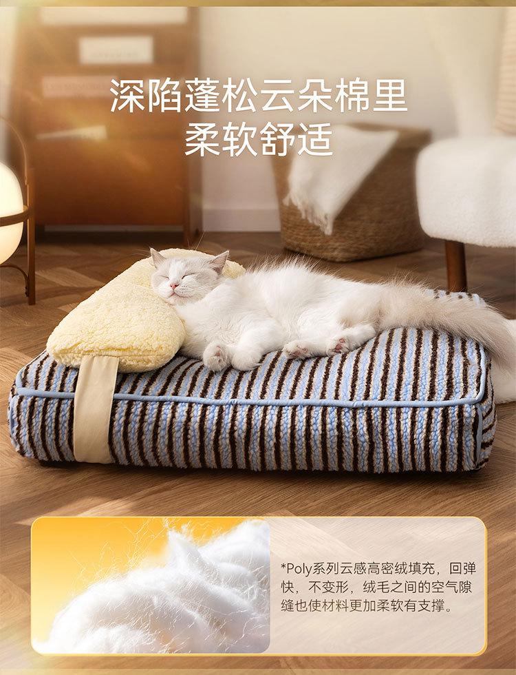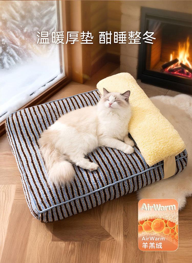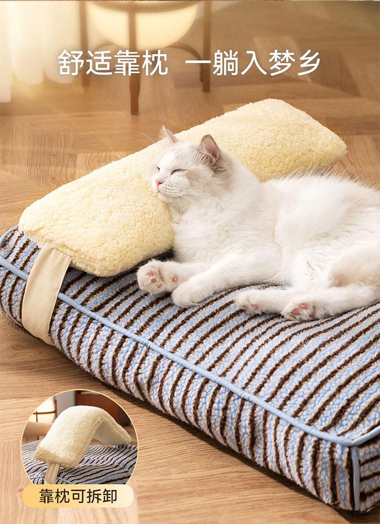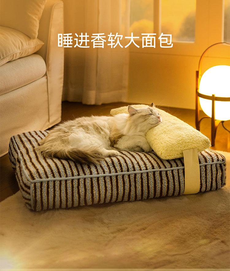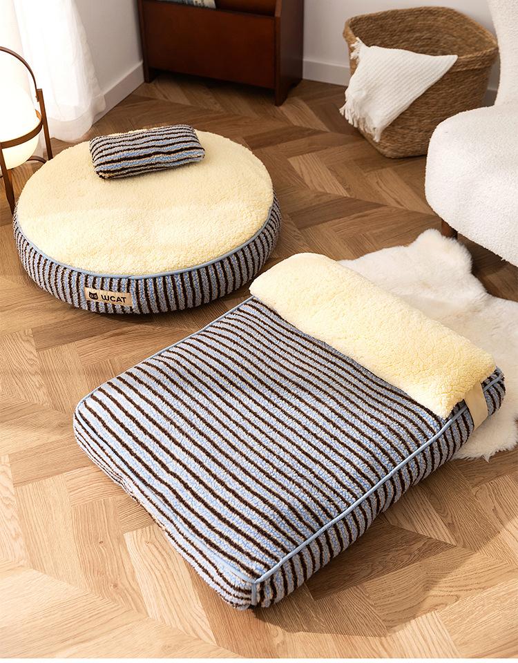 Ninho de gato outono e inverno engrossado e aumentado à prova de umidade almofada de cachorro bloco de cores listrado pão macio para dormir almofada de gato ninho de animal de estimação