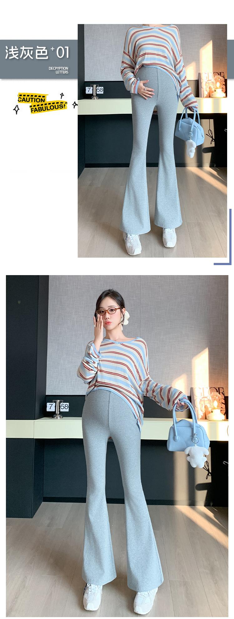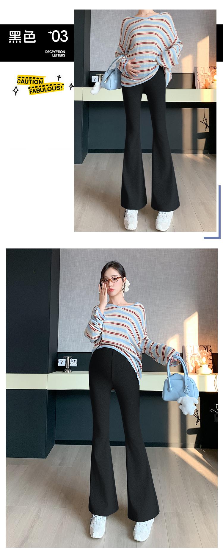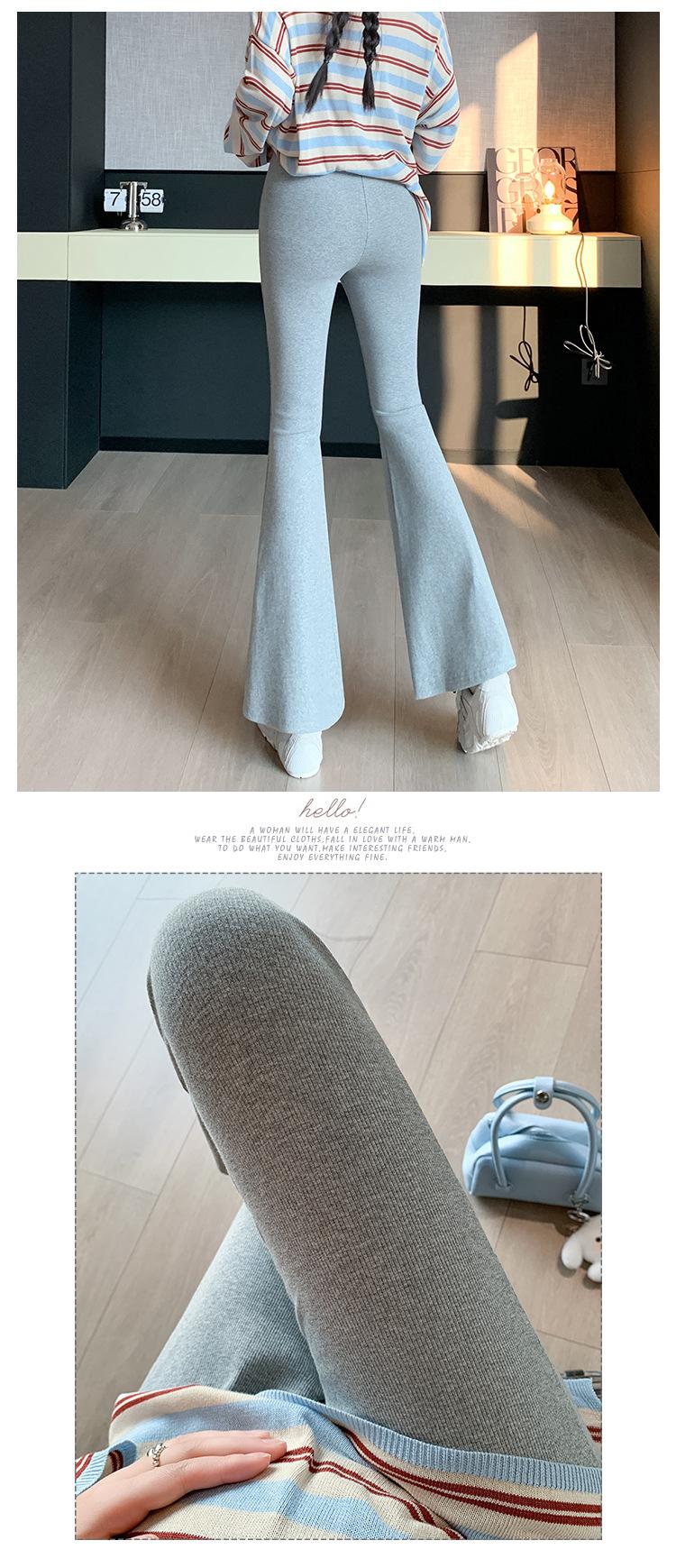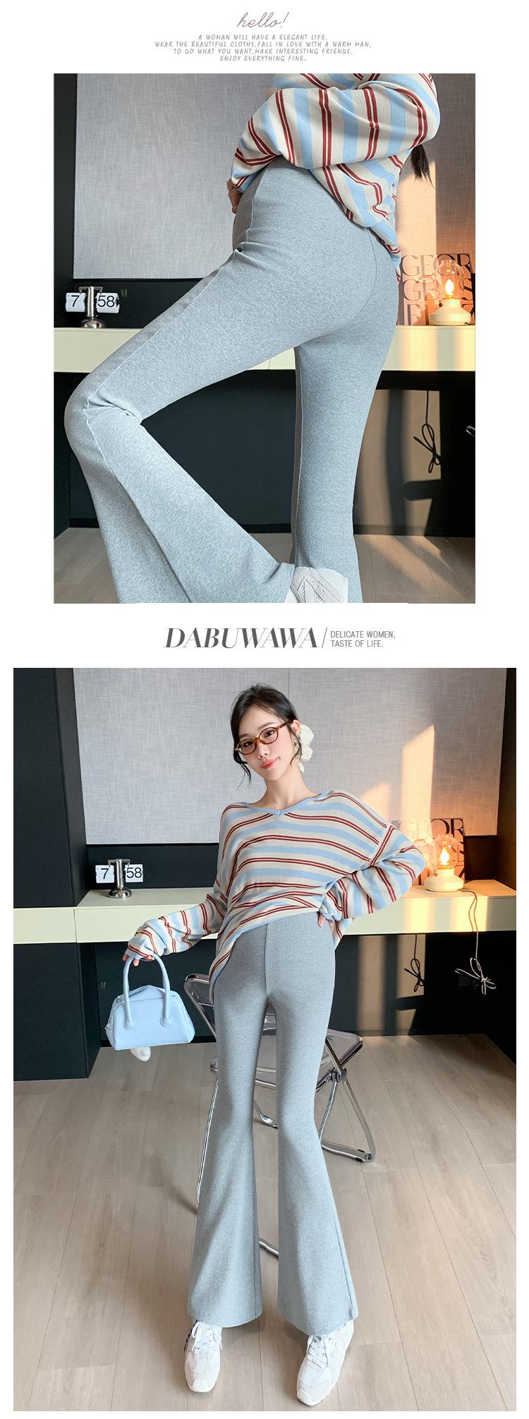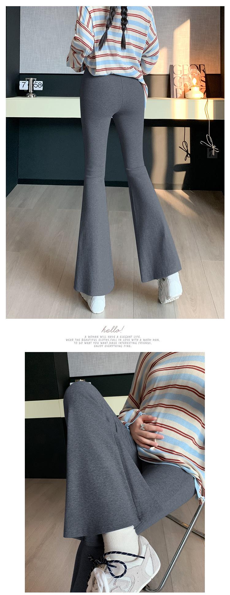 Calças de Maternidade Estilo Coreano Simples Estação Primavera e Outono Sem Suporte para a Barriga Cor Sólida Calças Casuais Elásticas Ajustadas Versátil Emagrecimento Calças Micro Flare