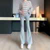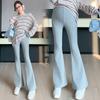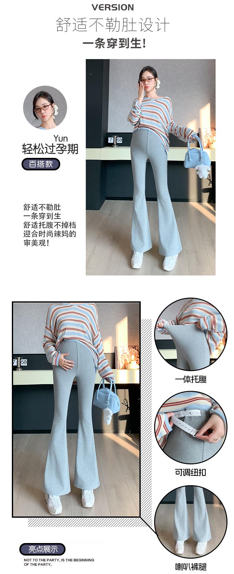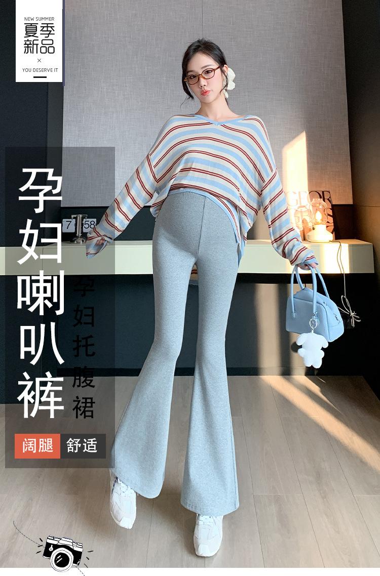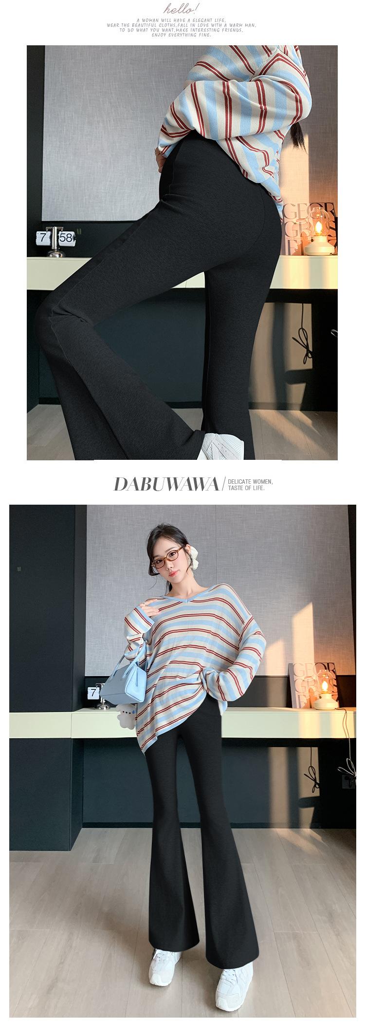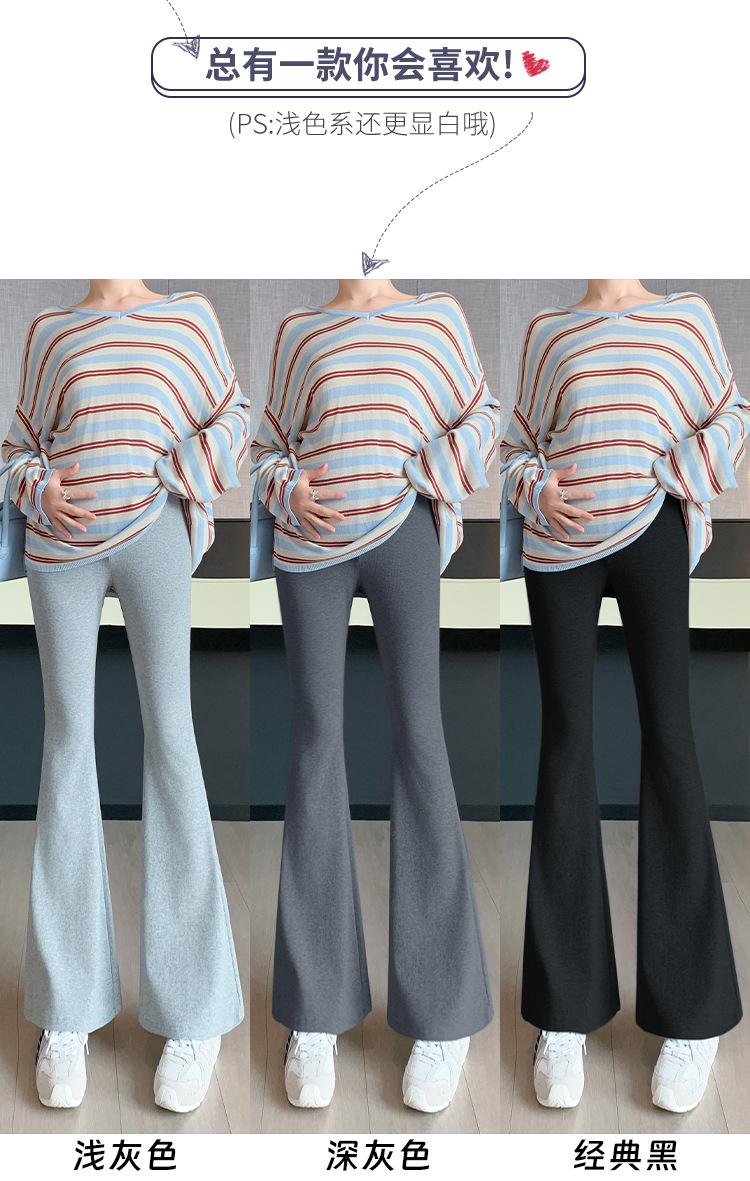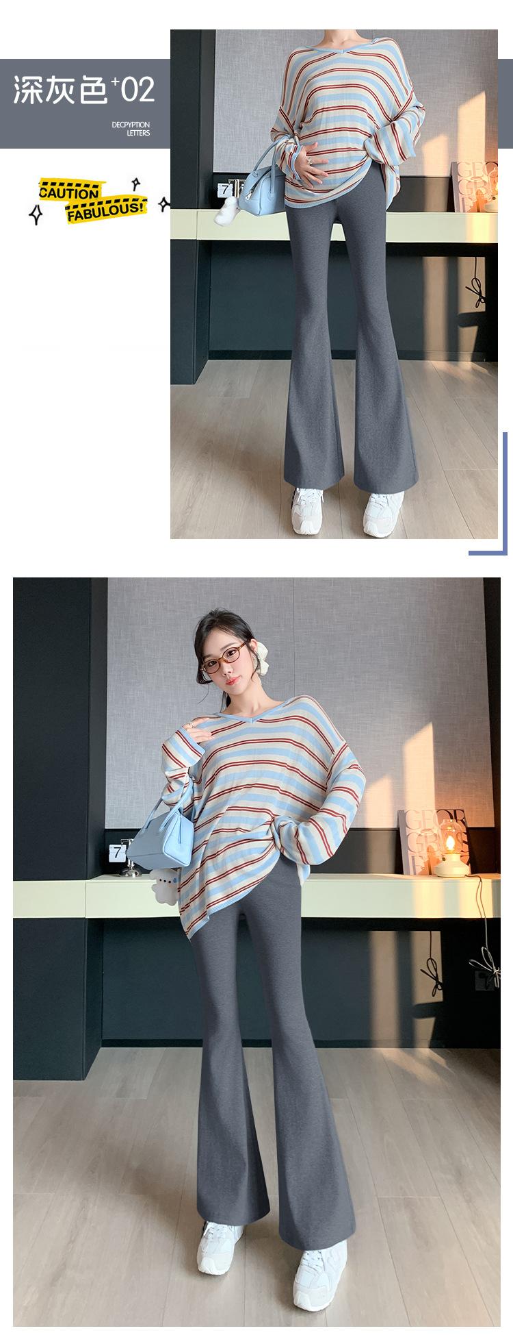 Calças de Maternidade Estilo Coreano Simples Estação Primavera e Outono Sem Suporte para a Barriga Cor Sólida Calças Casuais Elásticas Ajustadas Versátil Emagrecimento Calças Micro Flare