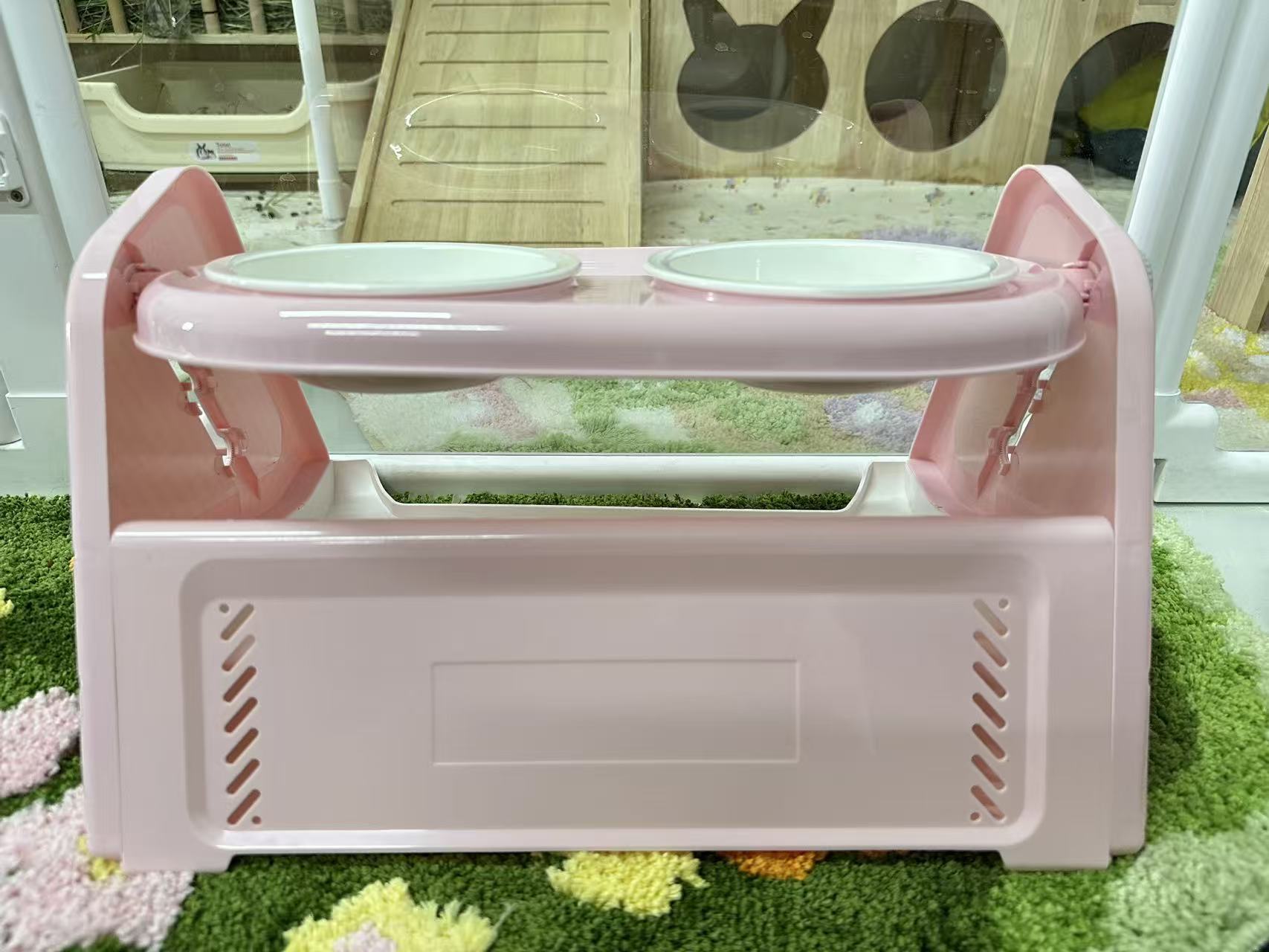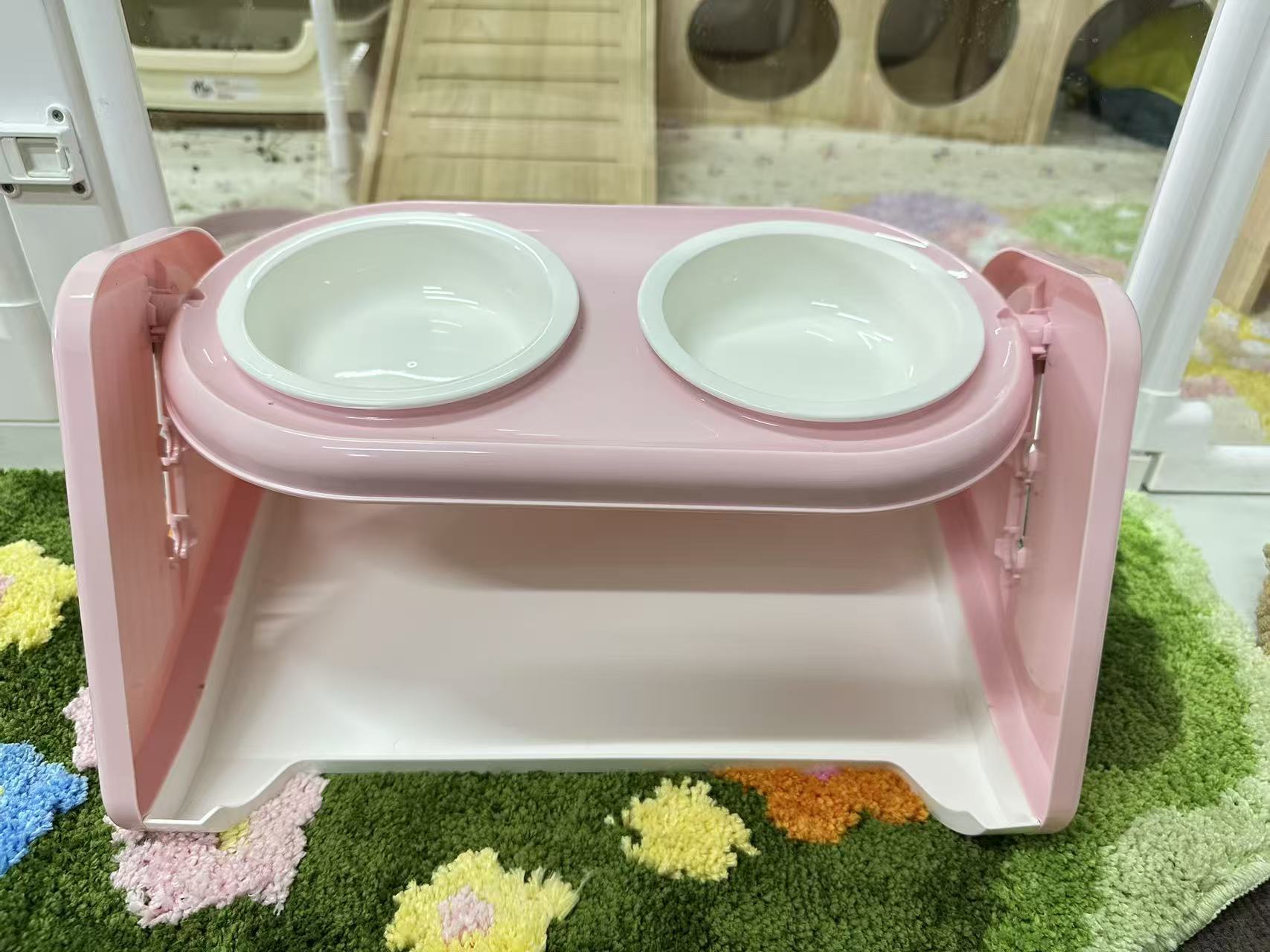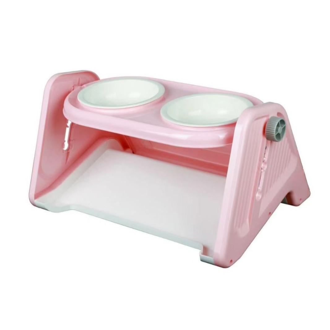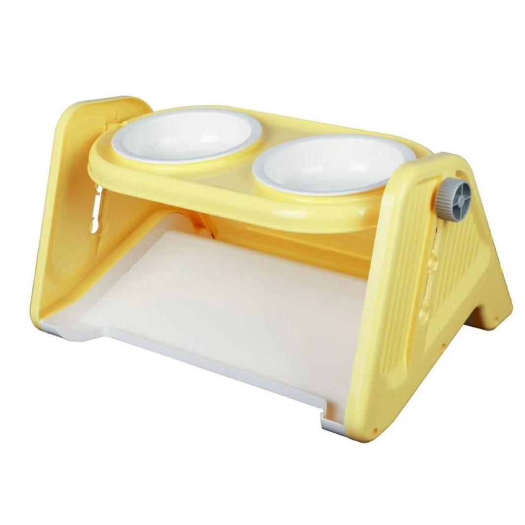 Porcionamento de tigela dupla, água e comida integrados, altura ajustável em três níveis, modo padrão de proteção de pescoço de 15 graus
