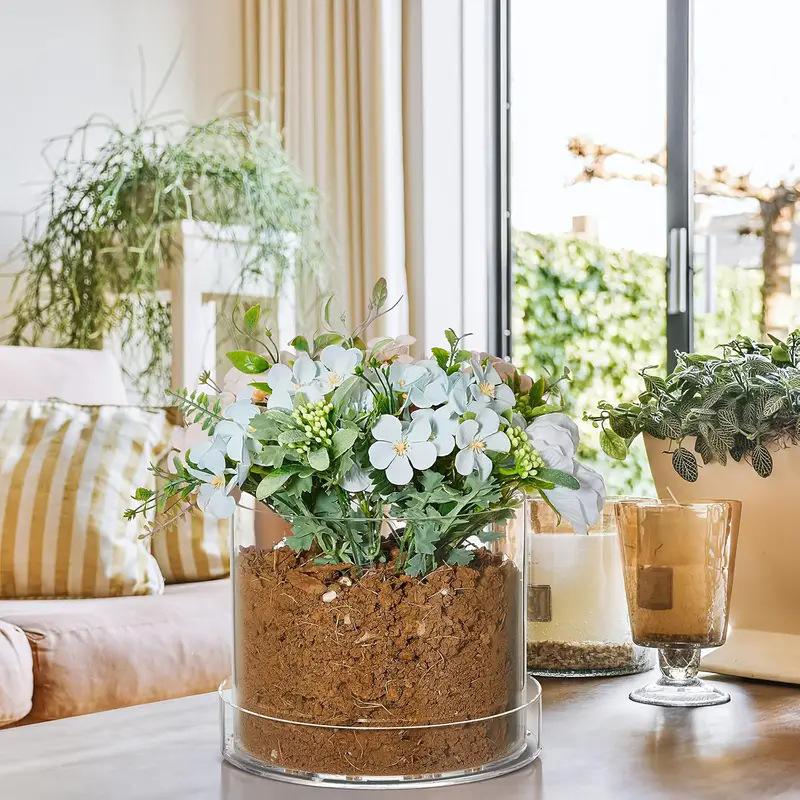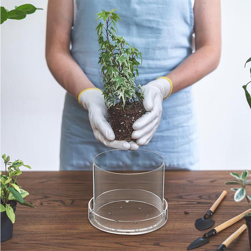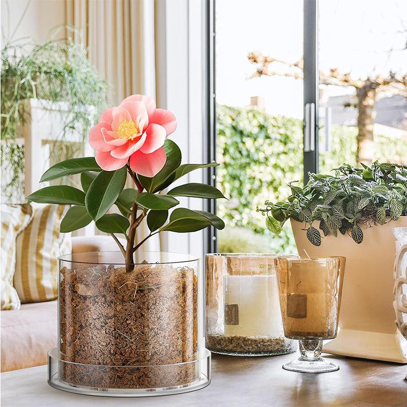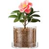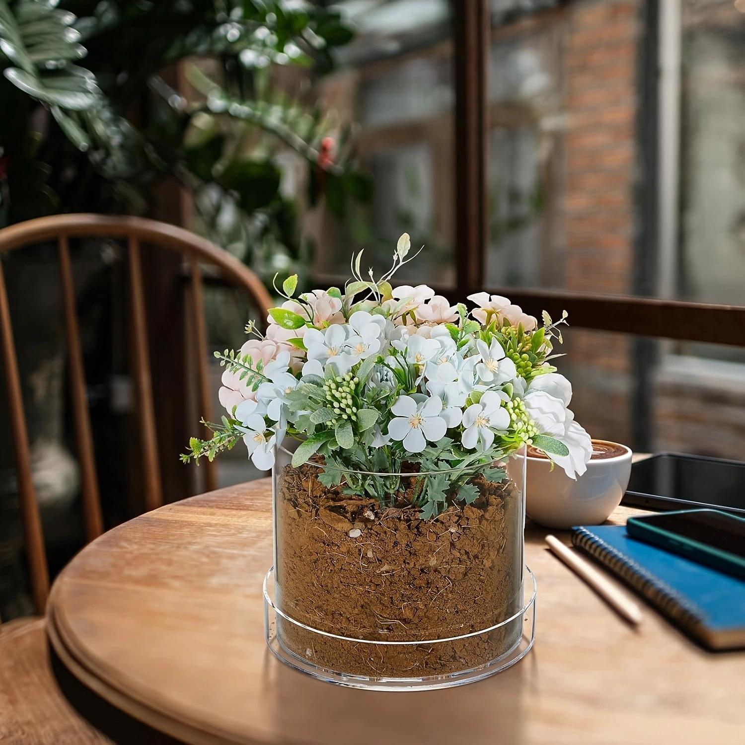 Vaso de flor acrílico transfronteiriço redondo transparente com furo de drenagem e bandeja de base vaso para mudas de plantas verdes vaso para plantio de plantas vaso para bonsai