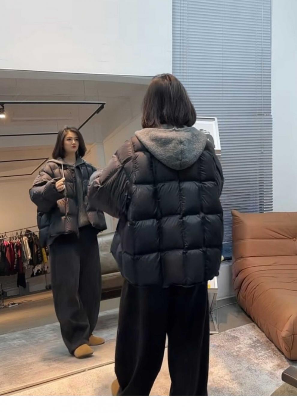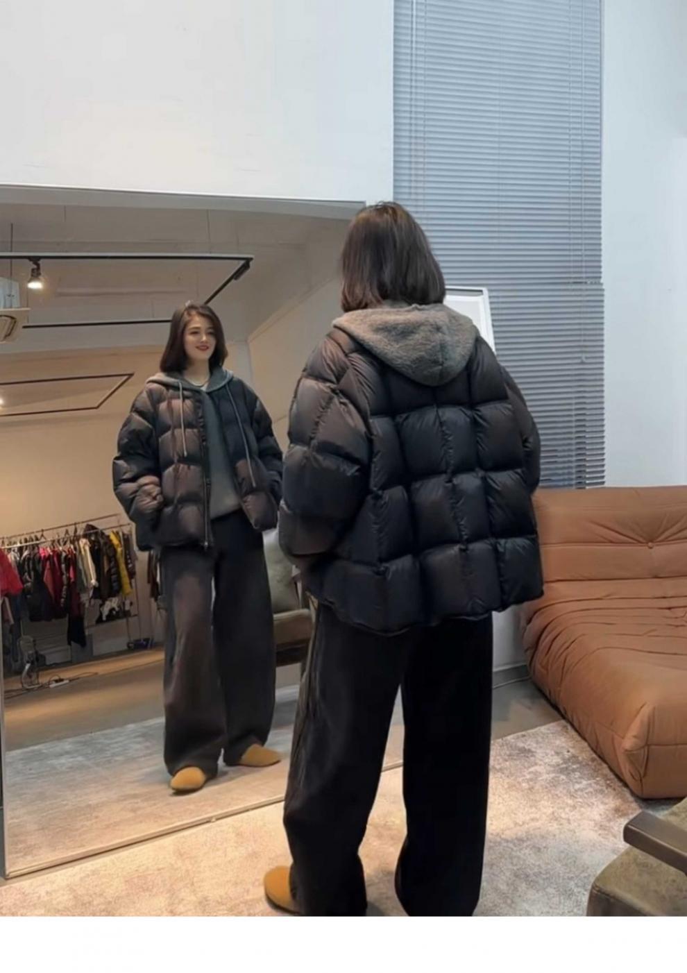 Casaco de algodão quadrado feminino 2025 inverno novo solto casual estilo coreano gola redonda engrossado plus size casaco de algodão casaco feminino