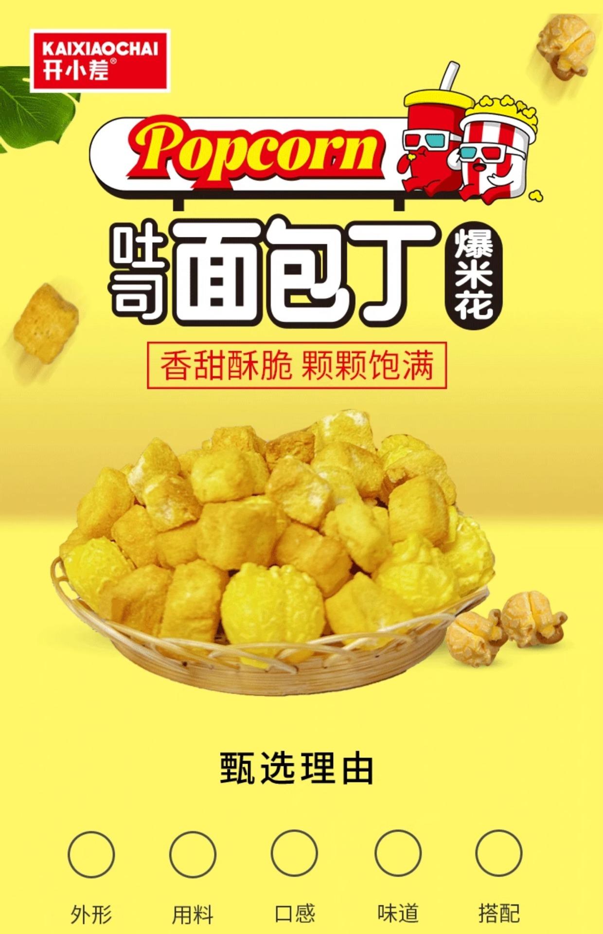 Lanches de Pipoca Estufada da Marca Kai Xiaochai, Comida da Moda Famosa na Internet, Compra em Loja de Conveniência e Supermercado 158g