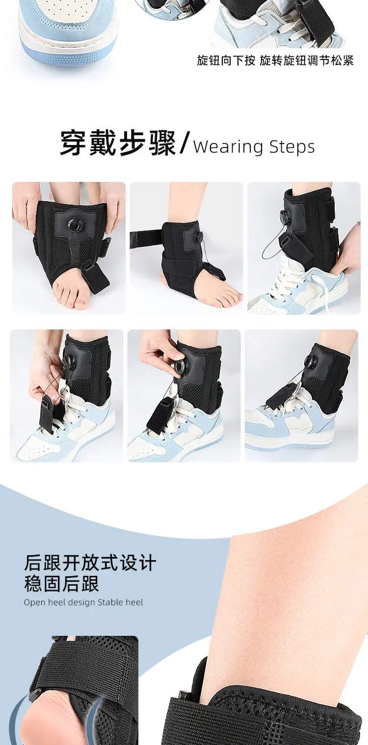 Órtese para Pé Caído com Botão Uso Diurno e Noturno Calçar Sapatos Ajustável Elevação Cadarços Caminhada Sapatos de Elevação Suporte Pé Caído