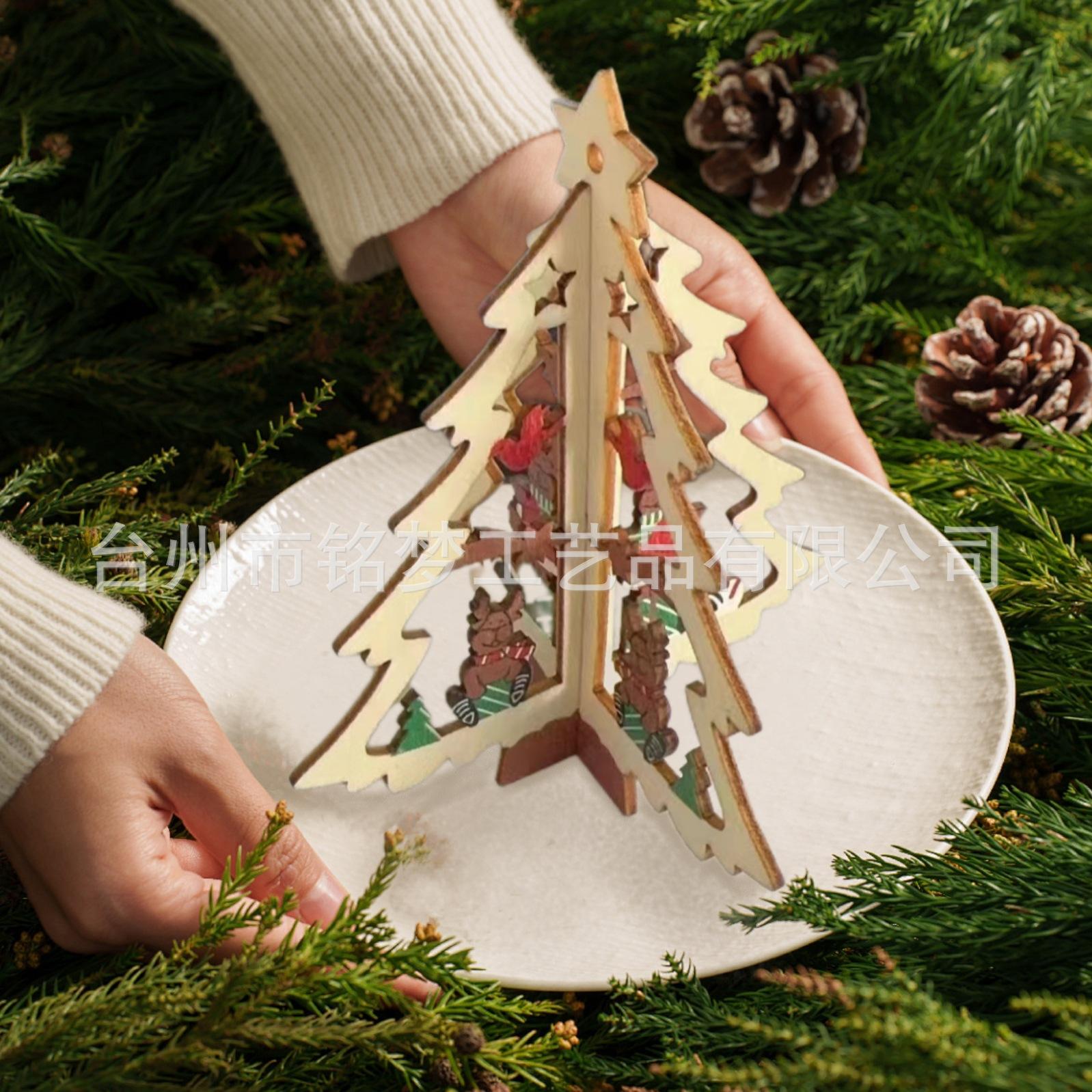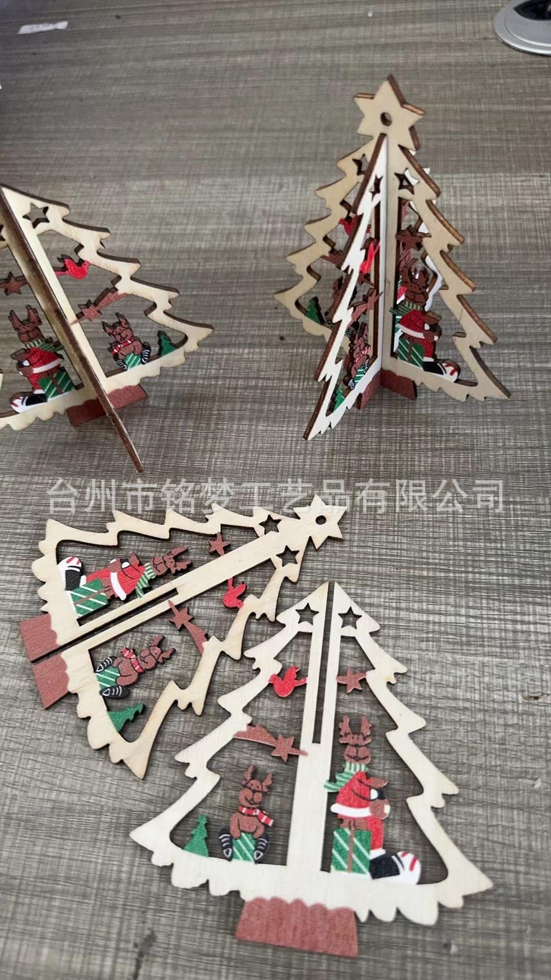 Novas Decorações de Natal Transfronteiriças Decorações de Natal de Madeira a Laser Oca Árvore de Natal Pequeno Pendente Decoração de Natal Criativa