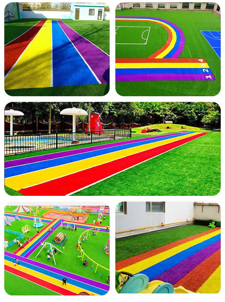 Escola Maternal Grama de Cor Artificial ao Ar Livre Pista Arco-Íris Artificial ao Ar Livre Playground Gramado Sintético Simulado de Plástico