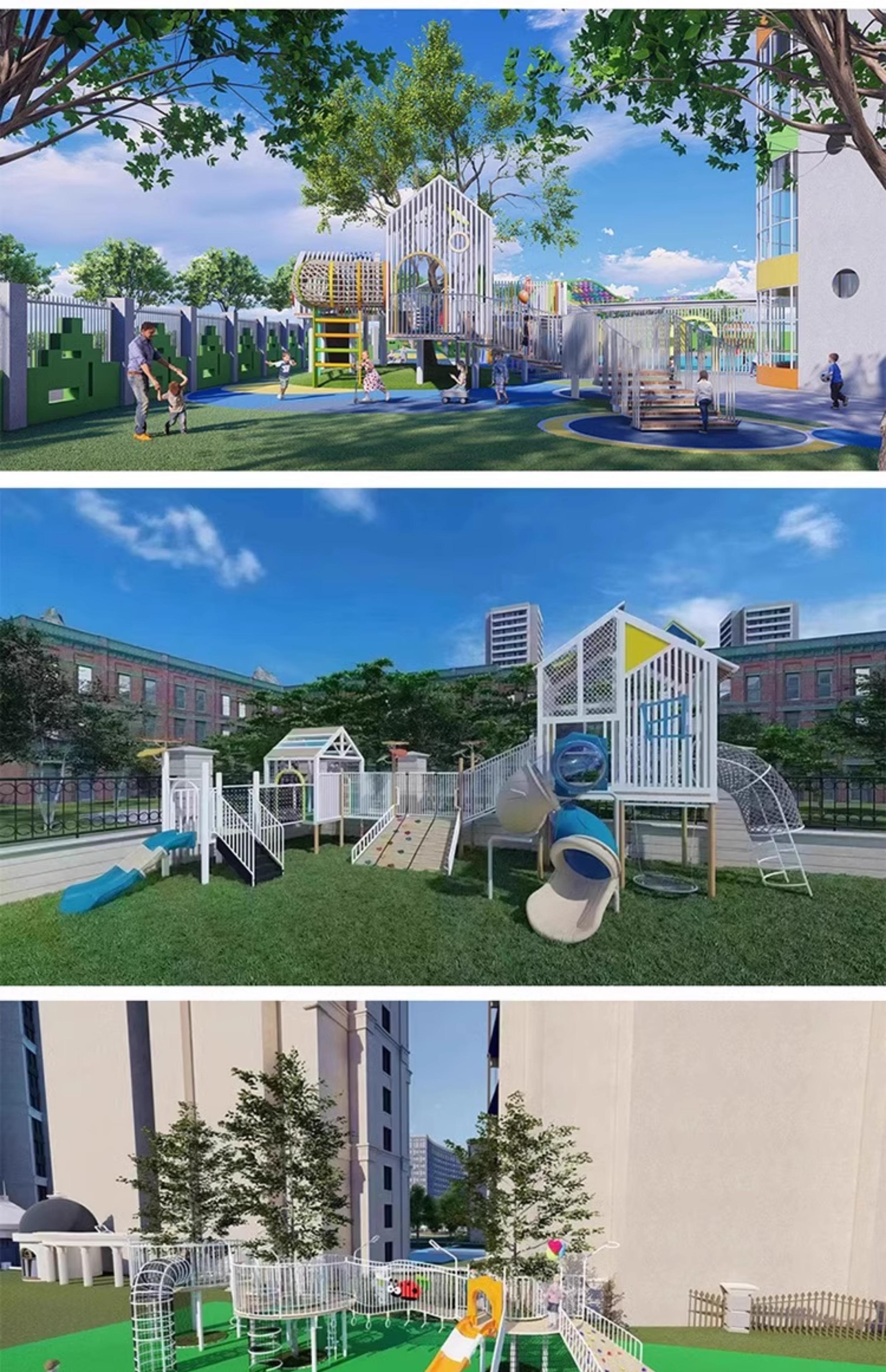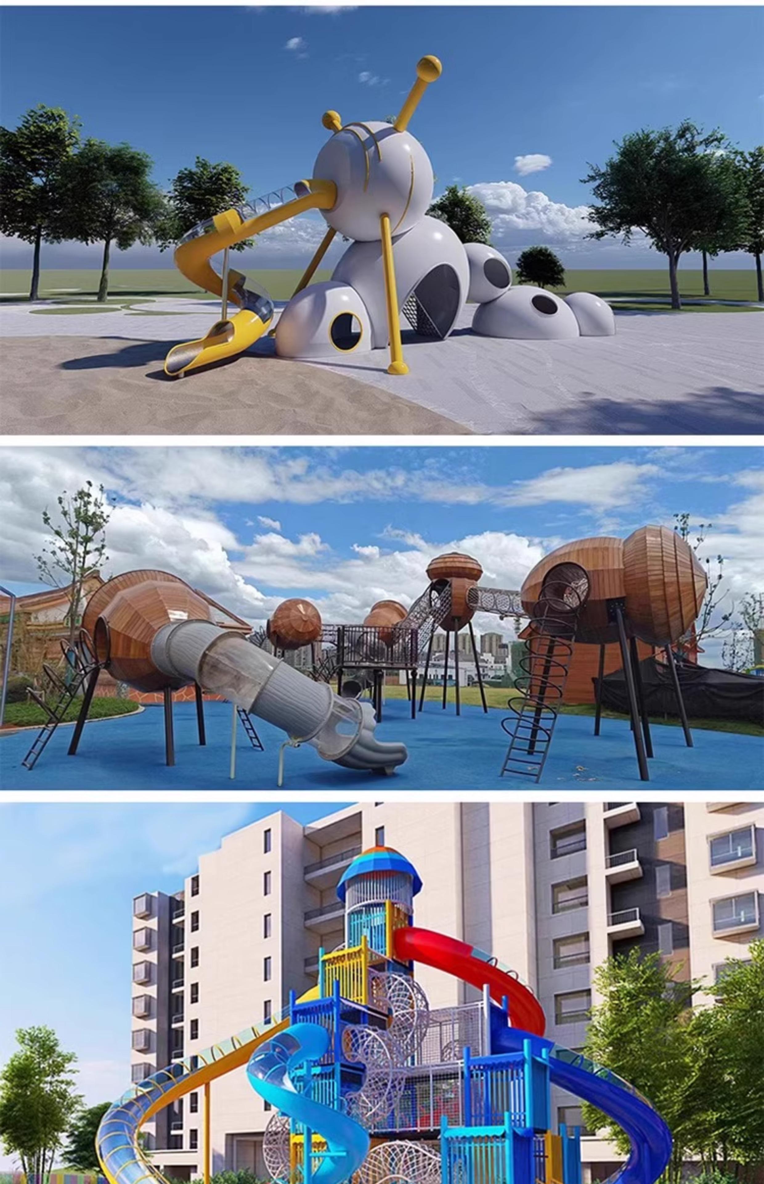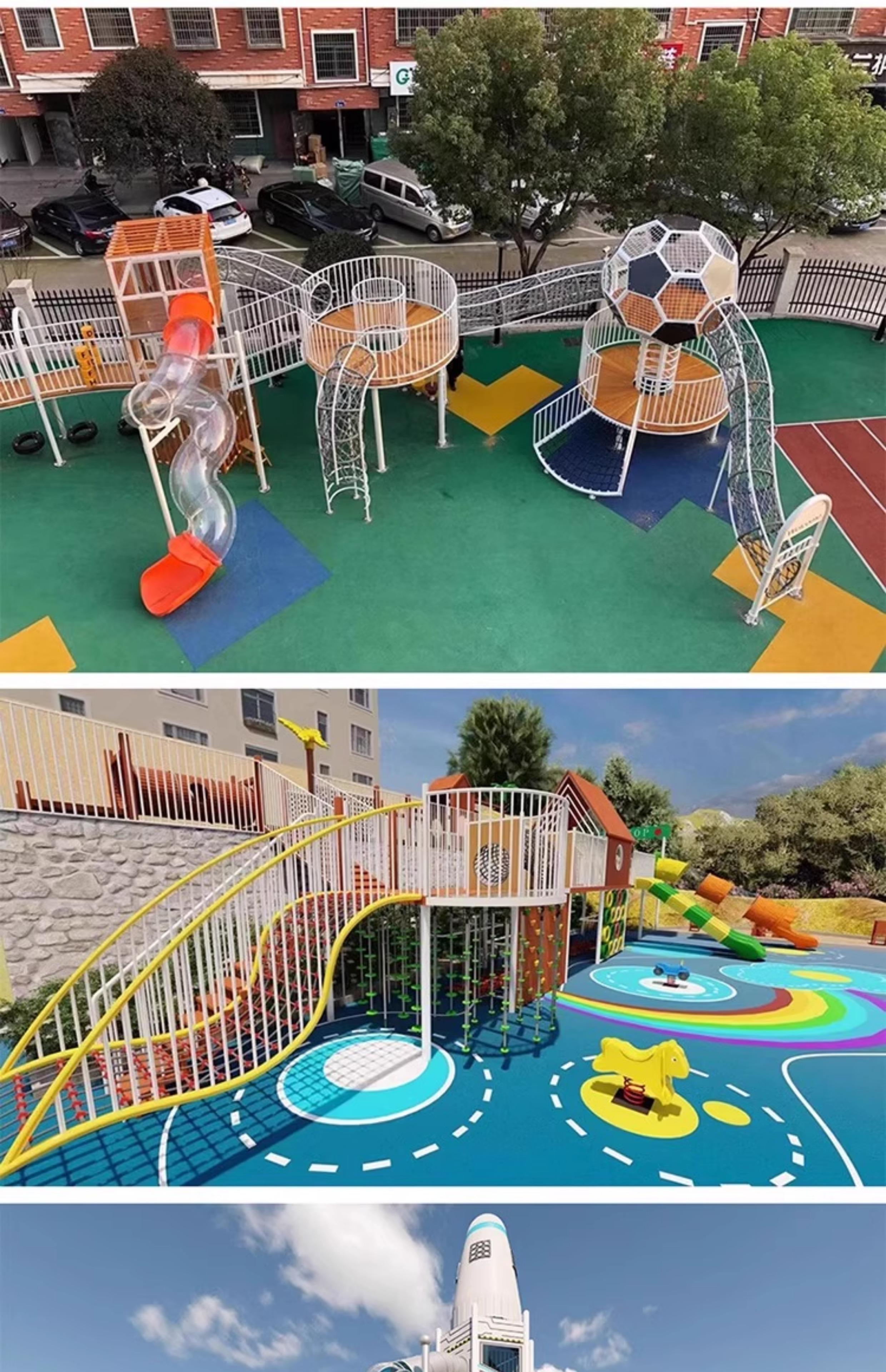 Equipamento de Playground ao Ar Livre Escorregador de Aço Inoxidável Rede de Escalada Balanços Jardim de Infância Comunidade Instalações de Recreação Infantil Escalada