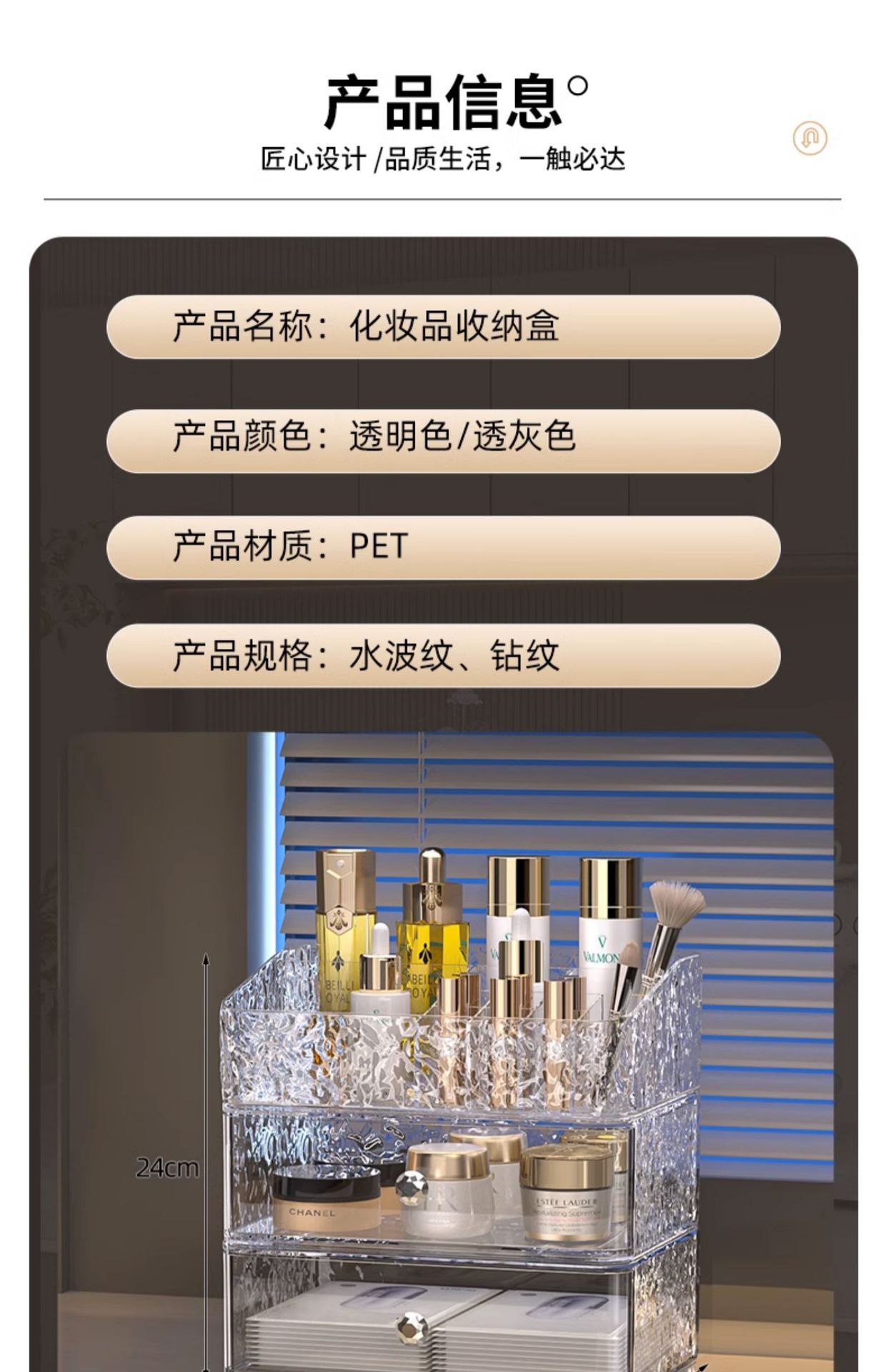 Water ripple cosmetic box [transparent second layer], Water ripple cosmetic box [transparent gray second layer...