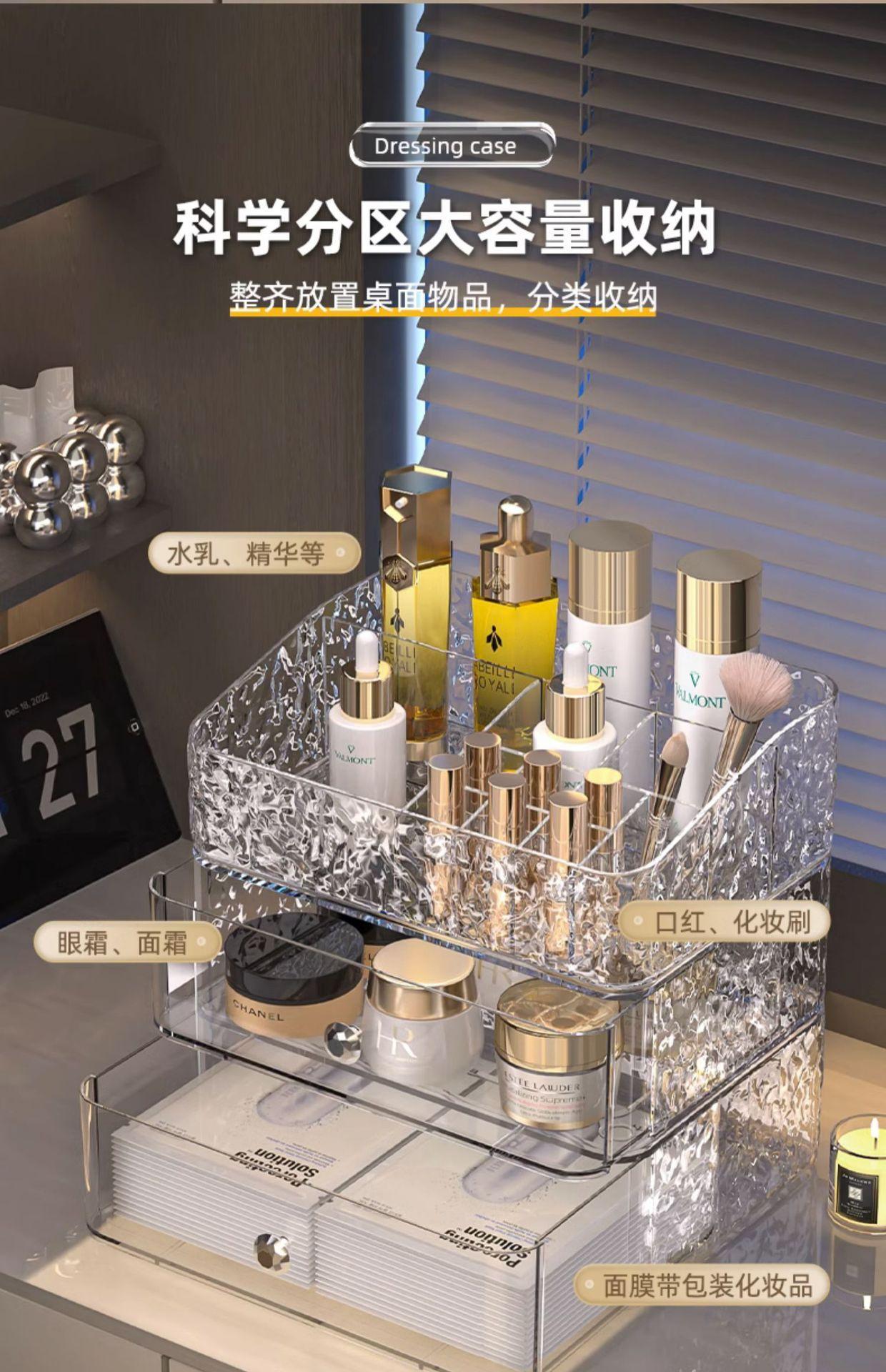 Caixa de Armazenamento de Cosméticos de Mesa Transparente à Prova de Poeira Penteadeira Cuidados com a Pele Batom Pincéis de Maquiagem Acrílico Gaveta Prateleira de Armazenamento