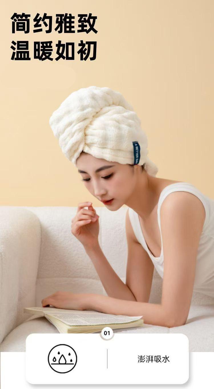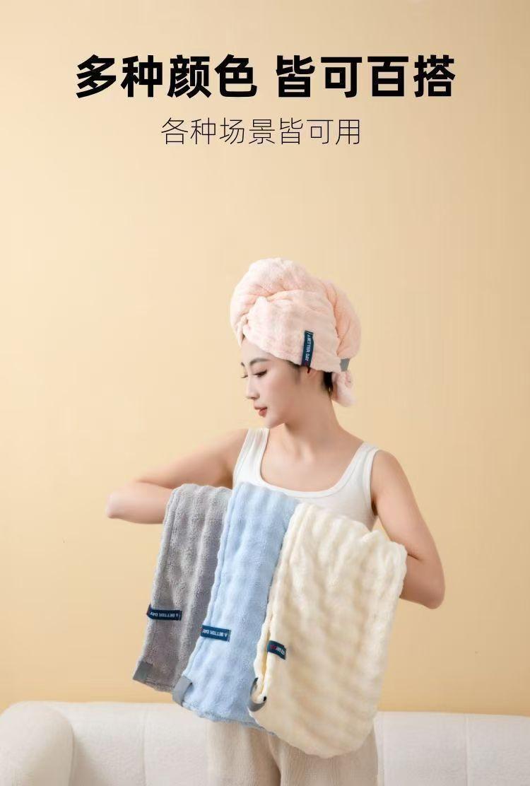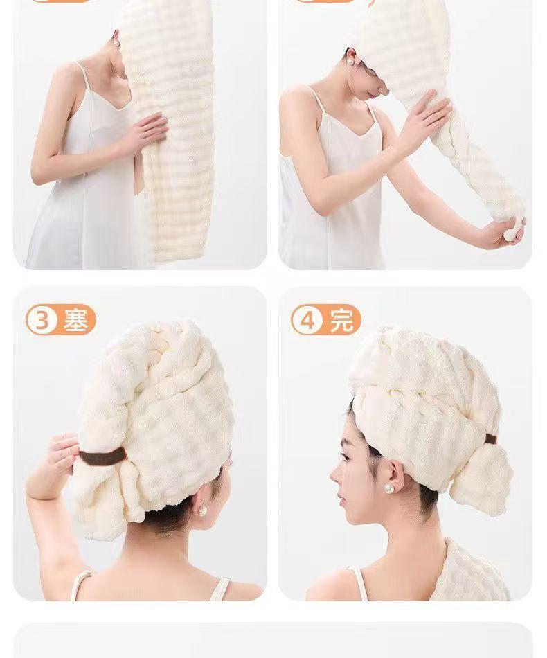 Bubble Fleece Drying Hair Cap [Sakura Pink] with OPP Inner Packaging, Bubble Fleece Dry Hair Cap [Advanced Gre...
