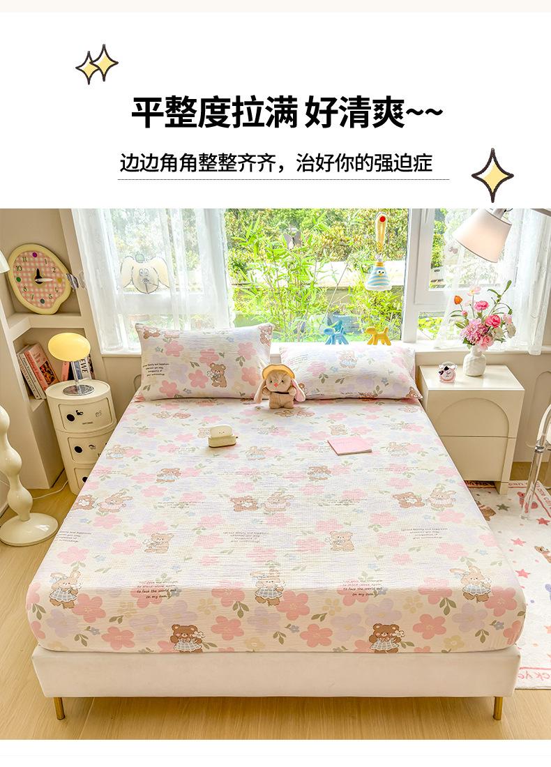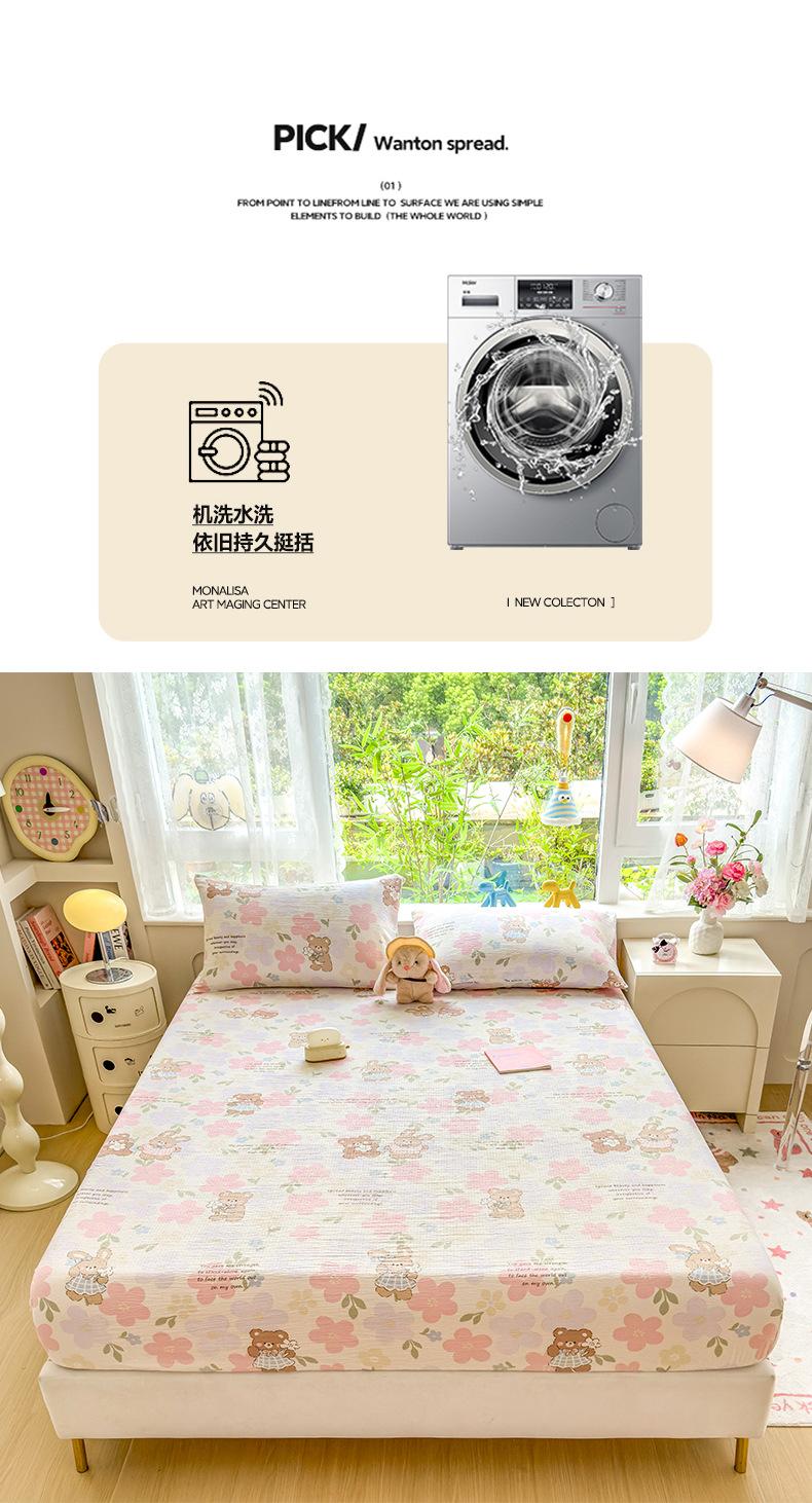 Lençol de Algodão Lavado com Elástico Peça Única Novo Estilo 2025 Envoltório Completo Colcha Lençol Protetor de Colchão Simmons Lençol com Elástico Conjunto de Três Peças