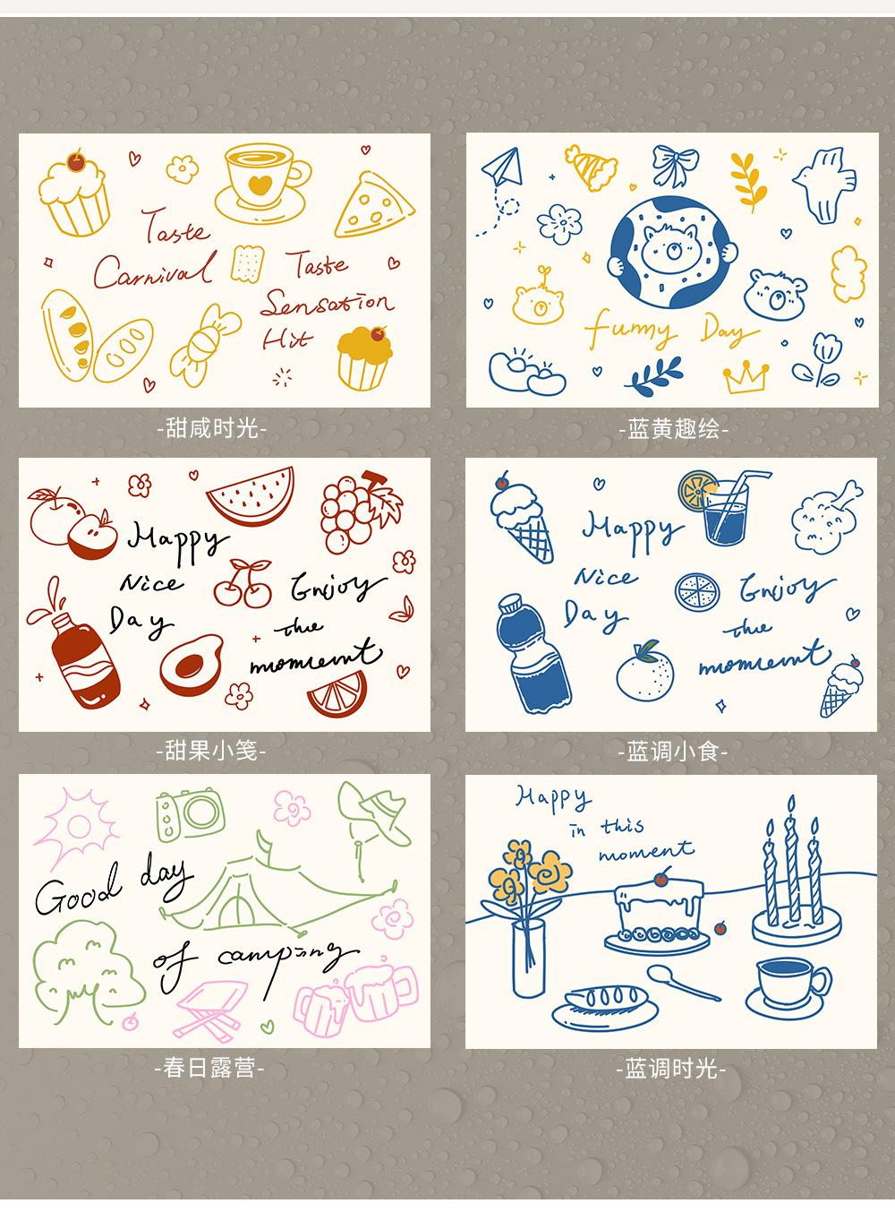 Spring camping, Sweet and salty time, Blues time, Blue and yellow fun painting, Sweet fruit note, Blues snacks
