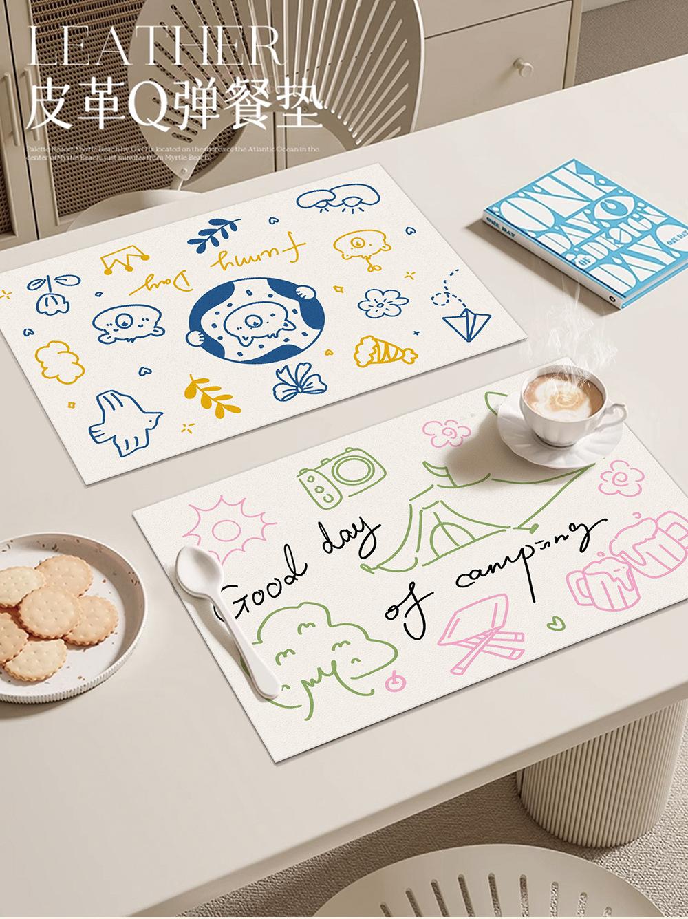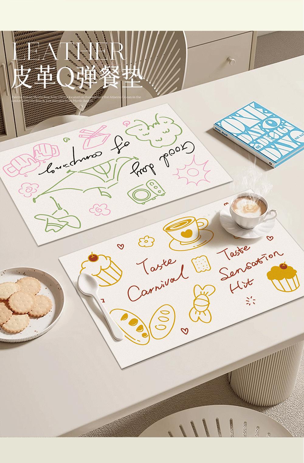 Sousplats Impermeáveis e à Prova de Óleo Tapetes de Mesa Estilo Simples Francês Tapetes para Mesa de Jantar Couro Sousplats Ocidentais Limpáveis e Laváveis Tapetes para Pratos