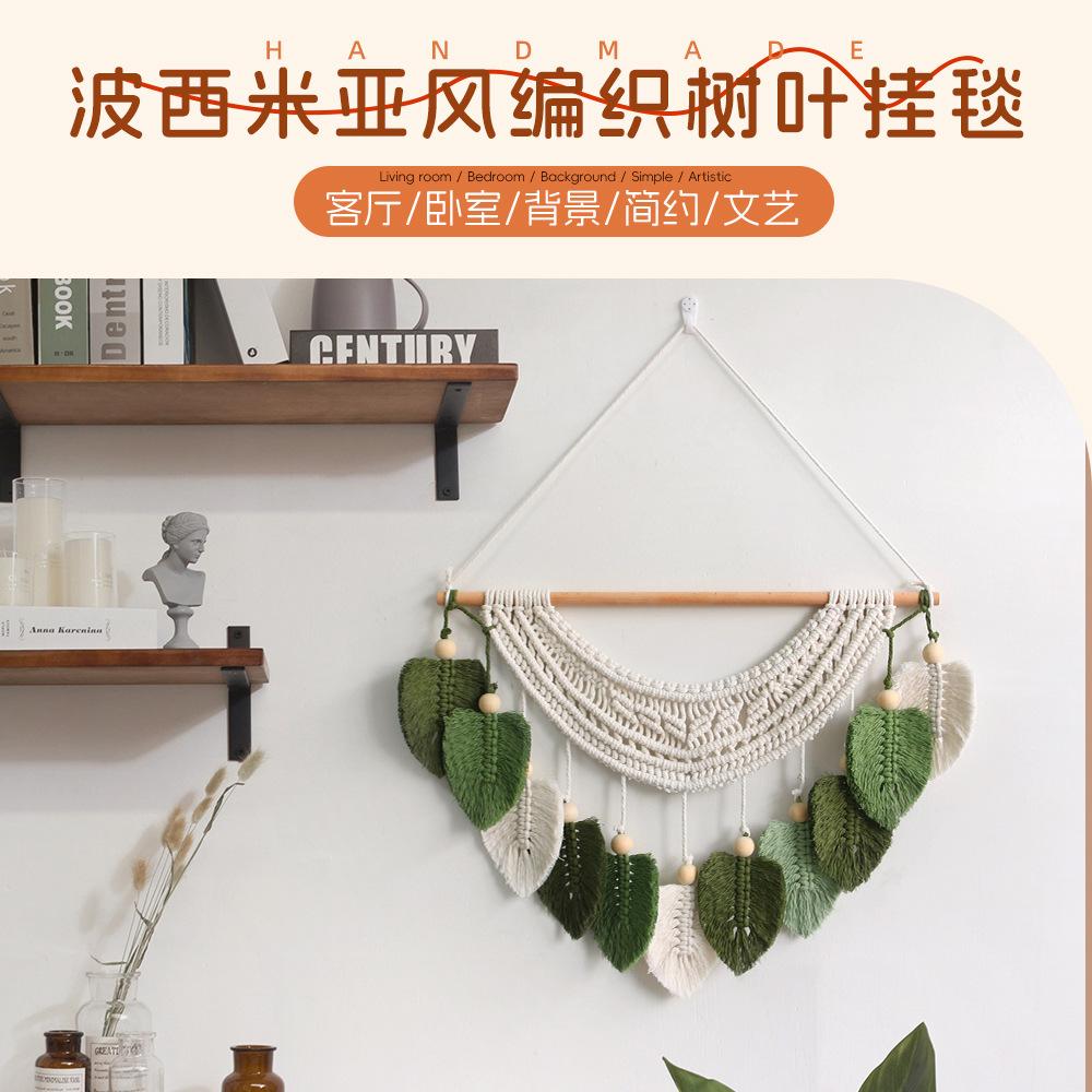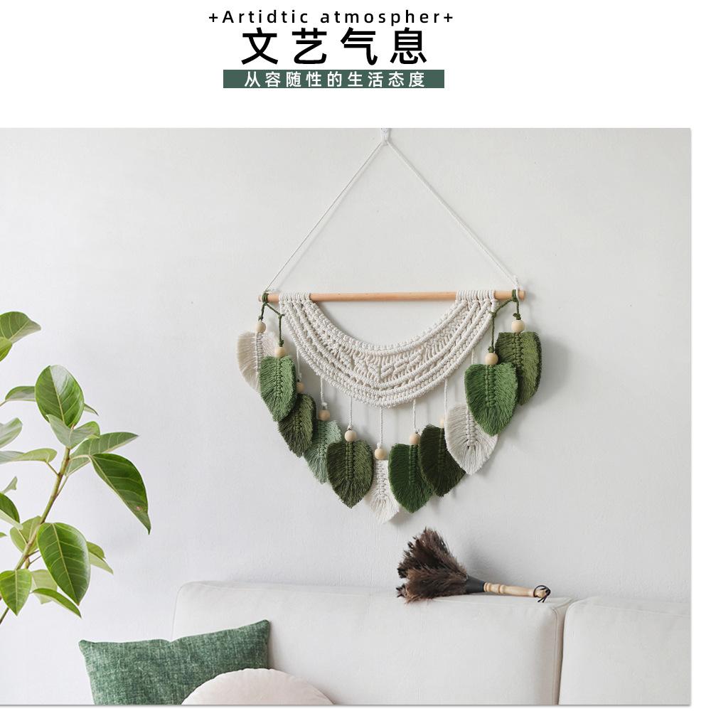 Novo Estilo Nórdico Tapeçaria Tecida à Mão Folhas Borlas Decoração de Parede Fundo de Sofá Sala de Estar Pendurado na Parede Simples