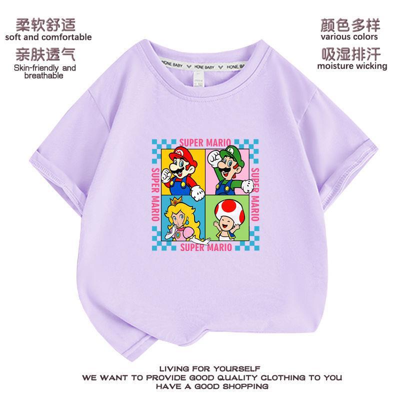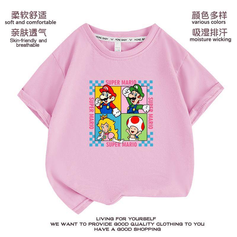 Camiseta Super Mary Roupas Mario Infantil Roupas de Verão Meninos Top de Manga Curta Fina Estudante Moderna Camiseta Básica