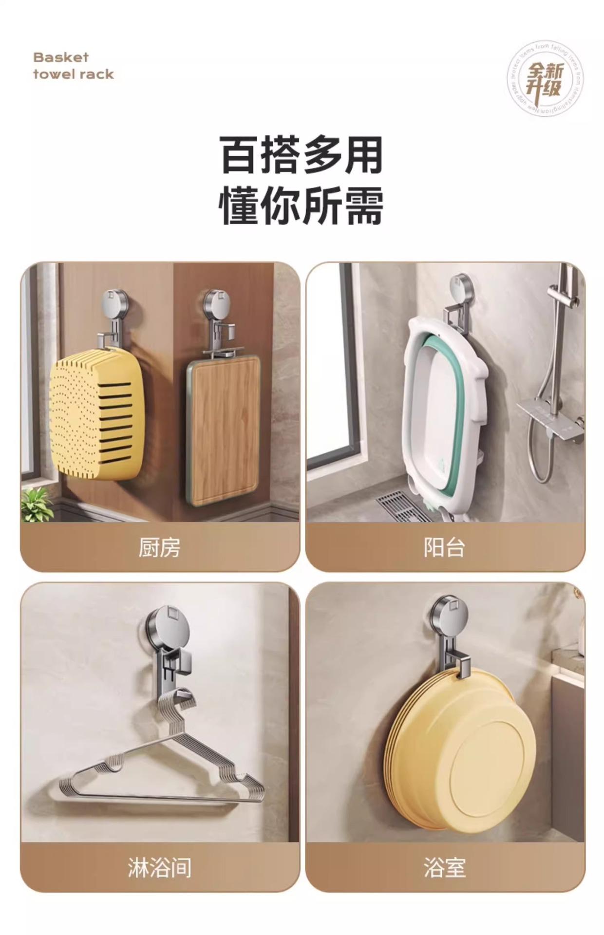 Suporte para Bacia com Ventosa, Rack de Armazenamento, Banheiro, Sem Furos, Montado na Parede, Porta-Bacia, Ganchos para Banheiro, Prateleira Doméstica para Lavatório