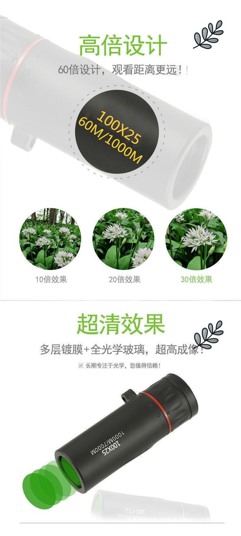 Telescópio de Alta Potência Alta Definição Visão Noturna Monocular Telefone Celular Observação de Pássaros e Fotografia Portátil Desempenho ao Ar Livre