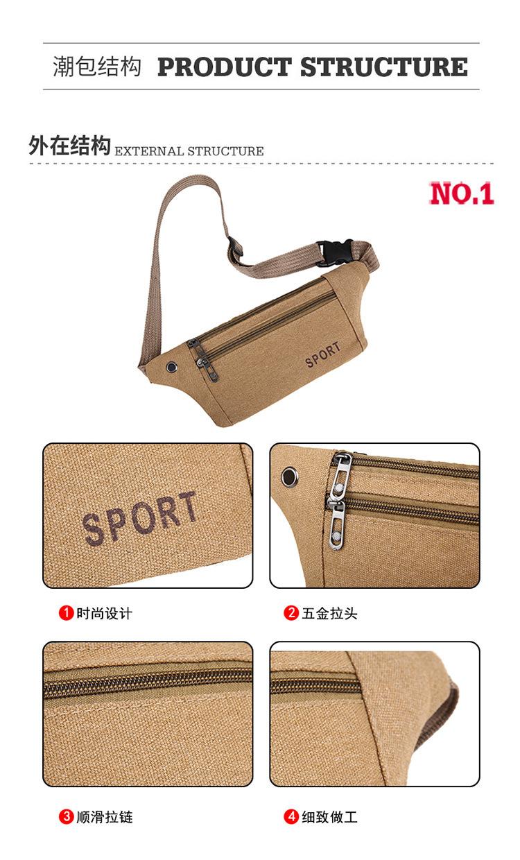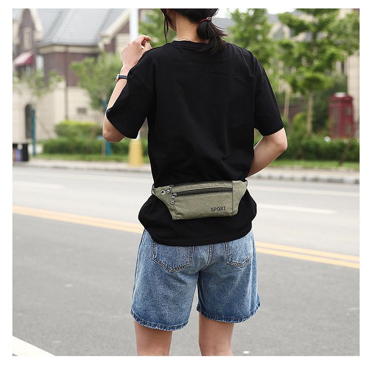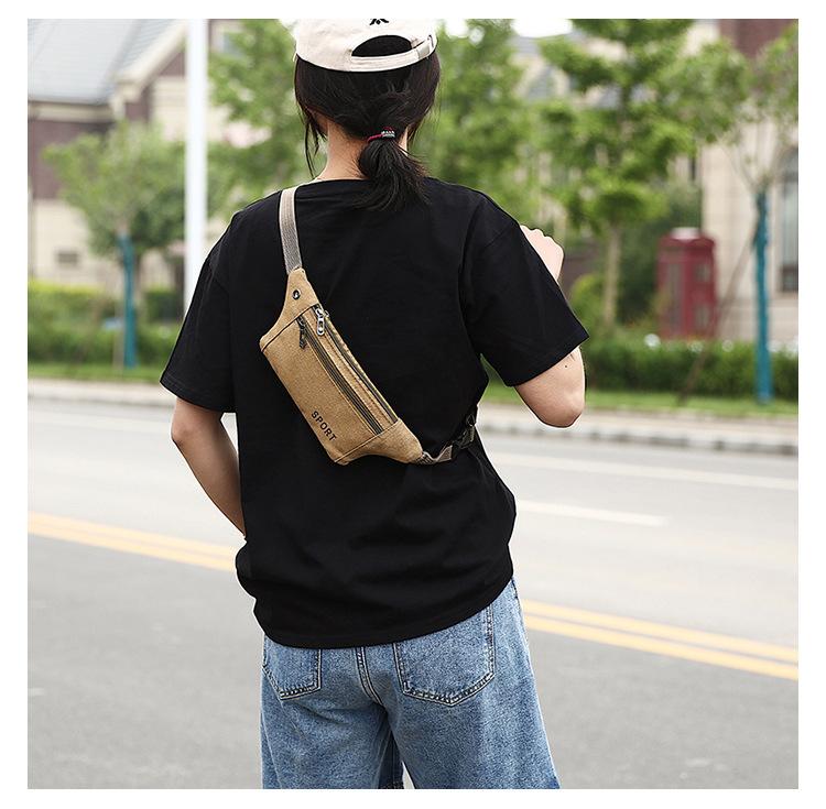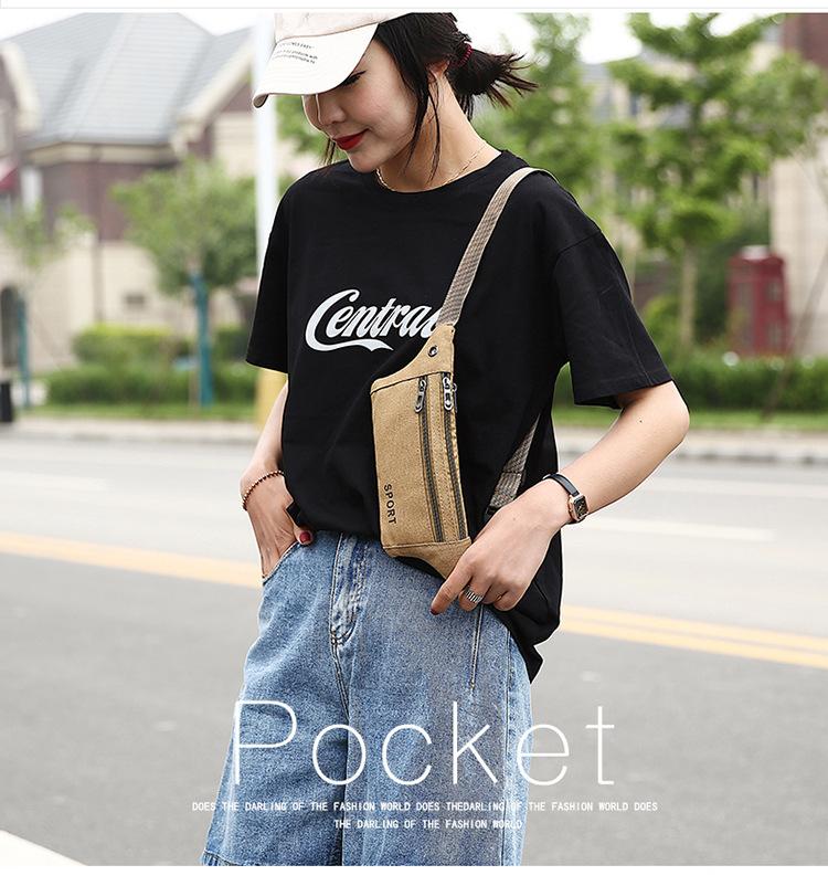Bolsa de Cintura Pequena Justa ao Corpo de Lona Pura Nova Impermeável e Resistente ao Desgaste para Exterior, Bolsa de Cintura para Celular, Bolsa de Peito Esportiva Casual para Mulheres e Homens