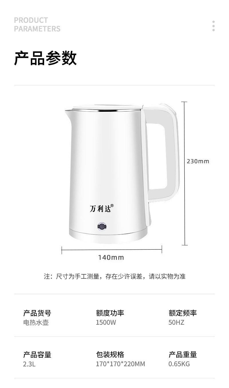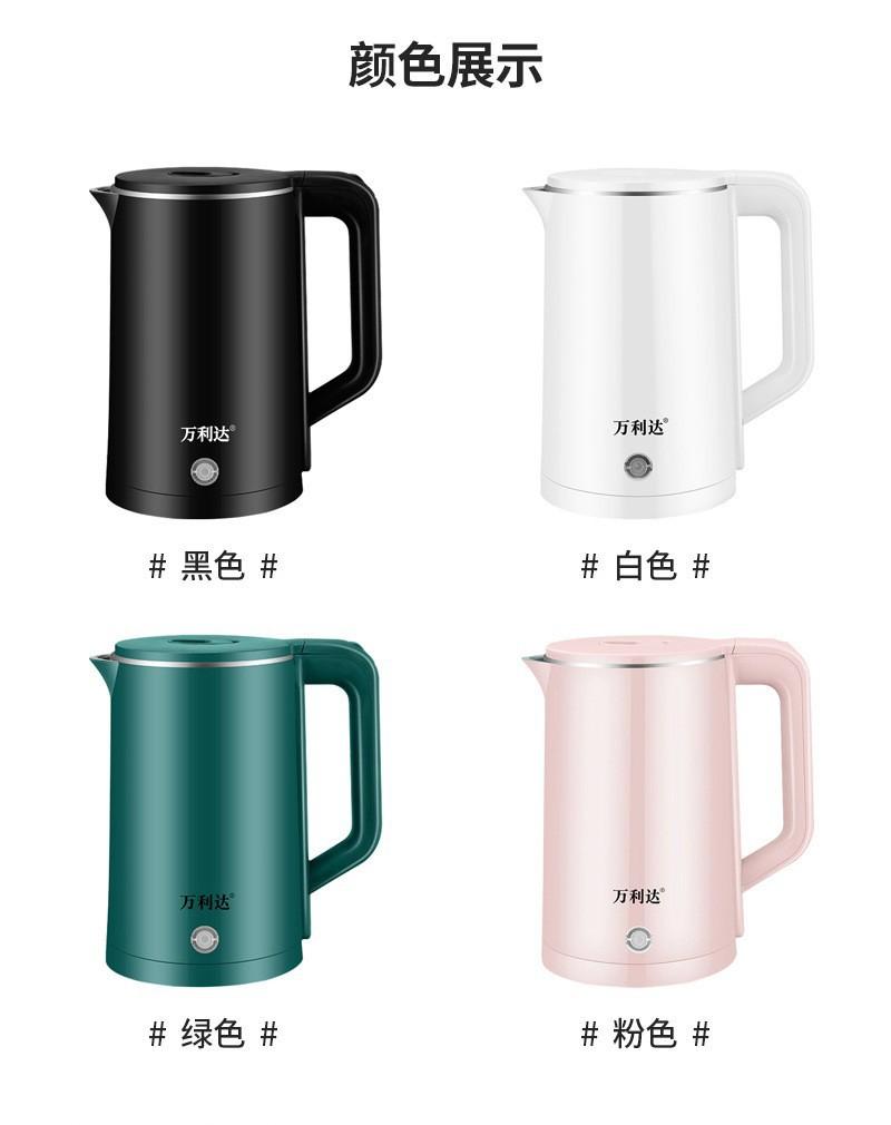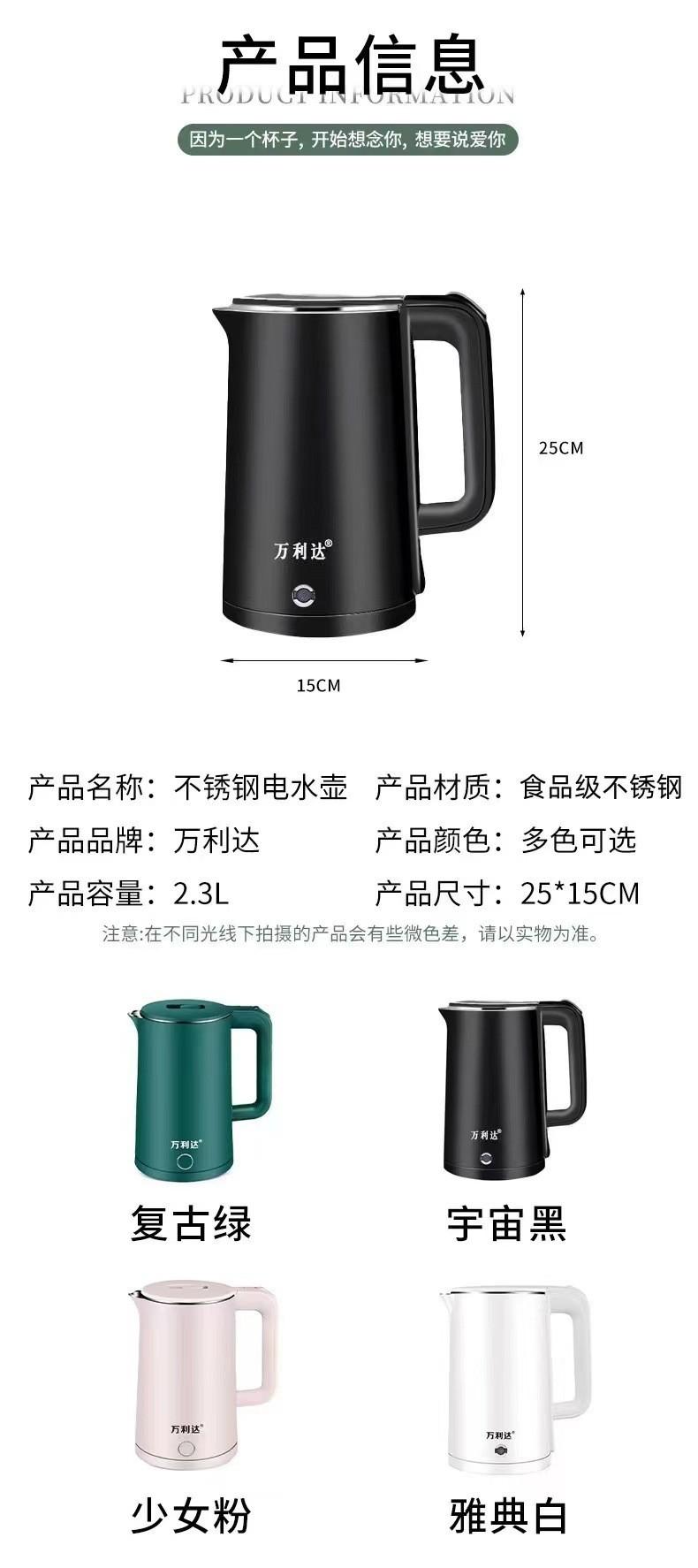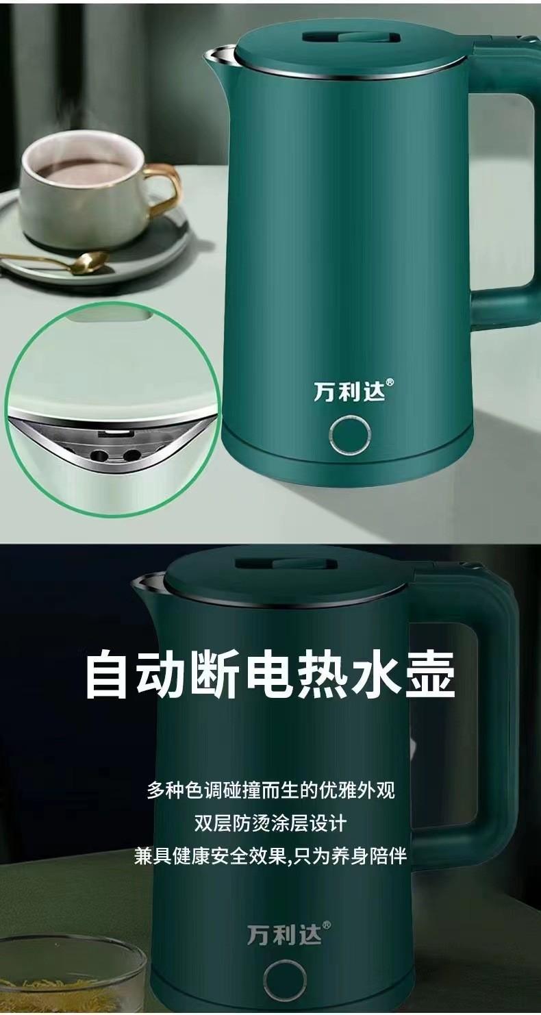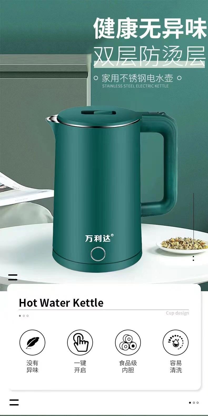 Chaleira Elétrica Wanlida para Uso Doméstico, Chaleira Elétrica de Aço Inoxidável de Camada Dupla Anti-Escaldadura