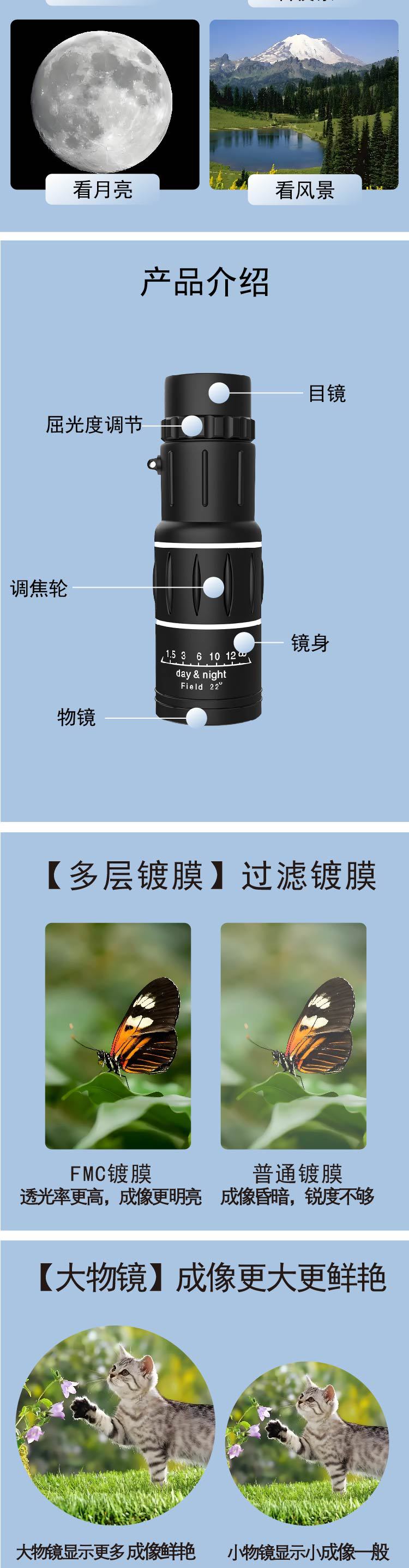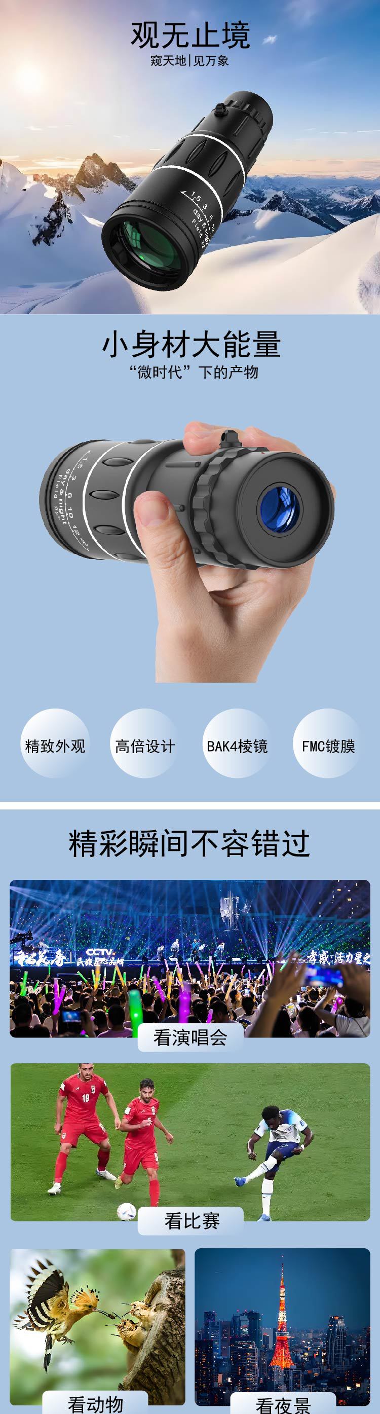 Telescópio Monocular HD Visão Noturna com Pouca Luz Telescópio Fabricante Transfronteiriço Atacado Telescópio Monocular Personalizado Dropshipping