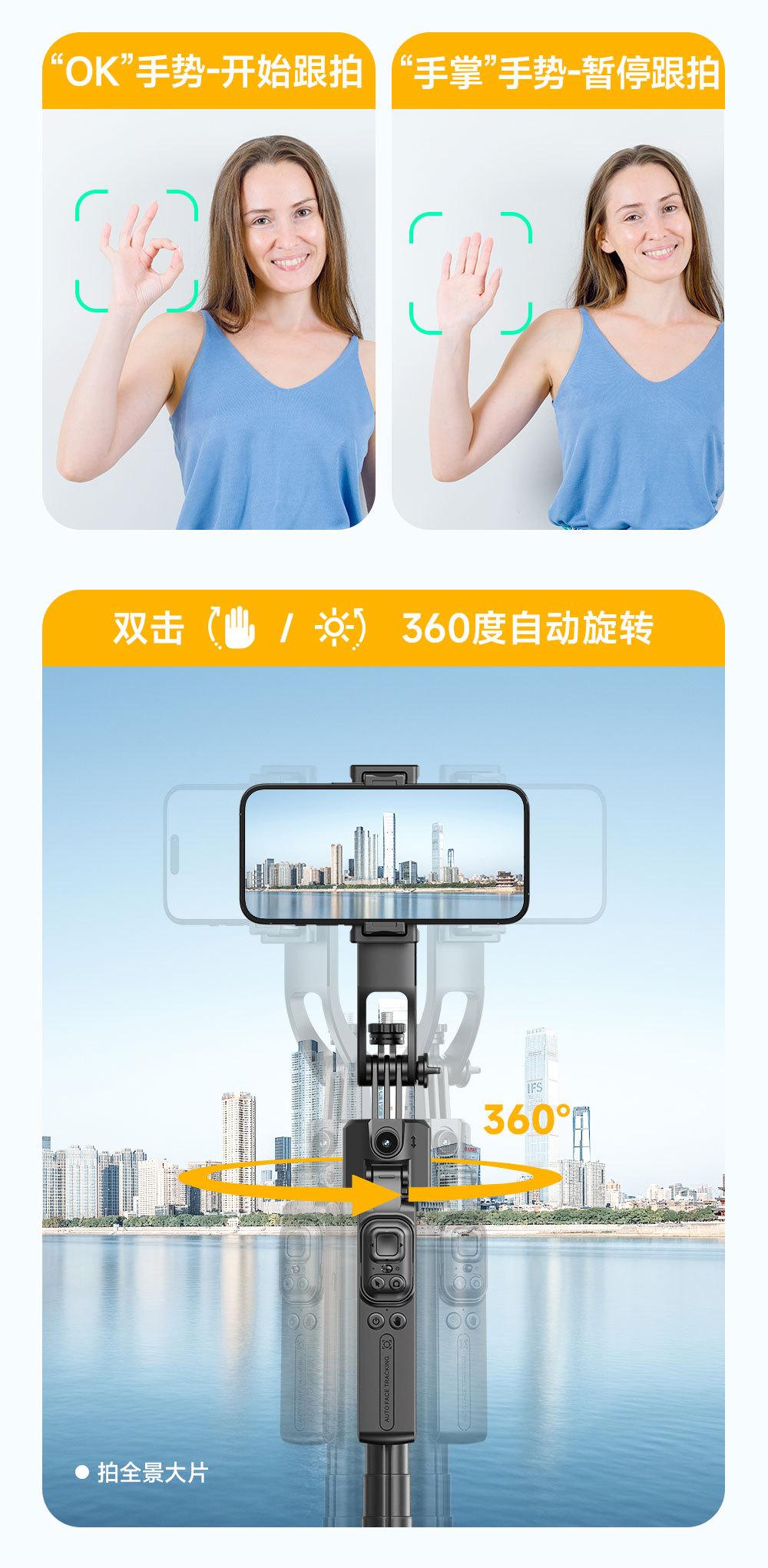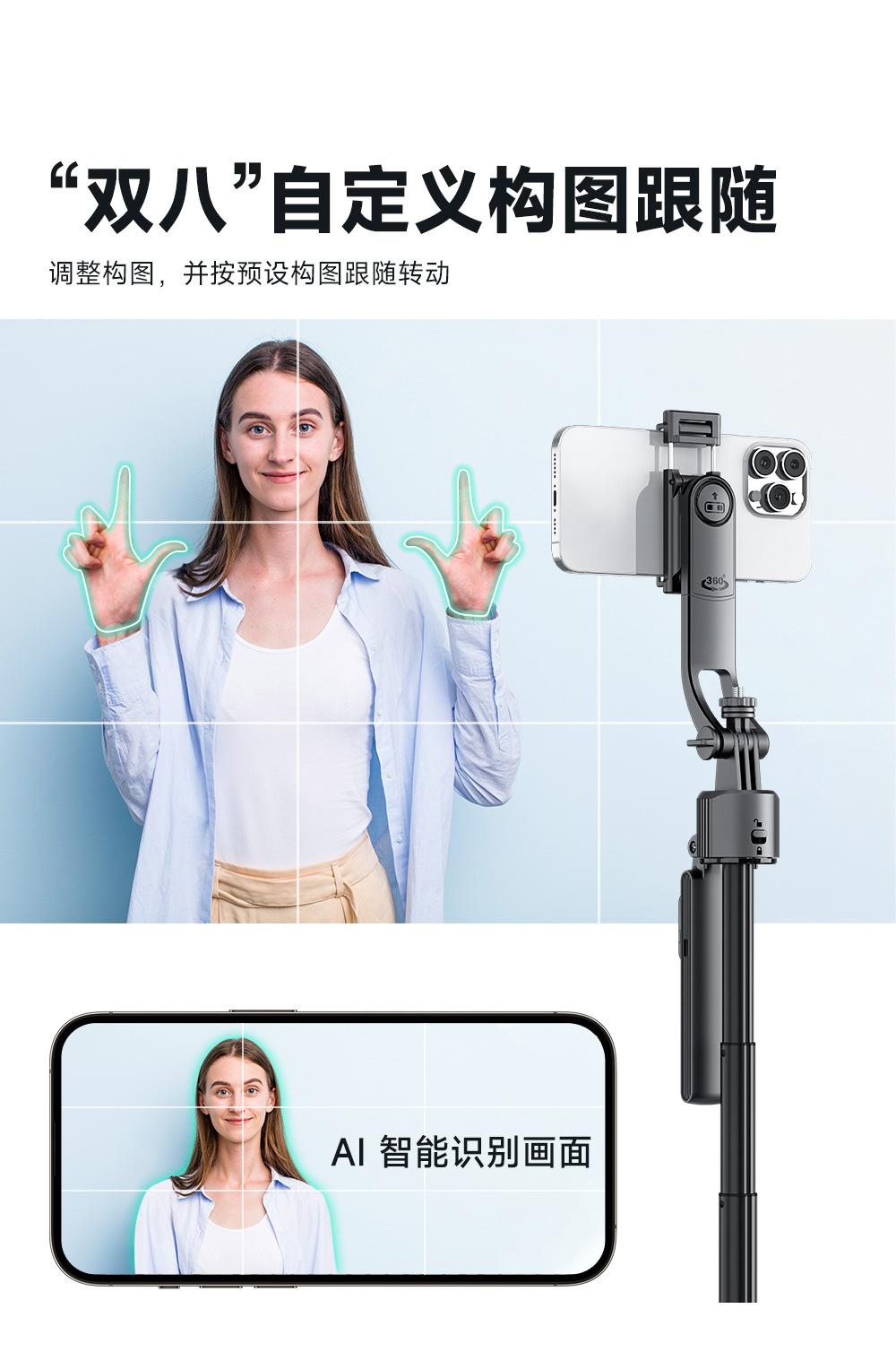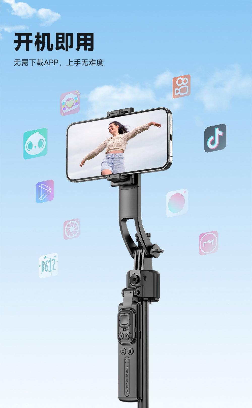 Gimbal e Artefato de Disparo, Bastão de Selfie, Rastreamento Facial Inteligente por IA, Tripé Retrátil, Suporte para Celular