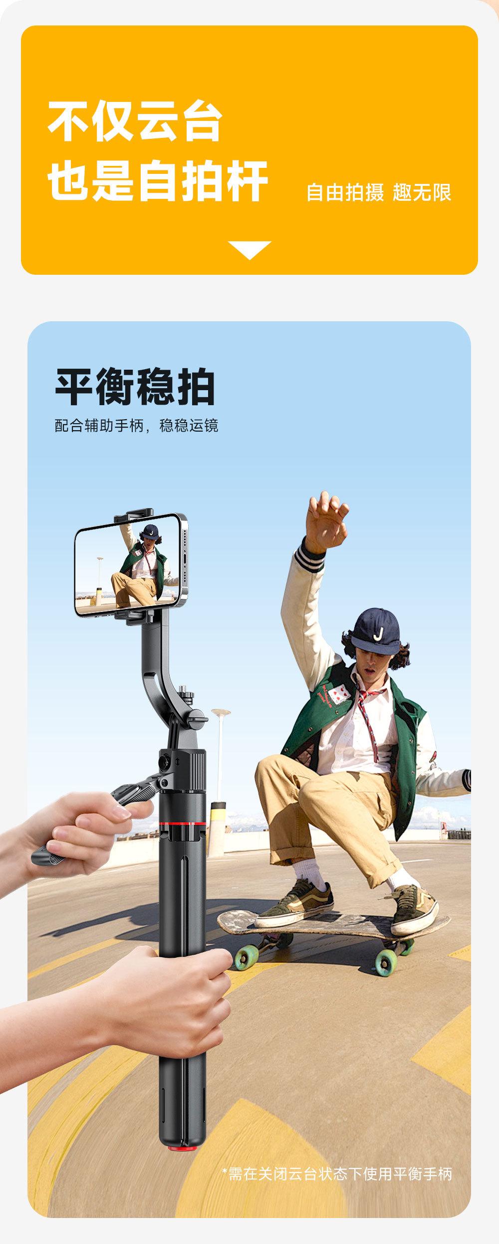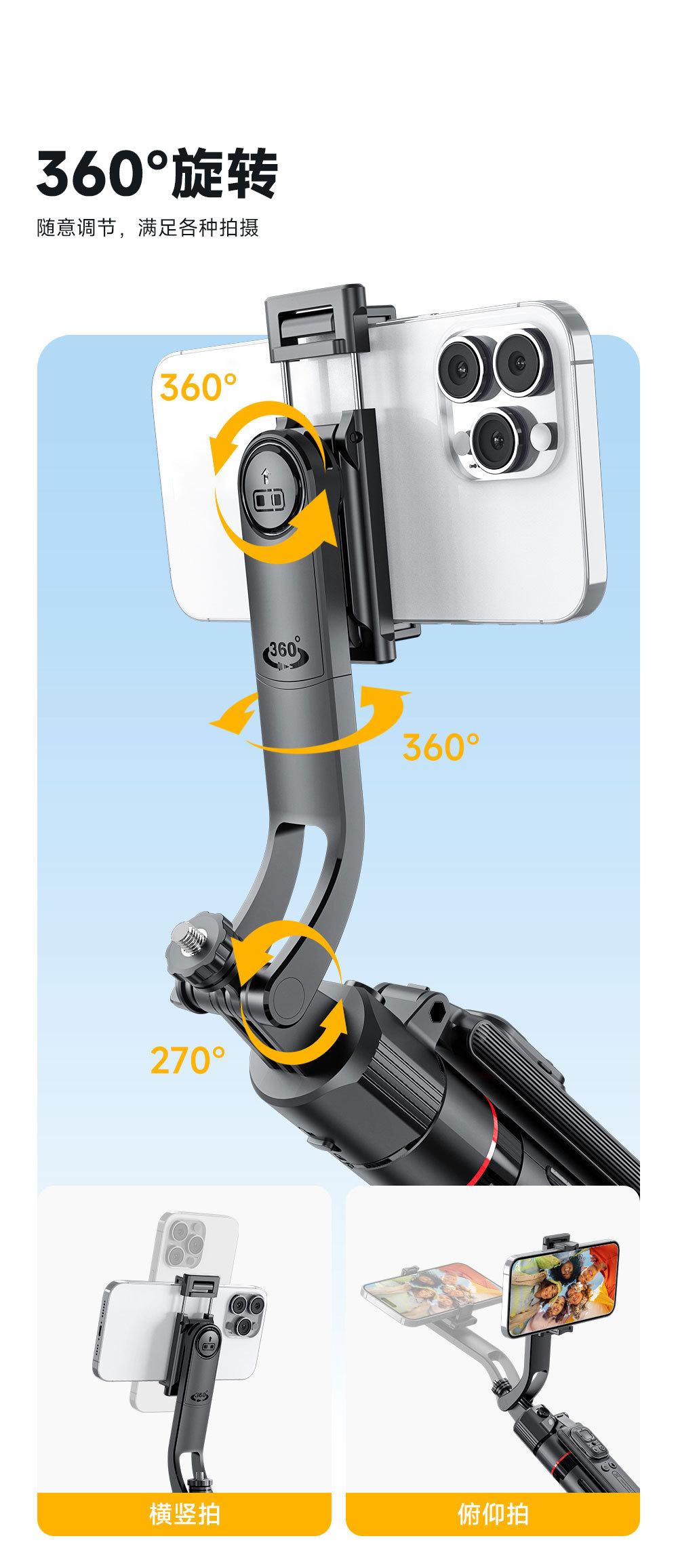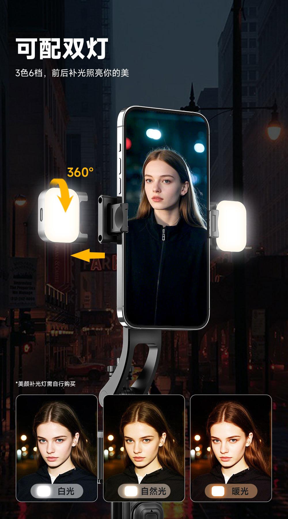Gimbal e Artefato de Disparo, Bastão de Selfie, Rastreamento Facial Inteligente por IA, Tripé Retrátil, Suporte para Celular