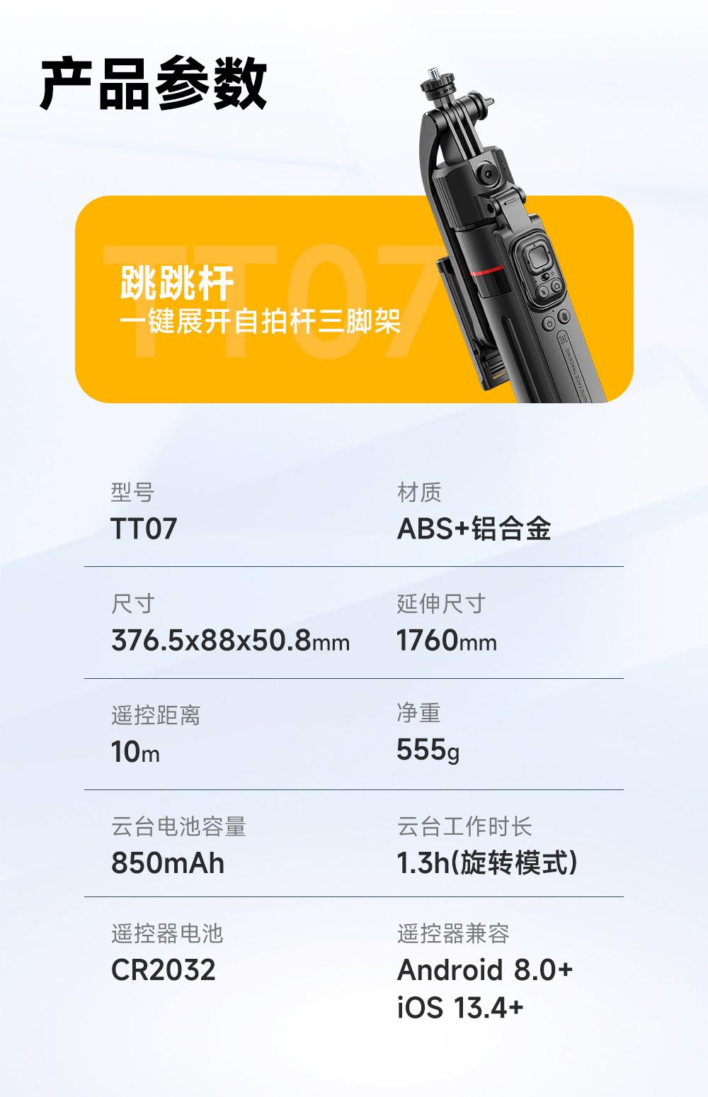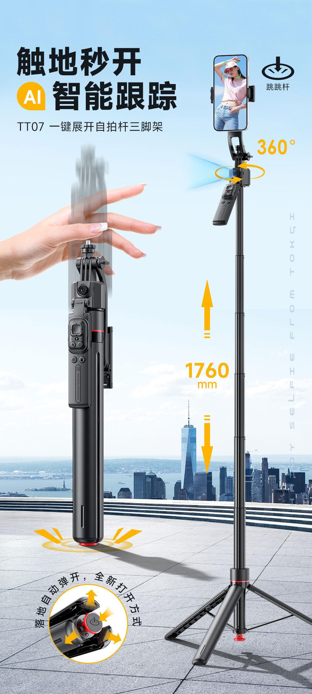 Tt07 [open when it touches the ground - 1.73m ] aluminum alloy pole + ai intelligent tracking + 1/4 interface + balanced anti-shake handle + bluetooth remote control