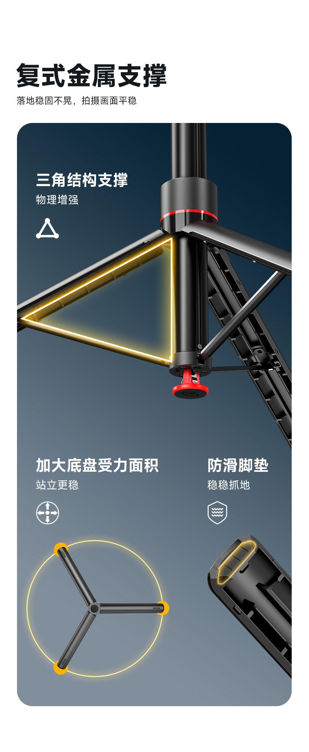 C17 [black double light model - 1.63m] aluminum alloy pole + intelligent tracking + detachable clip head + 1/4 interface + bluetooth remote control + quadpod