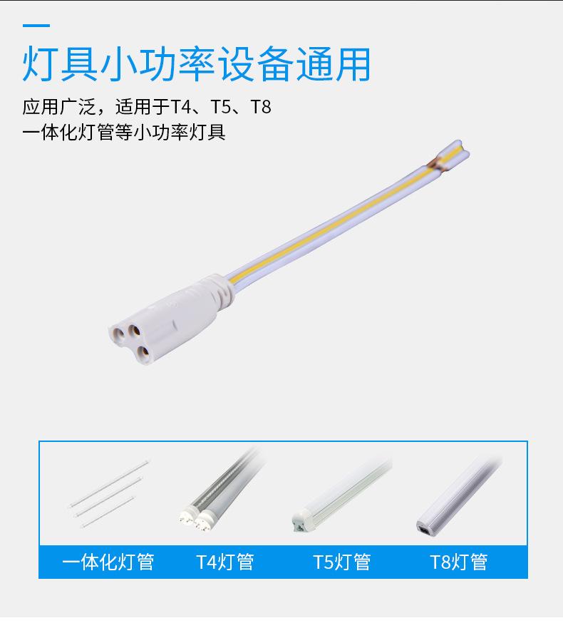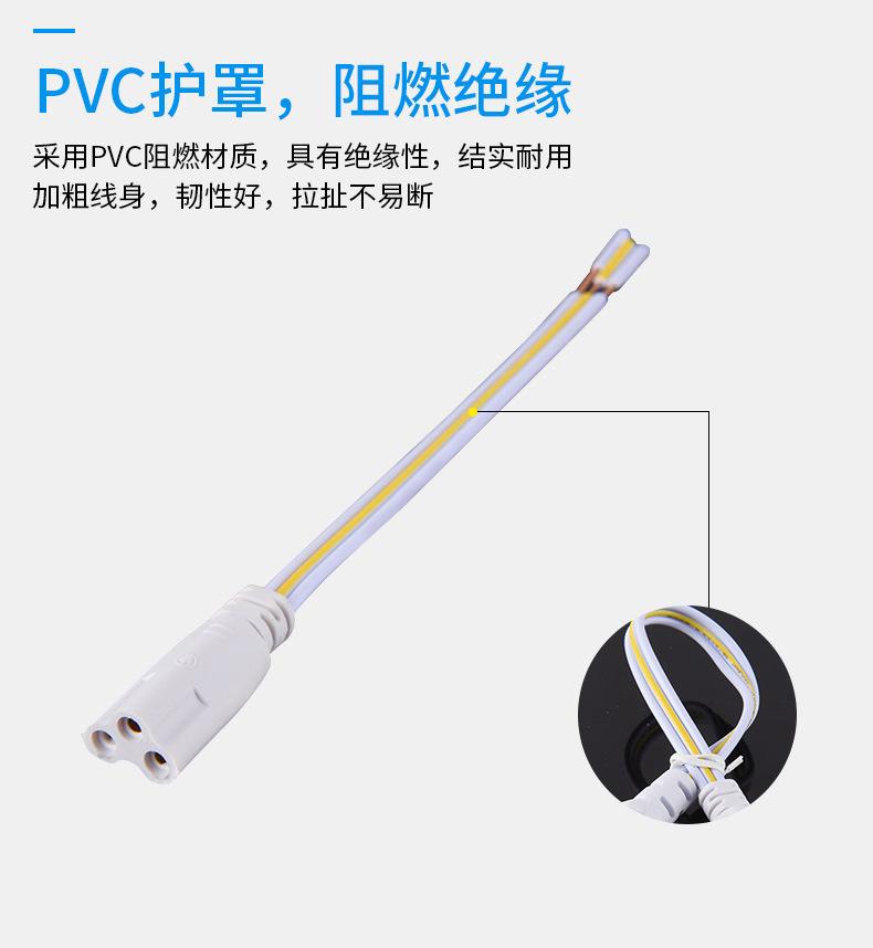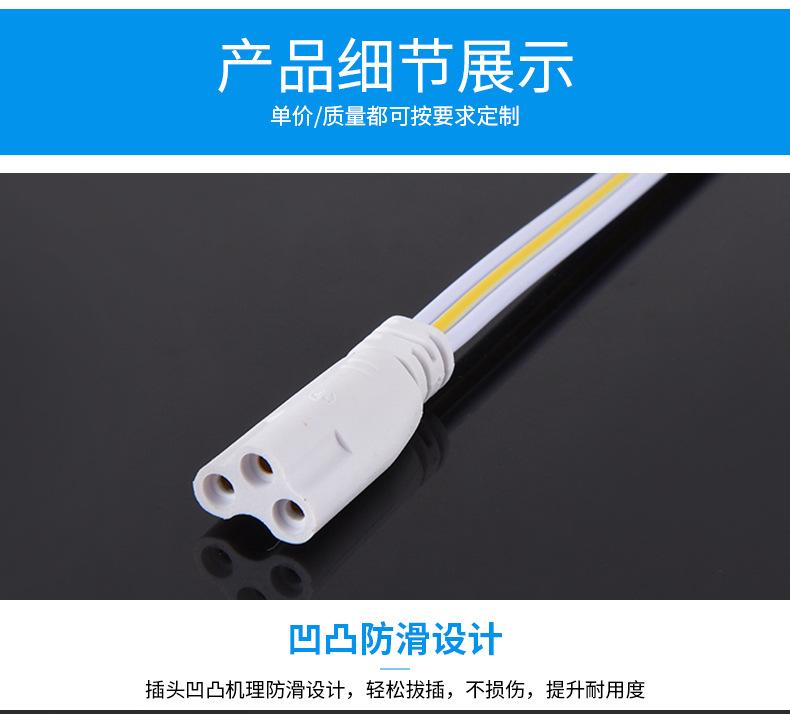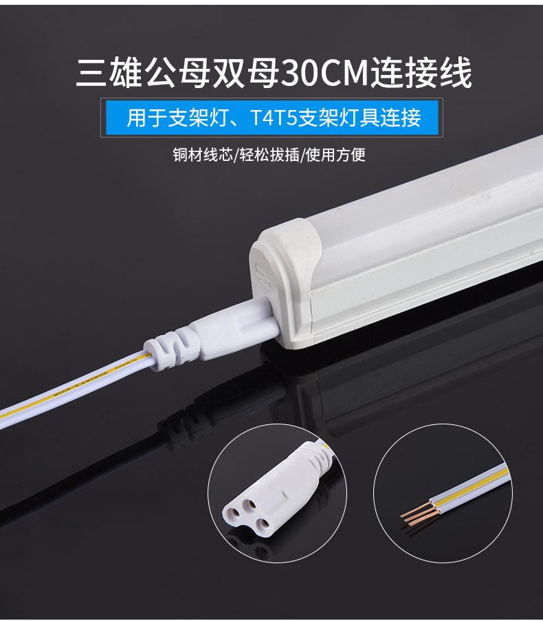 Linha de conexão T4T5 Tubo LED integrado Linha de plugue de três pinos Linha de conexão macho e fêmea para Tubo T5