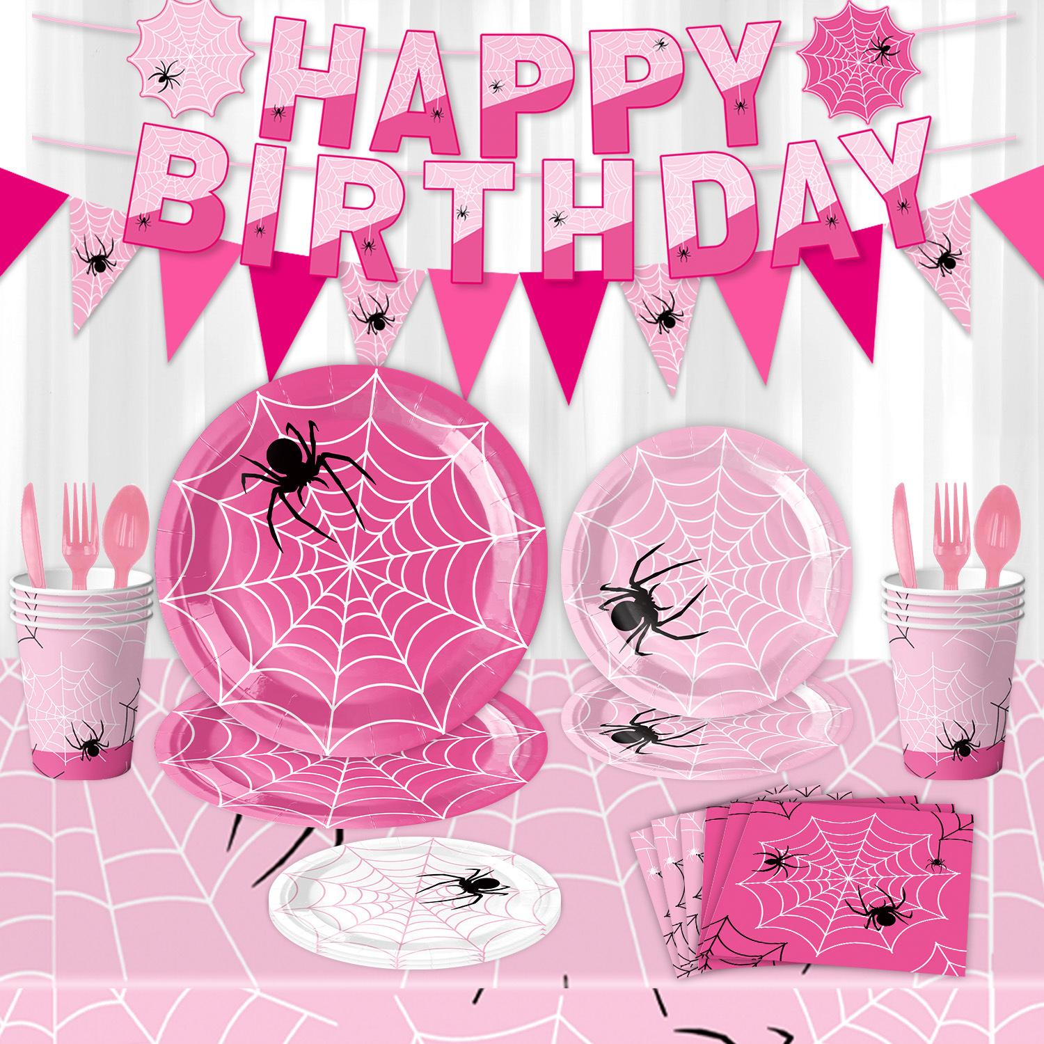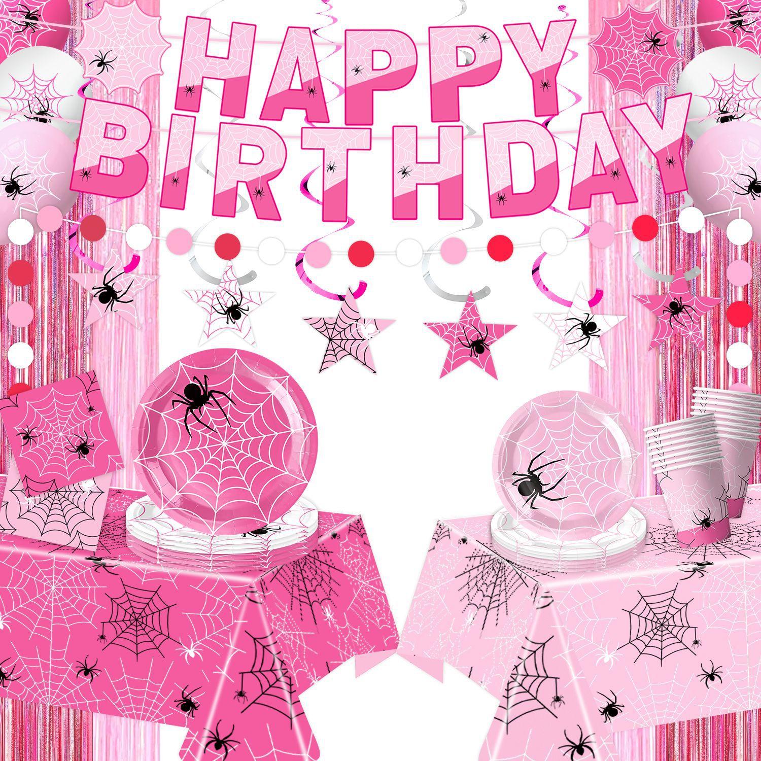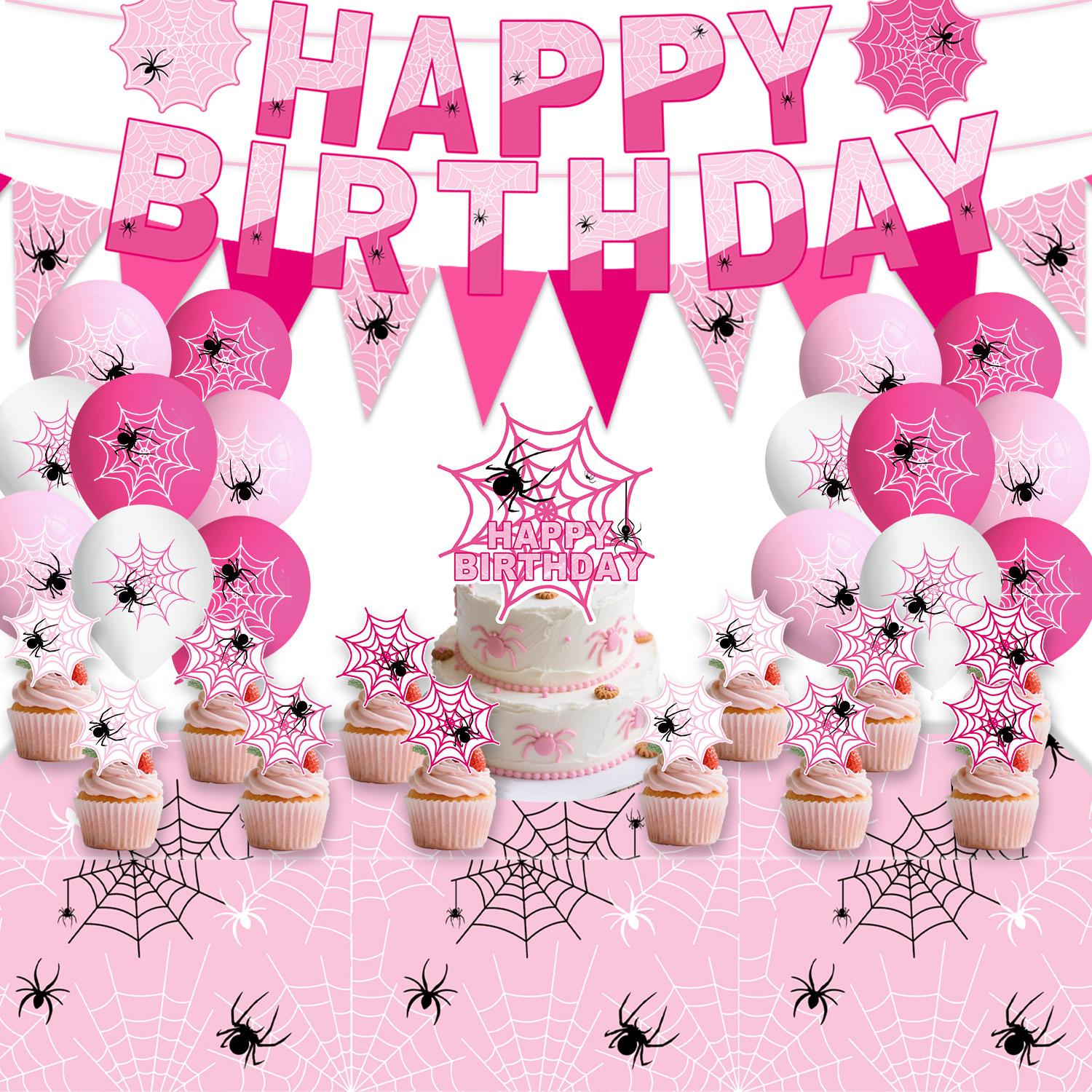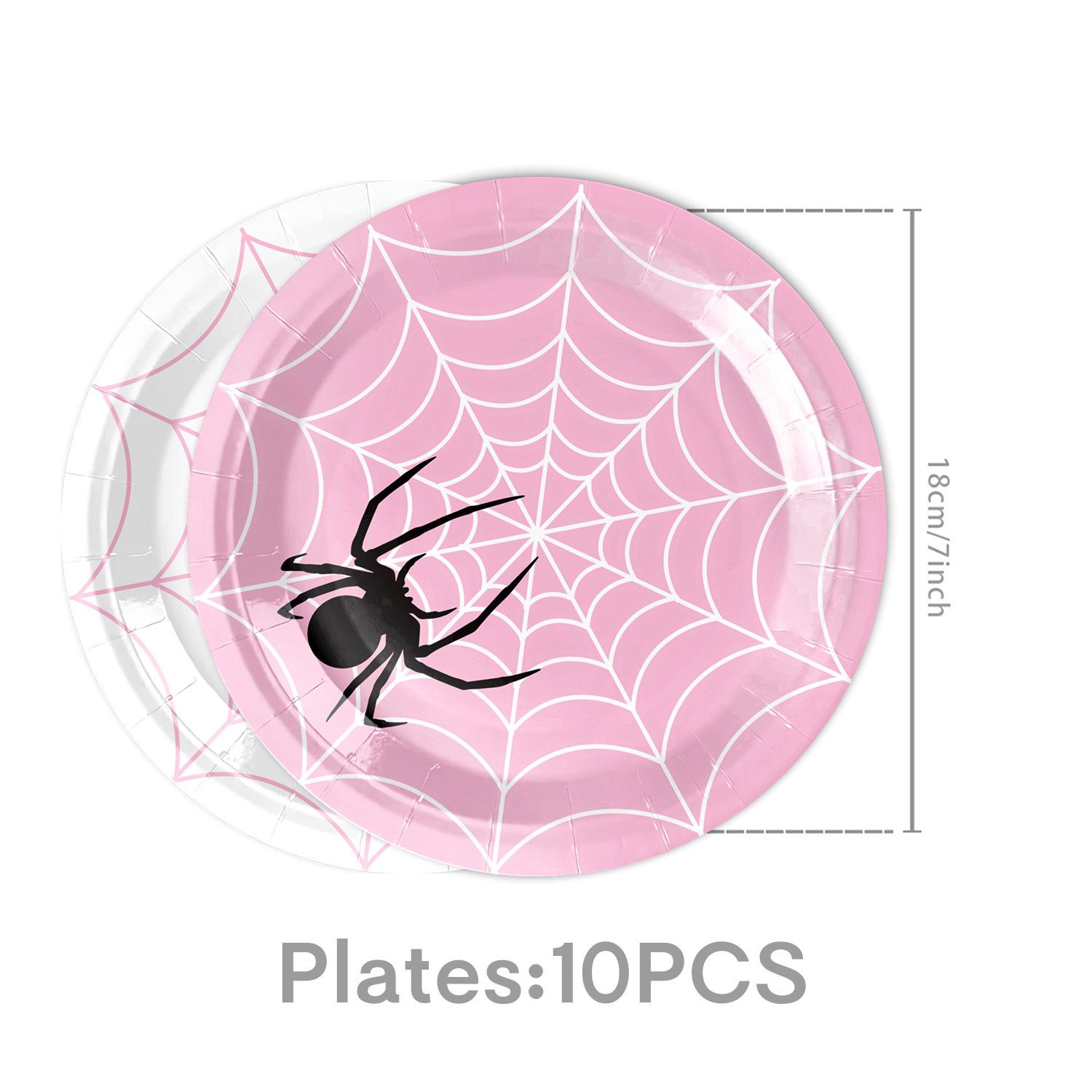 Halloween Transfronteiriço Tema Teia de Aranha Rosa Louça de Mesa para Festa de Aniversário Pratos de Papel Copos de Papel Bandeirola Balão Suprimentos para Pendurar