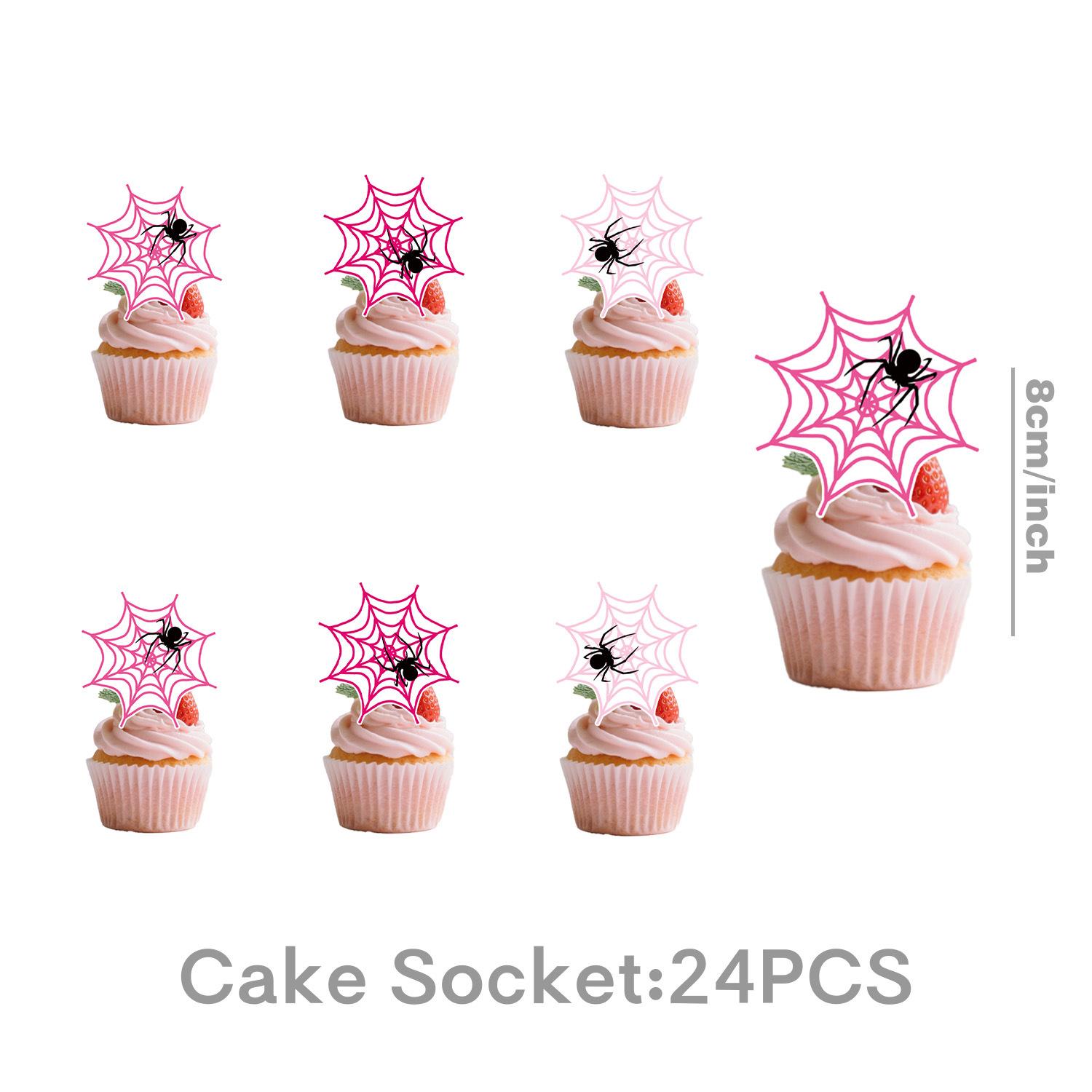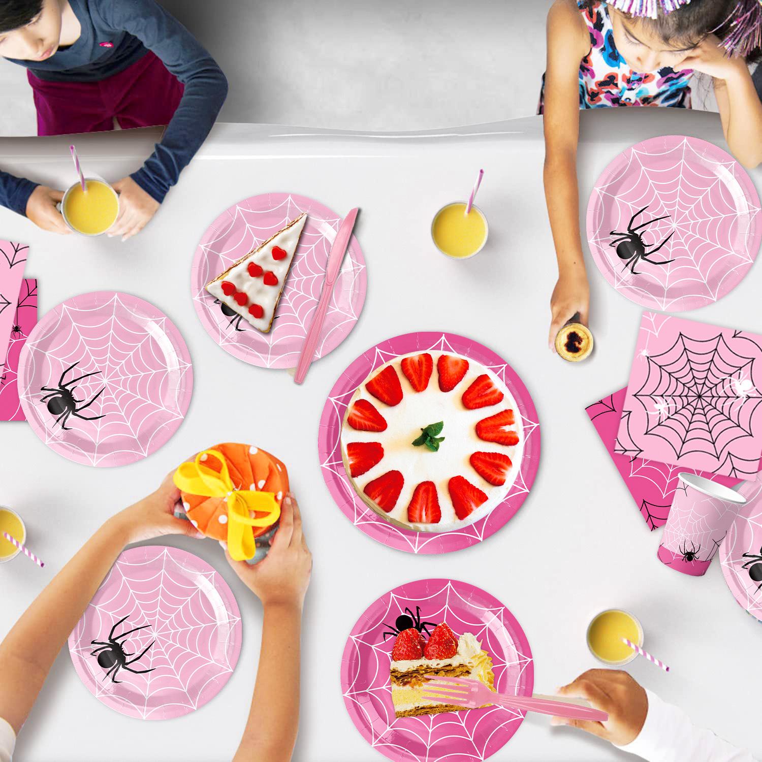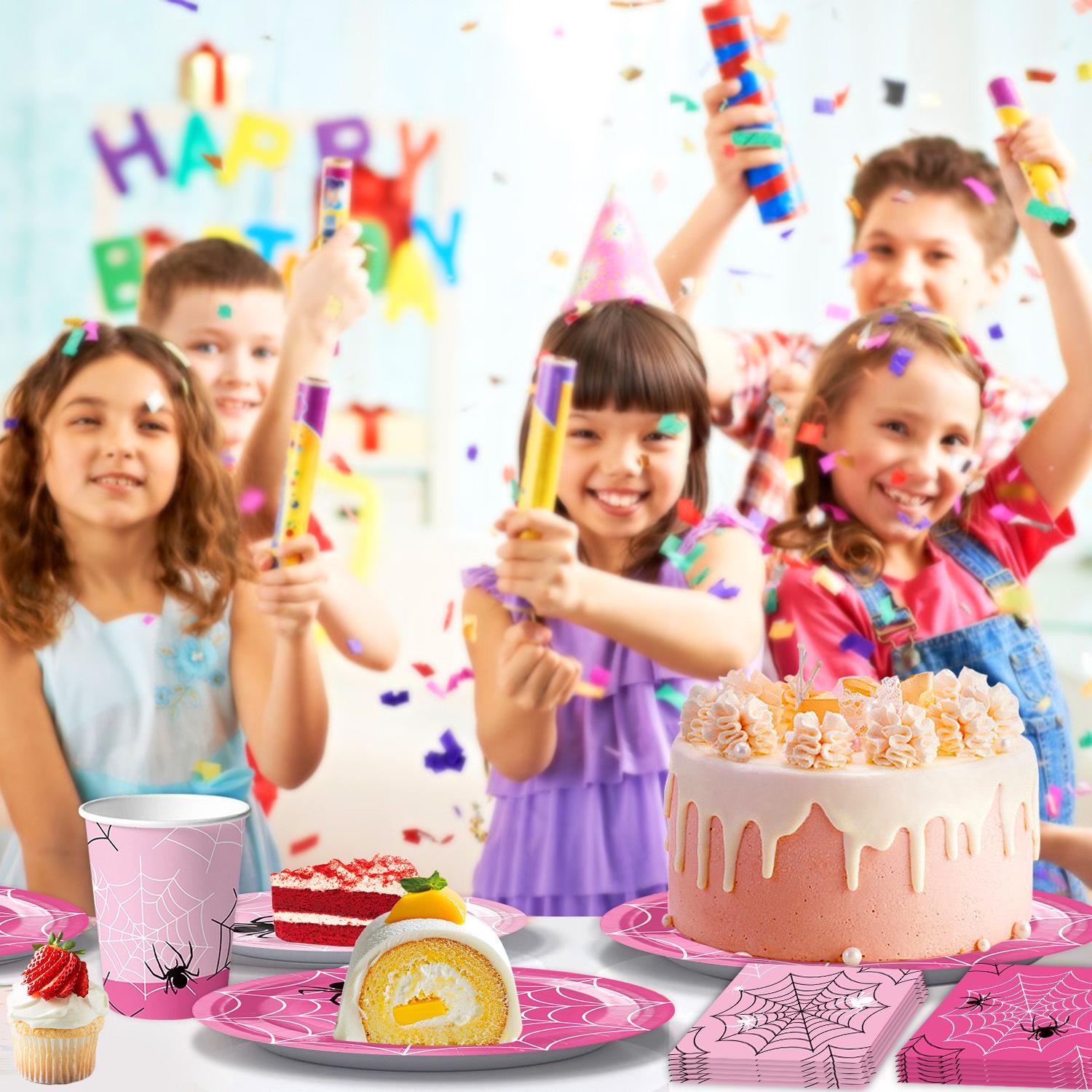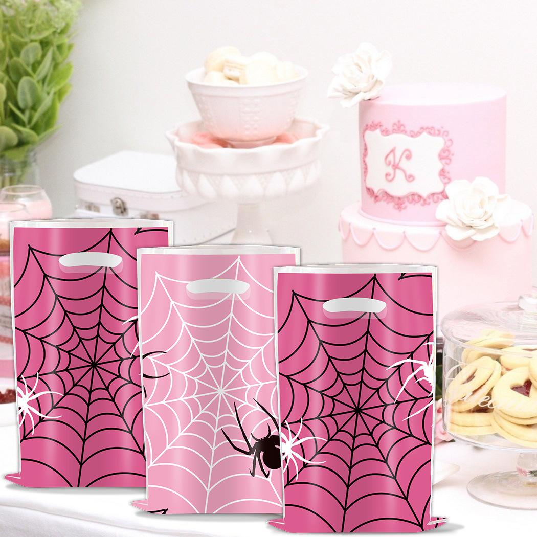 Halloween Transfronteiriço Tema Teia de Aranha Rosa Louça de Mesa para Festa de Aniversário Pratos de Papel Copos de Papel Bandeirola Balão Suprimentos para Pendurar