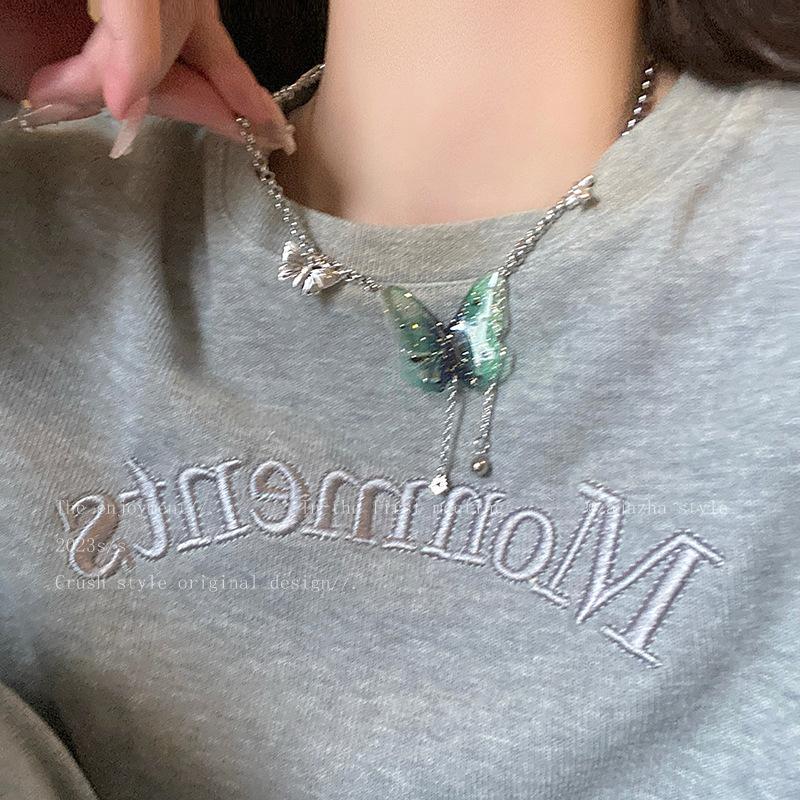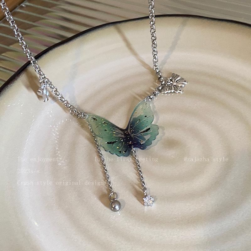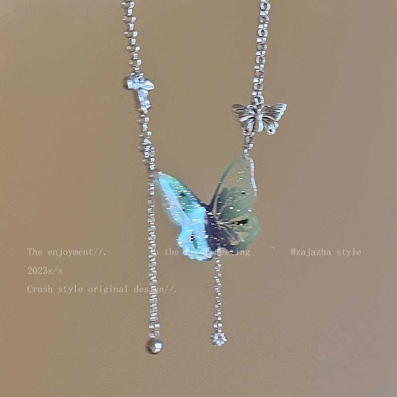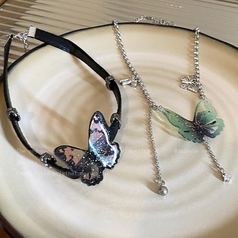 Compre Colar de couro com borla de borboleta moda feminina verão Internet celebridade elegante de alta qualidade clavícula cadeia Colar gargantilha fria no atacado no Joom.pro