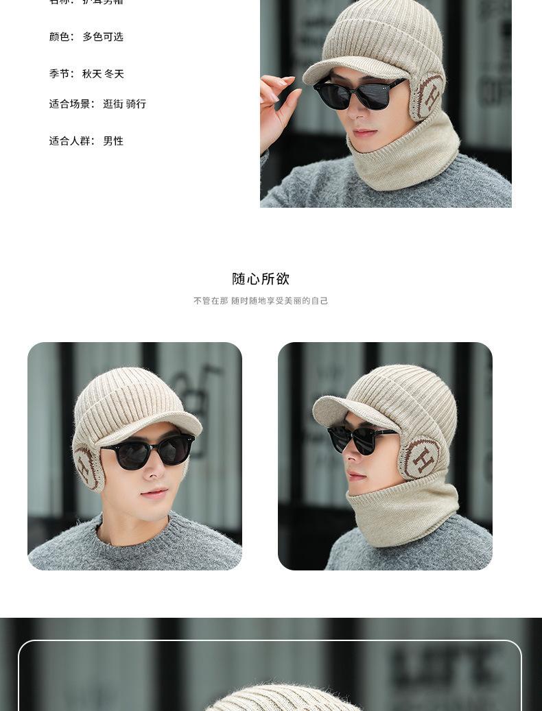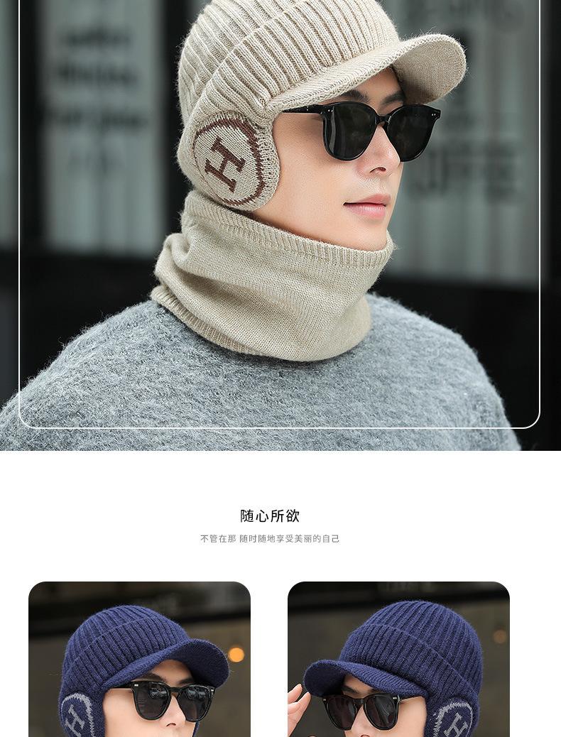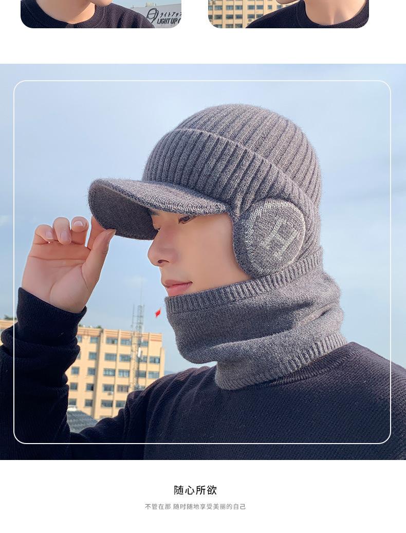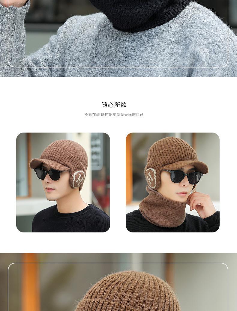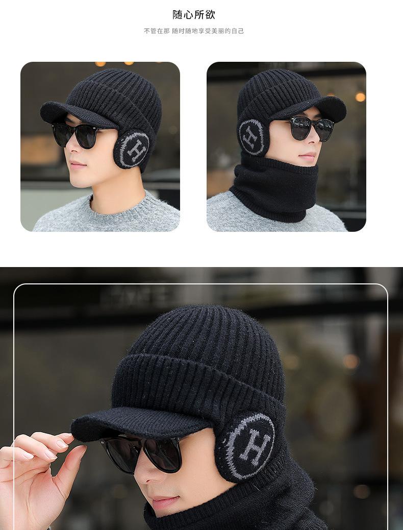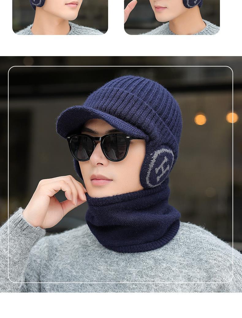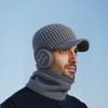 Chapéu Masculino Cachecol Quente Espesso Conjunto de Touca de Tricô Outono e Inverno Forrado com Lã à Prova de Frio Ciclismo Proteção de Orelha Chapéu de Lã Masculino